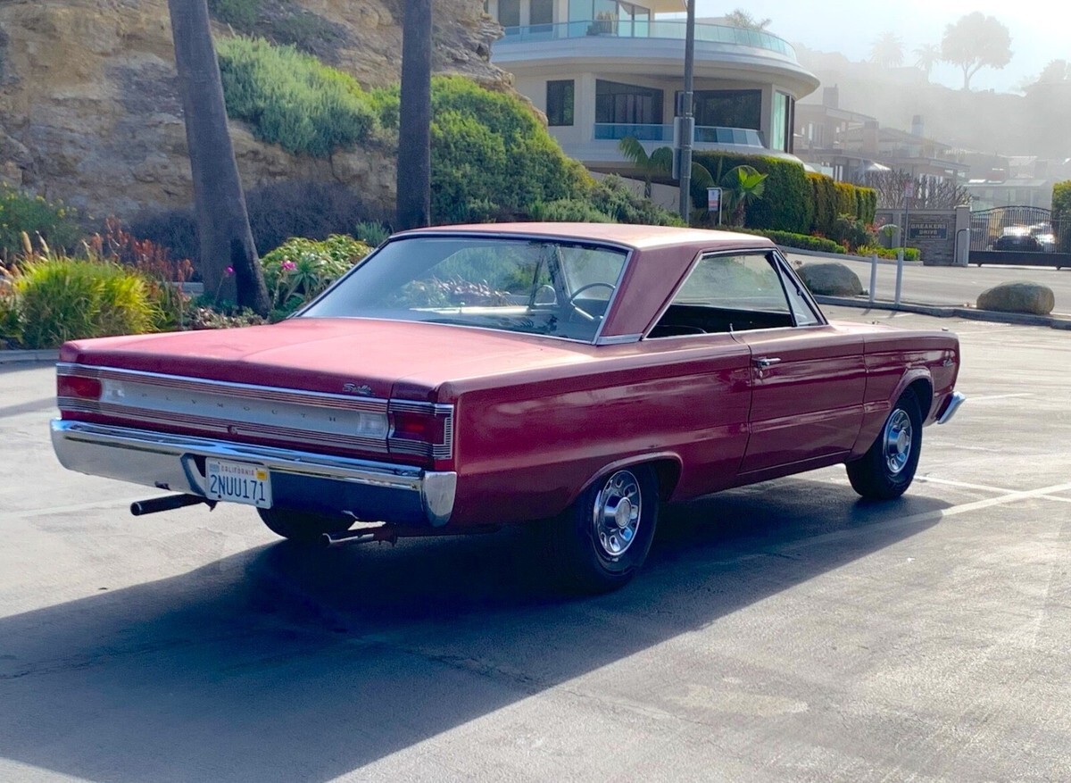 1967 PLYMOUTH SATELLITEOriginal 383, 4 bbl, Factory 4 SpeedThis is a very rare custom ordered 1967 Plymouth Satellite with the original 383 and a factory 4 speed. It was ordered with no power steering, no A/C, no power brakes, no side trim, a limited slip 3.23 rear end and bucket seats, all of which are still with it today. (See photo above of the decoded/labeled data plate). It's unlikely you will ever find another one optioned this way.The previous owner stated it had the engine freshly rebuilt with approximately 1000 miles put on it since, although there is no paperwork for the rebuild. It doesn't leak, smoke or overheat and runs beautifully. It is the original 383 that was in the car when it was new-see engine numbers/date codes in the photos. It runs and drives just the way it should and needs nothing mechanically. IT IS VERY FAST AND SMOOTH.The interior is very nicely redone and very original looking. The small dash cap has a couple of cracks. The carpet is redone beautifully with an excellent headliner.The body is straight, has never been hit, and has been painted in the original color with only minor spots of bondo and surface rust from poor prep work. Other than that this car is rust free on the body and frame with perfect floors, rockers and trunk. It still wears all of its original sheetmetal.The car runs beautifully and is a reliable driver. Everything works on the vehicle with the exception of the horn. It has new tires with less than 500 miles on them. This is a unique opportunity to get a rare classic Mopar with a set of options like no other. Please feel free to call me with any questions or to schedule an appointment to come take a look in person BEFORE the auction ends .Chaz (949) 524 6322