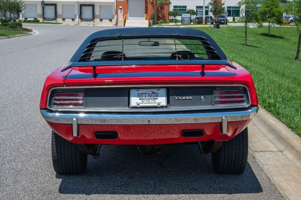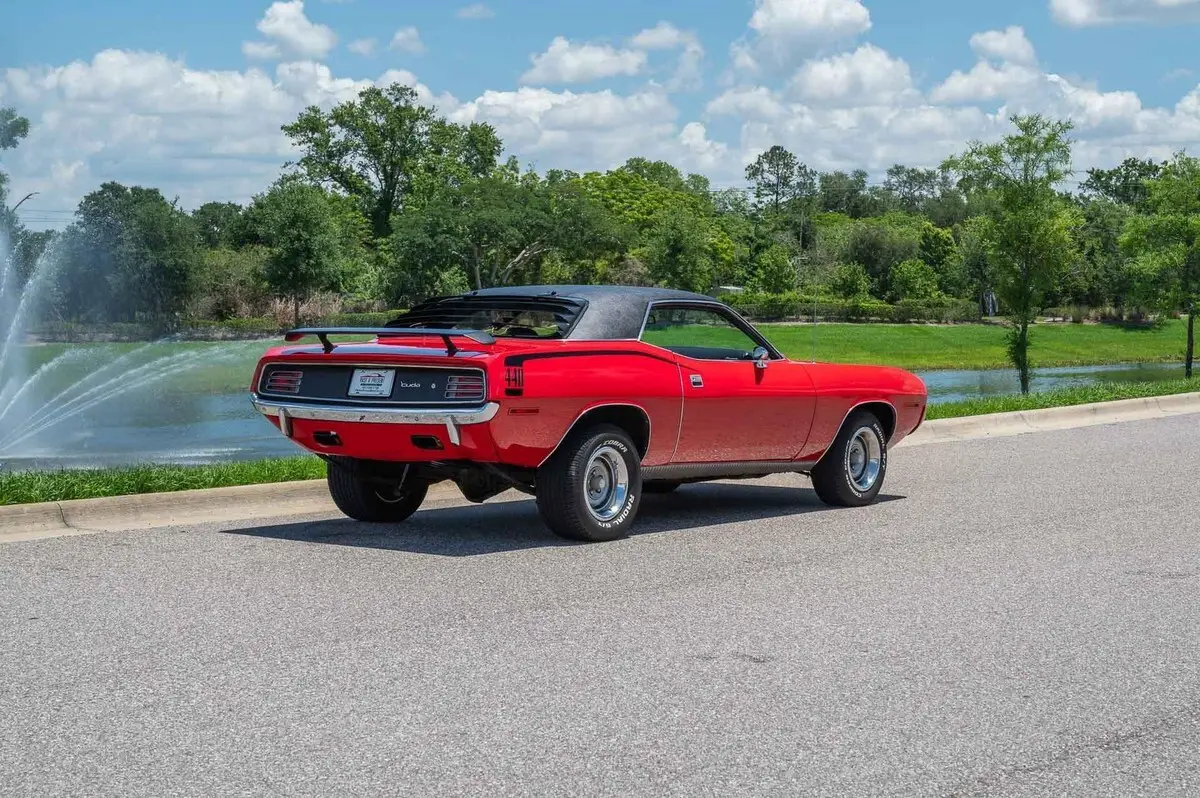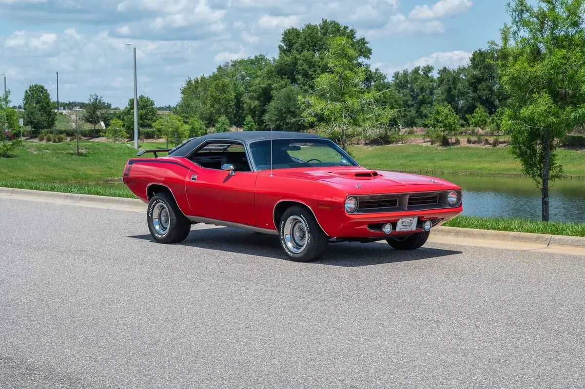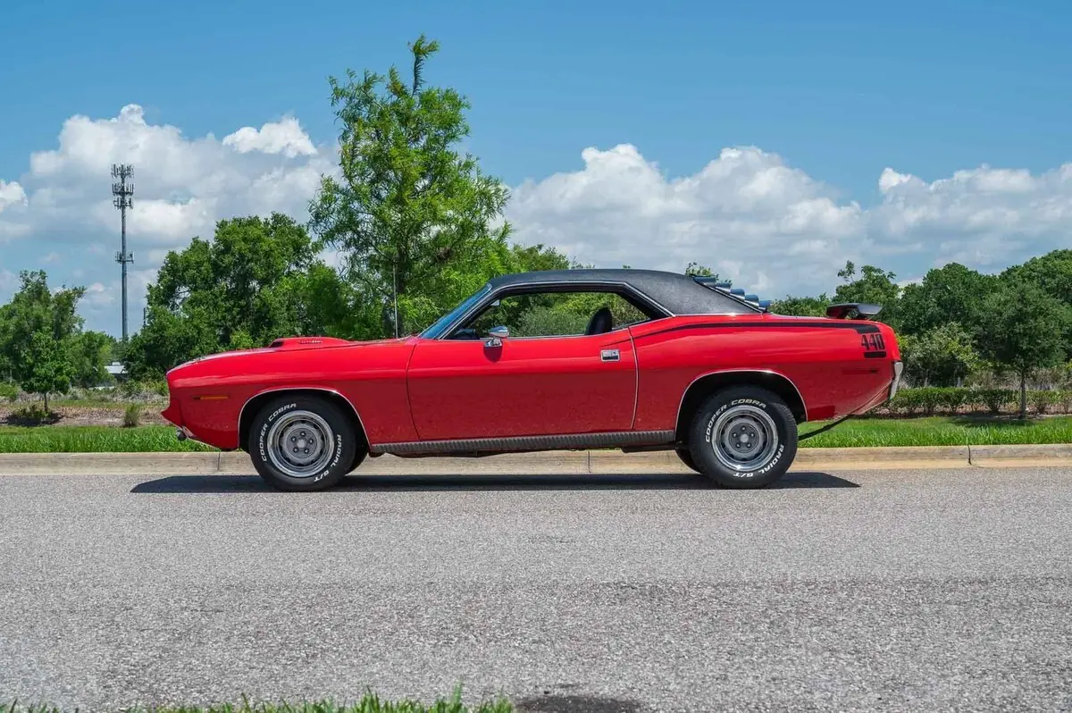 1970 Plymouth Cuda V-Code 440 Six-Pack – 4-Speed, Galen Govier Documented, One of One Offered for sale is an extraordinary and exceptionally rare 1970 Plymouth ‘Cuda V-Code 440-6, documented by both the GTS Registry and legendary Mopar expert Galen Govier as one of one known to exist with its unique combination of factory options. This is not just a showpiece — it’s a true driver’s muscle car with unmatched pedigree, presence, and performance. Finished in Correct FE5 Rallye Red with the highly sought-after A21 Elastomeric Colored Front Bumper Package, this Cuda sports unmistakable curb appeal. Topping it off is the iconic N96 Shaker Hood with the original fresh air setup still in place — a rare sight on any Cuda, let alone one of this caliber. Under the hood sits the legendary 440 Six-Barrel V8 with its original trio of carburetors, paired with a Pistol Grip 4-speed transmission (VIN on the block; transmission is a correct 18-spline from a 1970 Charger R/T). Power is delivered to the pavement through a 3.54 Dana 60 rear end, and the car drives, shifts, and stops exactly as it should. A newer fuel tank, sending unit, fuel pump, and front suspension have all been installed, ensuring reliability and roadworthiness. This is a two fender tag car with incredible factory options, and even retains its original exhaust system (minus mufflers) — a testament to how well-preserved it is. The interior features new Legendary seat covers and foam cushions, and everything inside works just as it should. The car is clean underneath and very solid overall. This Cuda wears a repaint from the 1980s that still shows very well, and it rolls on new radial tires with rally wheels for road use but also includes the original-style Goodyear Polyglas tires on rally wheels for shows or collector display. The rear is equipped with air shocks, allowing you to adjust the ride height and easily change the car's stance to your preference. With no broadcast sheet but rock-solid documentation, this is a true blue-chip Mopar that’s just as happy cruising the open road as it is on the show field. You simply will not find another one like it. Drive it. Show it. Own a piece of American muscle car history. While we do our best to provide the highest quality muscle cars with an honest and reliable description and realize the importance of transparency when selling vehicles. That being said, we have not built, modified, changed or personally owned this vehicle. Whether this vehicle is consigned or owned by Past & Present Motor Cars we do not know the vehicles complete history since new. We want to be clear and try to answer any questions our customers might have prior to purchasing. Additionally, we not only welcome but we encourage 3rd party independent inspections. Please inquire prior to purchase to make sure the advertised vehicle has not already been sold. We list our vehicles on multiple websites and a vehicle can sell at any time. If a customer chooses to purchase sight unseen (many of our customers choose this option) the customer accepts the vehicle AS IS and WHERE IS and understands we cannot address concerns after purchase. For this reason, it's important all concerns are addressed prior to purchase. We make every effort to present accurate and reliable information, but use of this information is voluntary, and should only be deemed reliable after an independent review of its accuracy, completeness, and timeliness. It is the sole responsibility of the customer to verify the existence of options, accessories and the vehicle condition before time of sale. Financing is Available with low rates and Vehicle Shipping is available from our Showroom to your Garage. A Classic Car Warranty is Available for Purchase from a 3rd Party. Please speak to our Sales Associate or Company Representative for more information. Our team is working and available anytime by Phone or Text for your convenience at 407-559-7759. Thank you for your interest!
