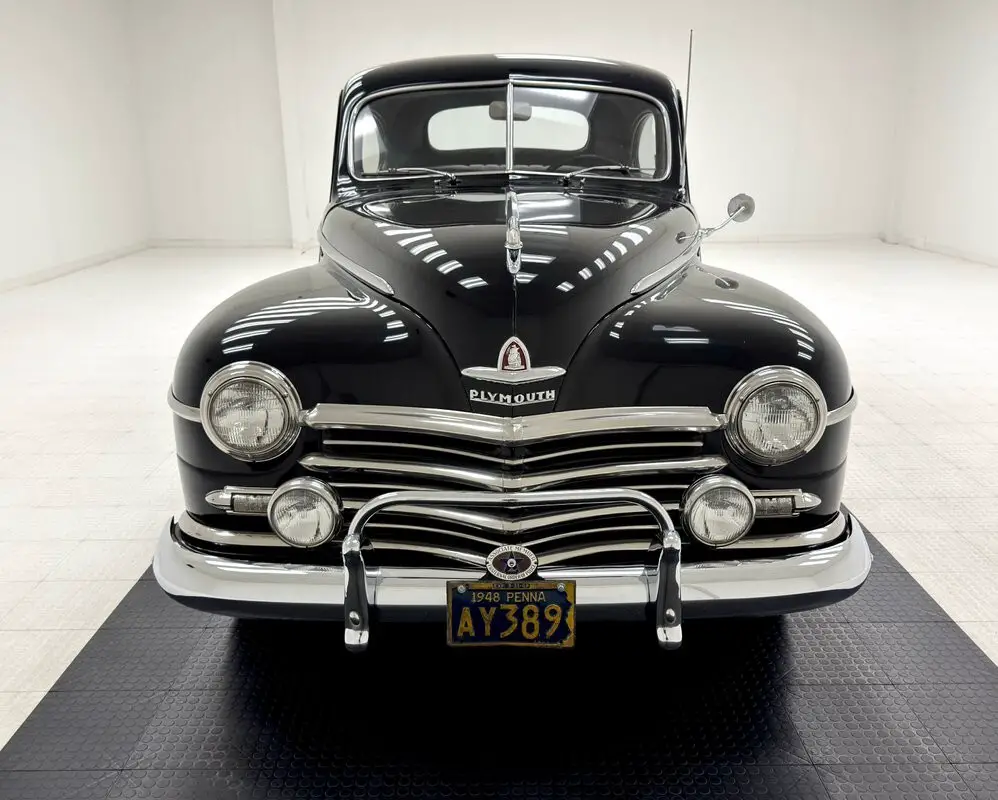 1948 Plymouth P15-C Special Deluxe Club Coupe For consignment, a 1948 Plymouth P15-C Special Deluxe club coupe showing 39,694 miles, but the true mileage is unknown. Family owned since 1972, the car was restored in 1991 and many NOS parts were sourced from right here in our backyard at swap meets in Hershey and Carlisle. Exterior Quintessential 40's styling wrapped in a Plymouth Black package with more rounded mounds than a skateboard park, proud fenders showing a few years before automakers realized "hey, we could widen the body, smooth the sides, and create more room inside!". The shoulder line side trim is fantastic and accented by the parallel line on the front fender and the trim on the running board. Together with that incredible forward leaning glass and chrome hood ornament, the car is statuesque. Trim around the tail lights is complemented by the detail on the decklid, a red reflector with embossed Mayflower over a polished, cigar shaped trim piece, wow! The robust chrome grille is integrated into the bodywork while the chrome bumper and its tubular guard looks like it could push cattle out of the road. Some hairline cracking in the paint and a few chips denote the only imperfections on the exterior. Interior Gray cloth with some linear polished trim adorn the inner doors under a simulated sandalwood header and smooth vinyl kick panel that together create a handsome presentation. Pinstriped gray cloth seats are also smartly configured, beginning on the split bench up front with burgundy piping and base, and the rear bench with some column tufting and side armrests. Our steering wheel wears an auto parts store vinyl cover and some cracking is seen on the brown spokes while the horn ring presents cleanly. The dash has been painted with the sandalwood grain and surrounds deco inspired gauge trim on the horizontal meters. Ivory knobs abound throughout the dash, each one engraved and inked with the function they provide. It's jukebox city in the center stack where a push button AM radio is replete with chrome and speaker grates alternate vertical and horizontal and hidden doors blend in with the showy plating. The open floor is covered with a rubber mat, the gray headliner bears some age but fully intact, and the large trunk has a fitted rubber mat and spare tire. Drivetrain Lift the bulbous hood and we find the 218ci L-head inline 6 cylinder in original presentation and showing some patina. A 1-barrel carburetor provides the go juice and it's backed by a 3-speed manual transmission sending power to 3.73 gears in back. Drum brakes are utilized front and rear. The car remains on its original 6 volt system. Undercarriage Chock full of patina underneath with some road dirt built up, typical surface rust, and oil noted on the pans, caked grease on the knuckles, and oil as sling around the U-joints, but there's no invasive rust or broken parts. Like many of us, it's weathered but together! A single exhaust runs through a slightly dented stock style muffler and exits out back while coil springs make up the suspension in front and leaf springs are utilized in the back. Drive-Ability America is on the upswing as we enter this post war beauty, igniting the L-head to life and using the three on the tree to propel her forward. 75 series tires provide a comfortable ride that absorbs imperfections on our test loop and 95 horses on hand move the car in a measured, but steady bit of acceleration. The wipers are not working and that very cool chrome cladded radio is also not functioning. All other operational items work as they should. While Classic Auto Mall represents that these functions were working at the time of our test drive, we cannot guarantee these functions will be working at the time of your purchase. Here's a well sorted '48, restored but lovingly kept in mostly original configuration to provide an authentic post war experience with a sporty exterior and luxurious interior. This is an all around solid car and a testament to American design that is stunning in its simplicity. Make it yours today! Classic Auto Mall is home to more than 1,000 classic and collectible vehicles for sale via consignment in a climate controlled 336,000-square foot showroom (that's more than 8 acres!). The largest single location consignment dealer of classic and collectible vehicles in the country is located in Morgantown, Pennsylvania, just 1-hour west of Philadelphia off Exit 298 of the I-76 Pennsylvania Turnpike. For more information visit or call us at 610-901-3804. Contact us anytime for more information or to come see the vehicle in person. There is no guarantee of mileage. A $299 Dealer Administrative fee is not included in the advertised price. With so many great cars, you know we have a lot to talk about, and we do that each week on the Classic Auto Mall Podcast with host Stewart Howden. Stewart discusses new inventory as well as trends in consignments and car prices, while interviewing celebrities and automotive professionals about amazing cars and their history. Tune in each week to the Classic Auto Mall Podcast wherever you enjoy listening. You can also watch on YouTube!