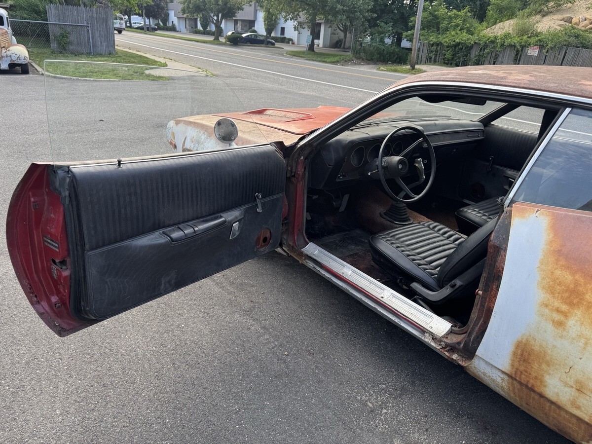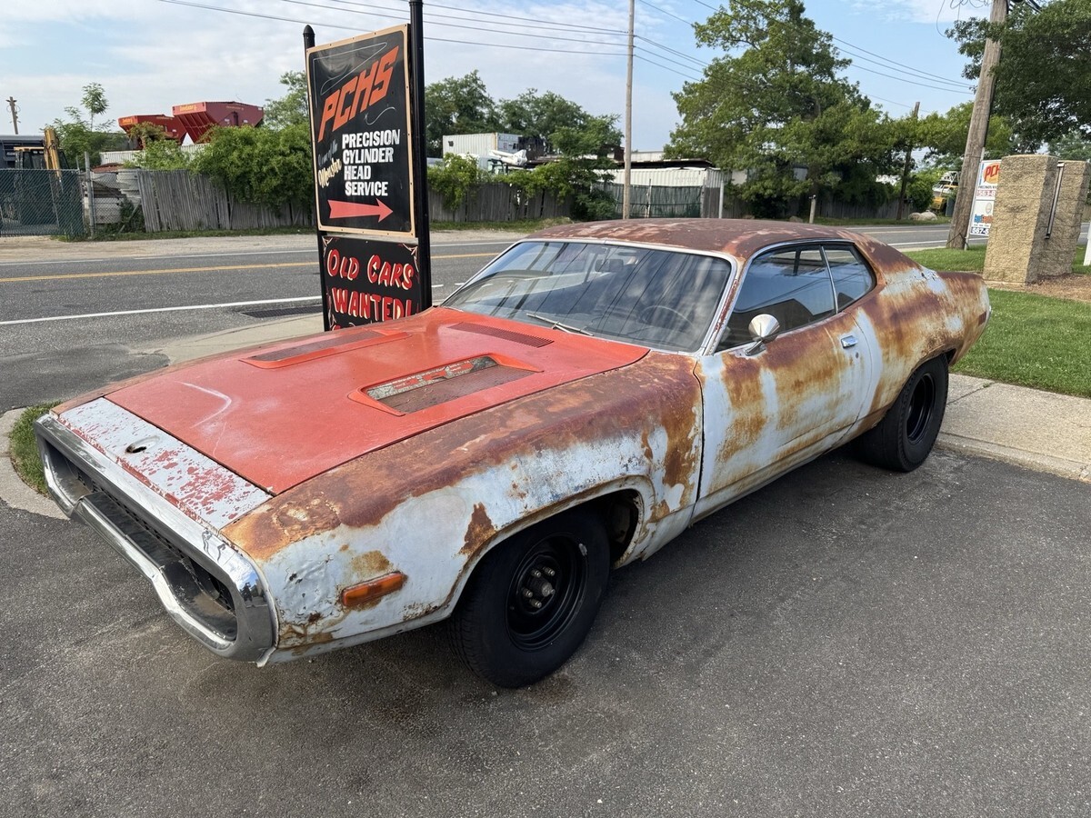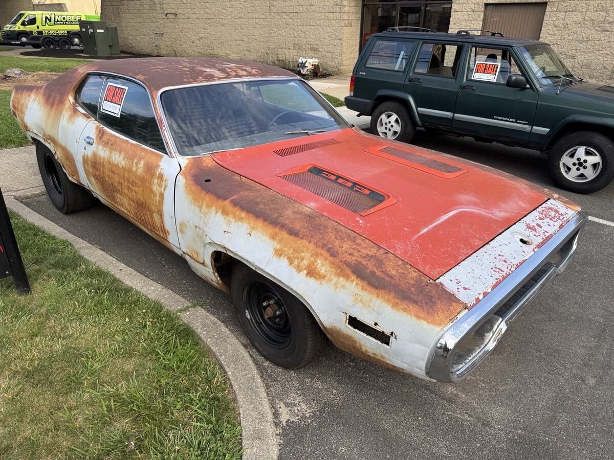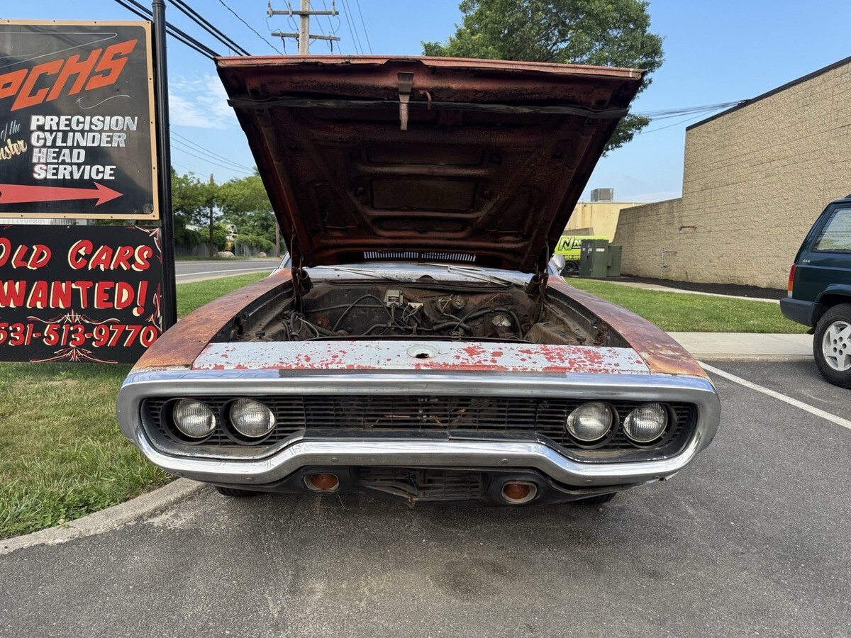 Factory big block 4 speed 1971 road runner. Car will need to be fully restored and needs your typical metal work. I have the numbers matching vin stamped engine block, and rods/pistons, nothing else for the engine. The entire 4 speed is still Intact with bell-housing, z bar, linkage and pistol grip shifter. Has the correct 8 3/4 rear end. Front and rear seats in great condition, original radio, original glass, wiring is all intact. Has an old set of pie crust slicks out back, car will come on stock steel wheels and tires for anything under my asking price. Rolls and steers easily. Can help with loading it safely if you need to send a shipper. Thanks !