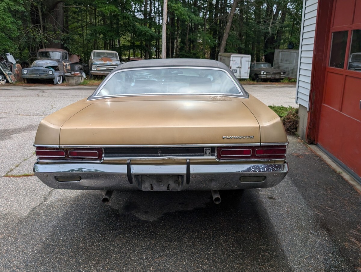 Up for auction is this 1969 Plymouth Fury V.I.P 2 Door Hard Top with 81,000 miles. Original 383 V-8 Big Block, Automatic Transmission. It has Power Steering, Heavy Duty Power Drum Brakes, Power Windows, Power Locks, Remote Drivers Side Mirror, Custom Cloth Interior, Etc. Running gear is in good condition. Minor Tranny Pan leak (needs new gasket). Brand New Dual Exhaust but heat riser on passenger side needs replacement.(4) Decent Cooper Cobra Raised White Letter Tires on stock steel wheels. Vinyl Top has a few blemishes. Interior is in real decent shape with the exception of a small corner tear on drivers side upper seat back. Can be sewn. Front Carpet is missing. Rear Carpet is nice. Power Window Switches need cleaning. We did the drivers door window which works fine. The body on the car is in real decent shape and solid. Minor crease on passenger side door. Underside, floors, frame sections, etc are all rock solid. No patch work. Trunk pan is solid also as are the drop offs. Car has deep tinted glass and windshield is cracked on the drivers side. This car was being used as a daily driver until last year when we took it in trade. Car really drives quite well. Do a little TLC and have a very affordable 2 Door Mopar Big Block car if you dont have Road Runner money. We have the original title from day one that is open and also some previous registrations. Have owners books and a repair manual that will be included. If you need more information feel free to call us. we are easy to deal with. 1-207-432-2862. Priced to sell so please be serious in your bidding. We require a $1000 non refundable deposit at end of auction and balance due (3) days at end of sale. We prefer bank wire transfer for payment. We are willing to store the car here if you need time for a shipper.