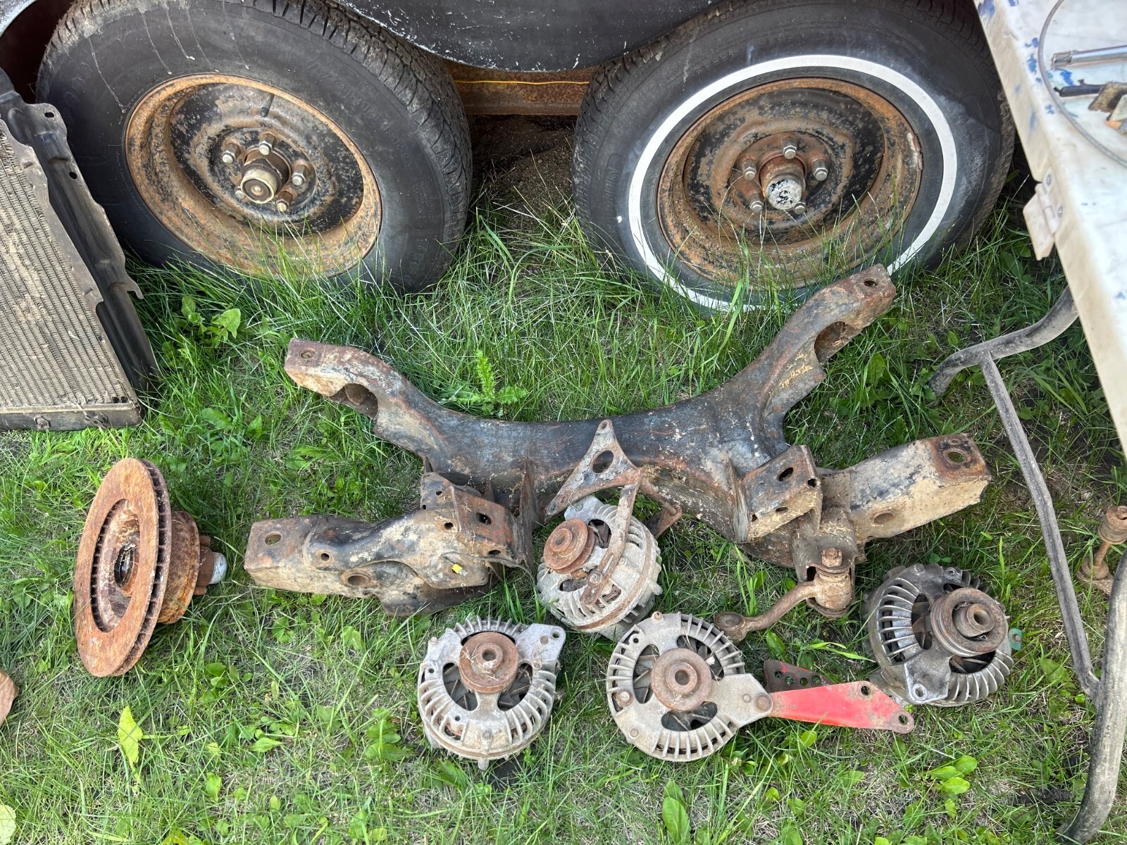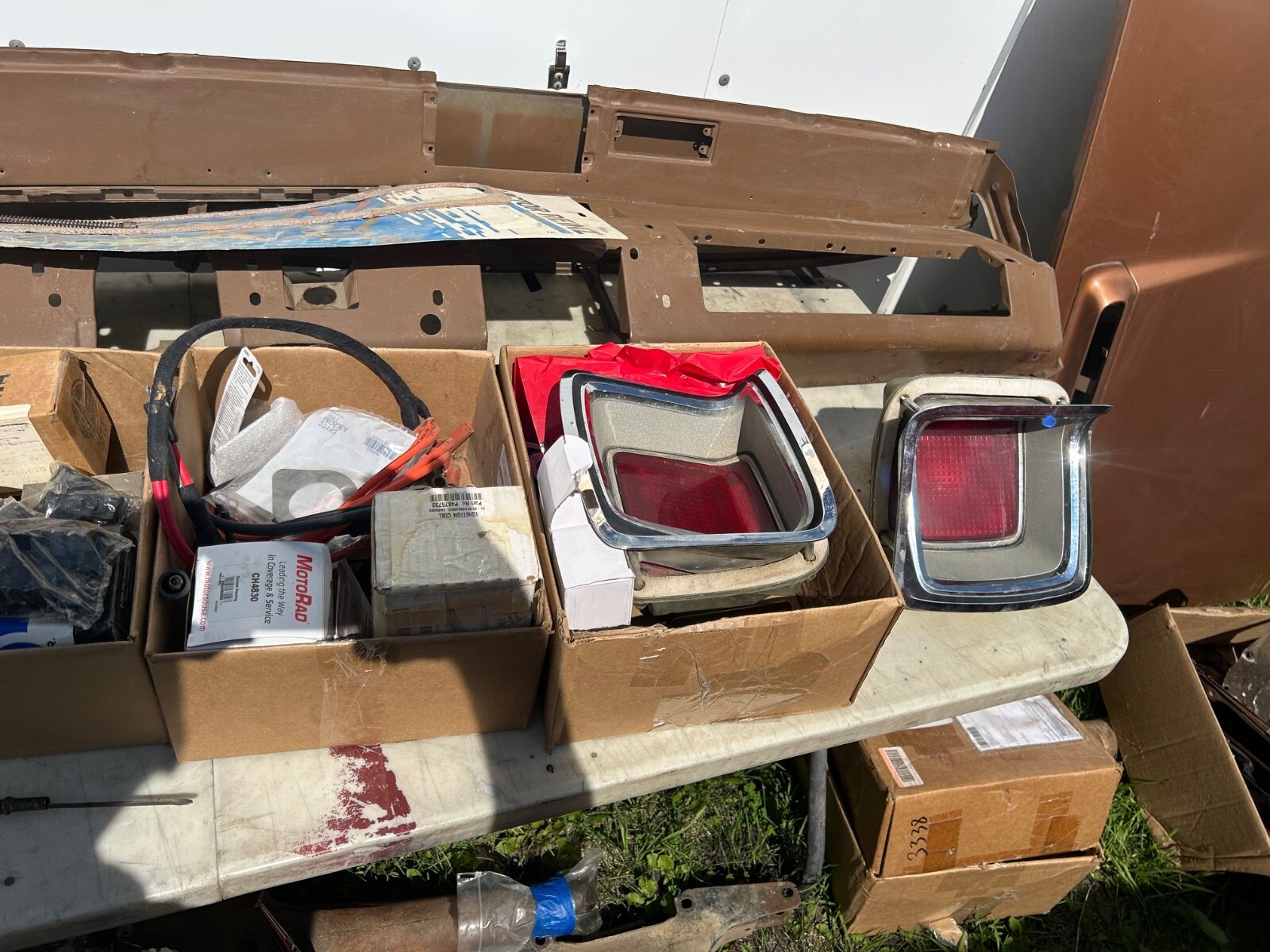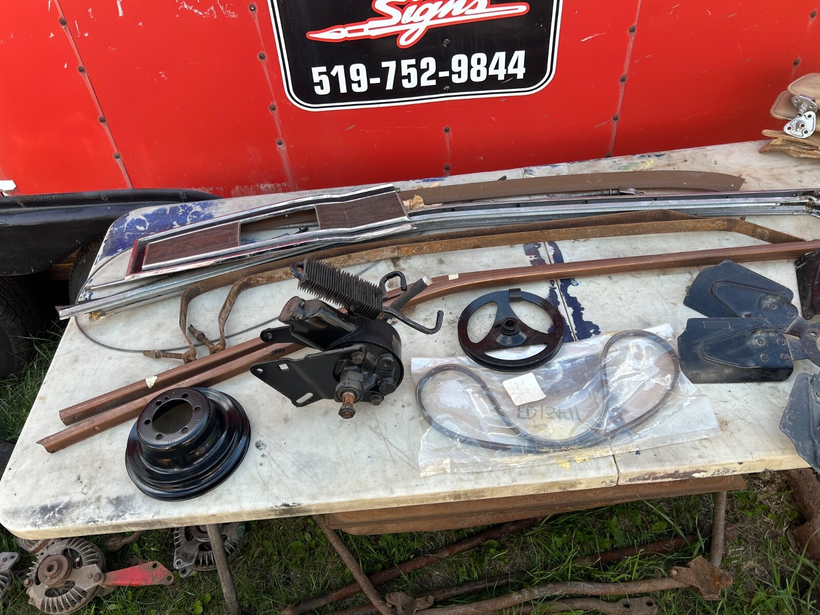 New rear brake drumsNew rear brake rebuild kits includes wheel cylindersNew front wheel bearings, tie rod ends, ball joints, suspension bushingsNew master cylinder, new front calipers rebuild kits and brake padsNew rear wheel sealsAll glass is there except front windshieldThis is a bucket seat console car the console is damaged but the lid and trim are all there and in nice shape and can be transferred over to a new consoleSteering box rebuiltAlternator rebuiltNew dist cap and newer spark plug wires,new coil and regulatorNew oil filter, new rad hose, new heater hoseNew power steering hose, Power steering pump refurbishedNew steering wheelNew starterNew fuel pumpNew tail light lens and new side marker light lensNew shocks