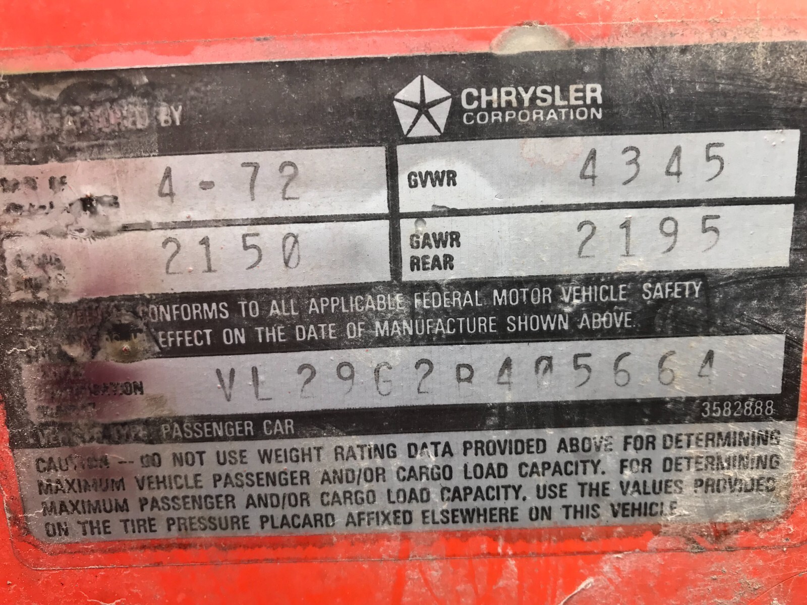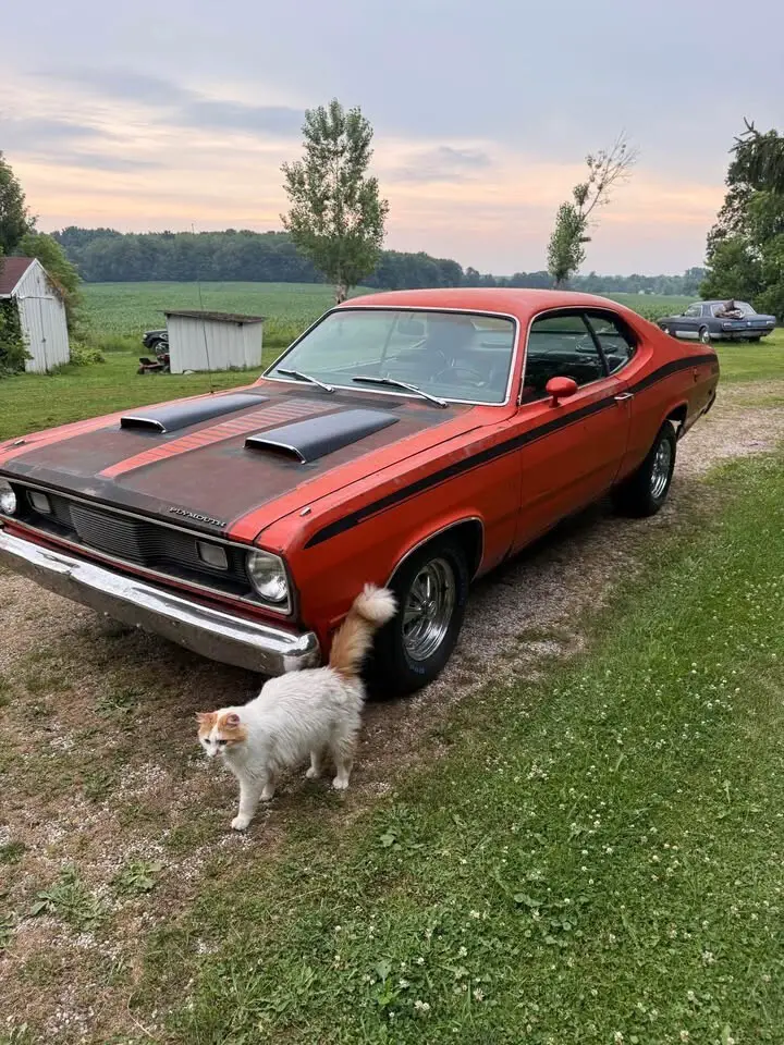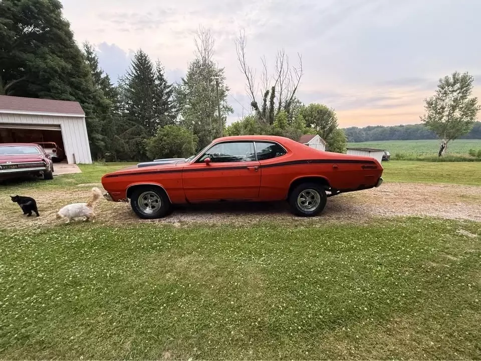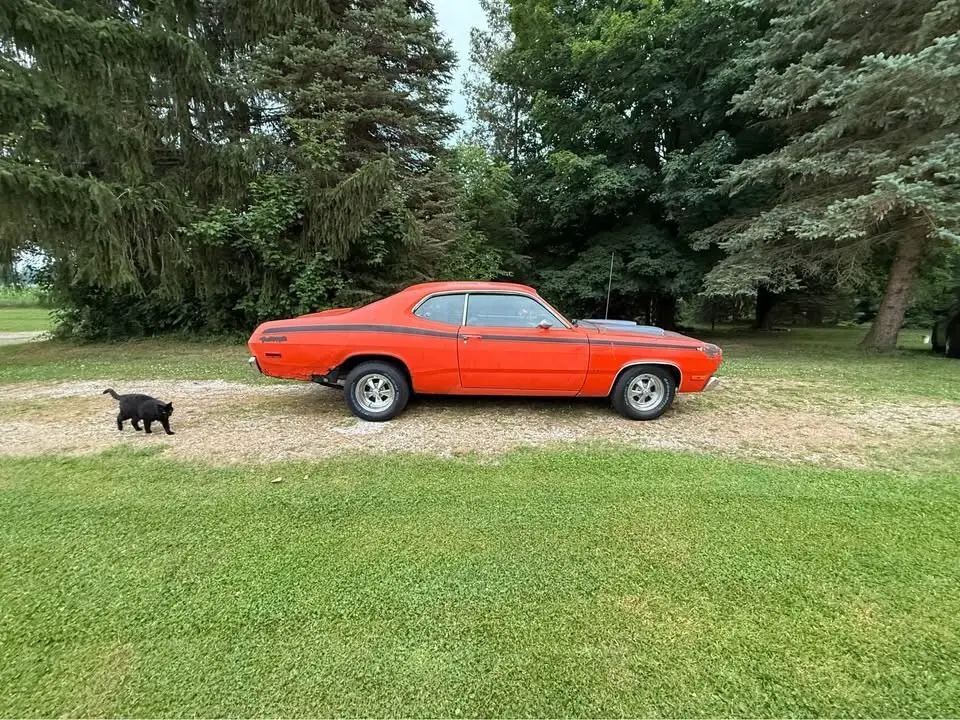 REDUCED FOR QUICK SALE*Sold as is.Settled payment required for title release.1972 duster twister editionThis car runs and drives straight as an arrow.* This car is not perfect, it needs finishing work but it's a great, rare option car with lots of expensive work already done!!.318 engineOriginal numbers Manual 3 speed.8 3/4 rear with sure gripOriginal orange paint, stripes, hood scoopsWith fender tag.Brand new floors and trunk welded in.Brand new tail panel welded and sealedNeeds body finishedNew reman engine year and half old, refreshed trans.New radiator fan clutch .Brand new engine bay harness.Full brake system master cylinder to drums.Full new fuel system tank, lines, filter, carb.New gas pedal with restored bracket and new gas pedal to firewall seal.Flowmaster X mufflers .Ball joints new.New leaf springsEverything works, all lights, heater,Fully rebuilt and functioning heater box and controls.New carpet.New radiatorNew engine and trans mounts.Brand new high torque starter.Brand new edelbrock carb.