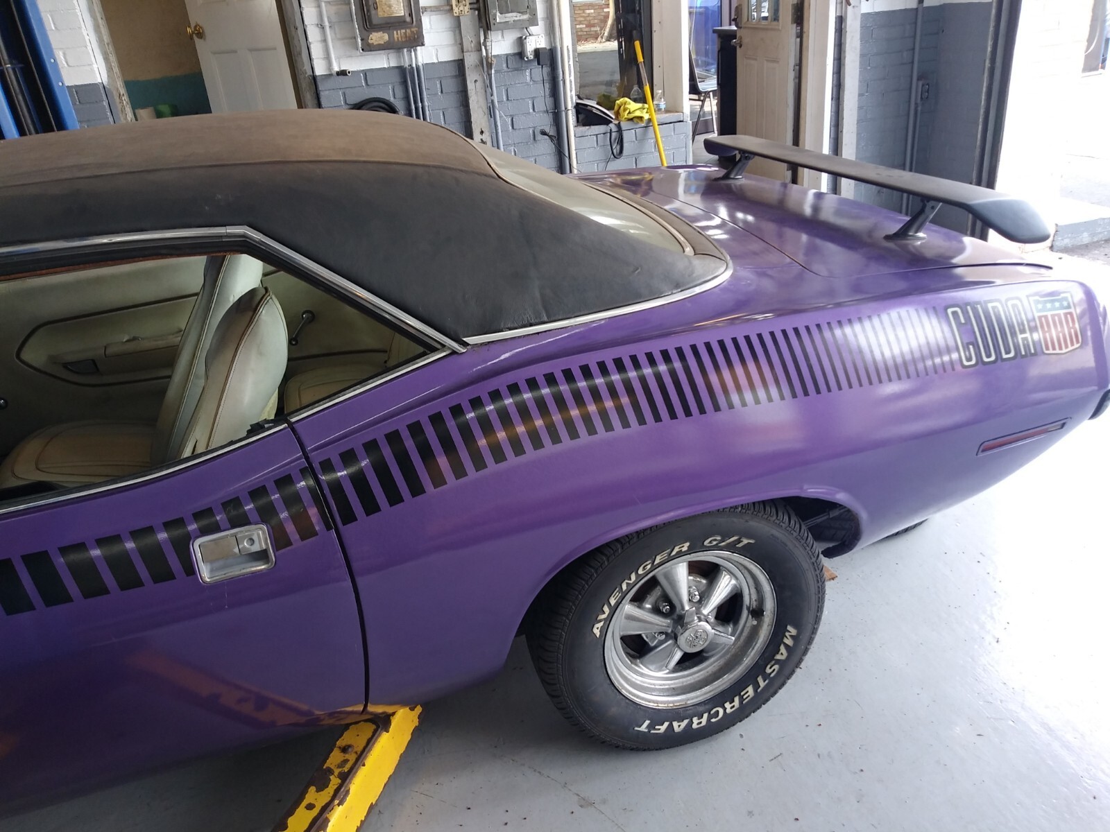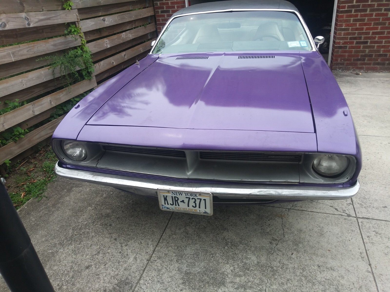The 1970 Plymouth Barracuda Gran Coupe is a factory plum crazy classic muscle car with a unique blend of style and performance. This automatic transmission vehicle features a slant 6 engine, perfect for cruising on the open road. With a sleek purple exterior color and retro design, the Barracuda Gran Coupe . This RWD vehicle has only 105,000 miles on the odometer, making it a reliable and desirable addition to any garage.....Needs.new headliner And drivers leather seat Is torn...... this car has a brand new Plum Crazy Paint Job and a brand new vinyl top.Runs awesome you can drive it home..car will come with original rallye rims .......cragars are not included cause they don't fit properly.