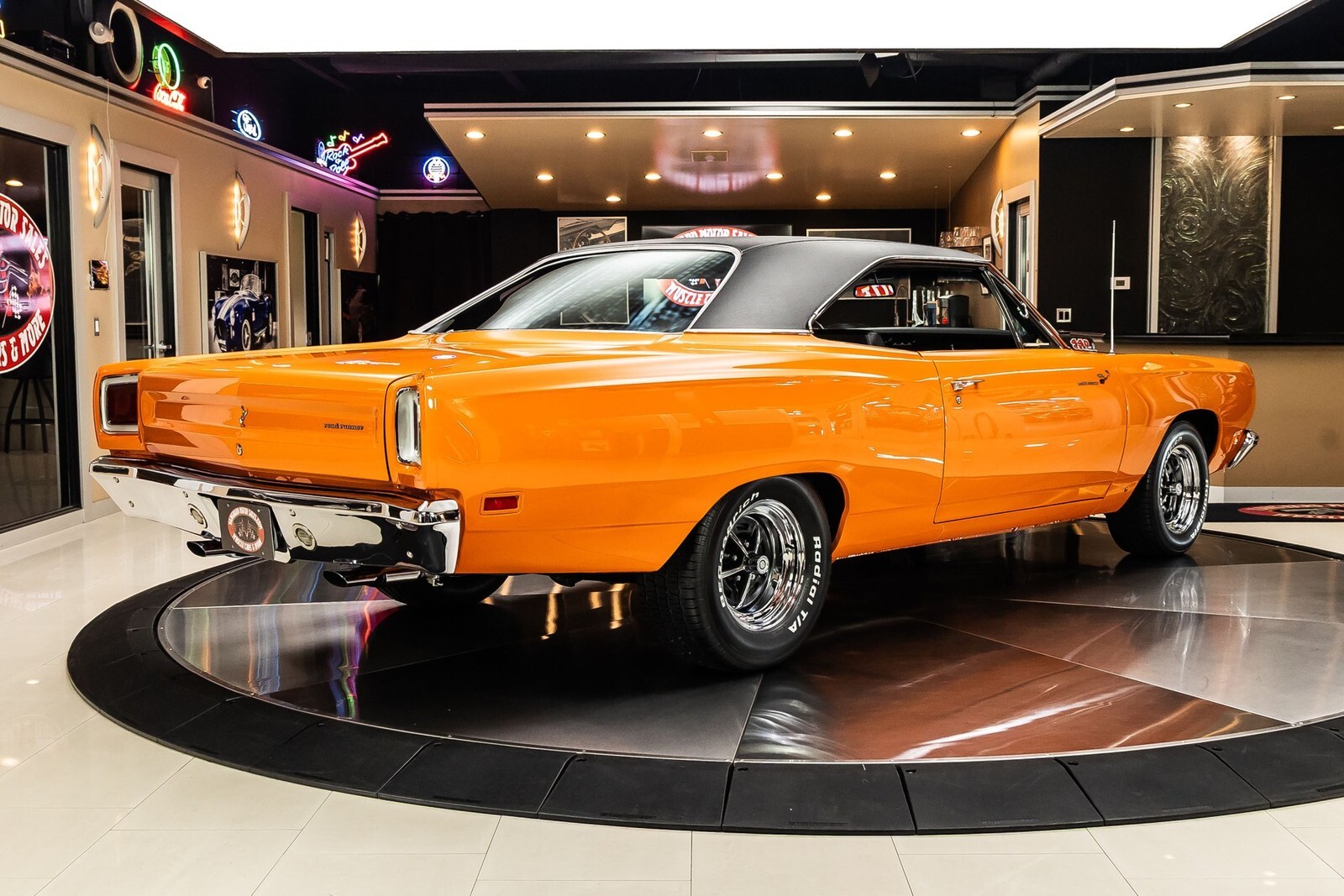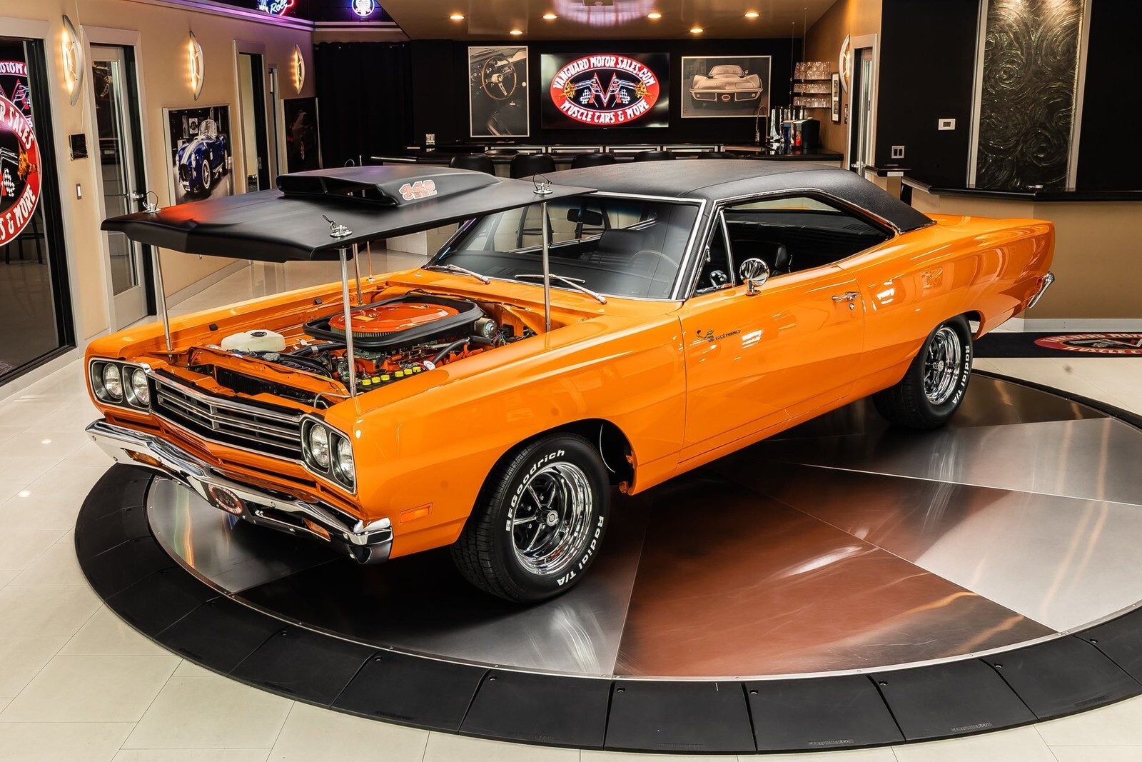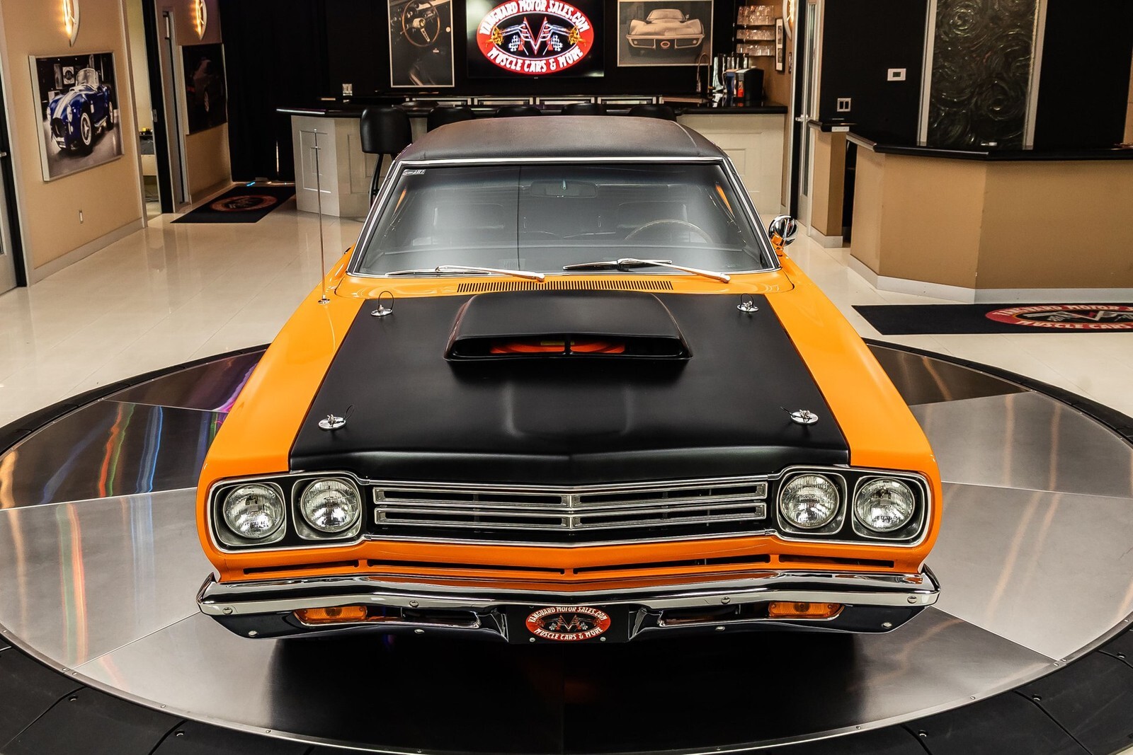 Check out this beautiful 1969 Plymouth Roadrunner! This A12 Tribute Car has undergone a complete & meticulous frame-off restoration with no expense spared! This Roadrunner is finished in beautiful Orange Exterior Paint along with Roadrunner Graphics and Magnum 500 Wheels Wrapped In BFGoodrich Radial T/A Tires! Under the hood sits a Mopar 440ci V8 paired with the Six Barrel Carburetors! Power is sent to the rear wheels through a 3-Speed Automatic Transmission, & Factory Style Rear End with a 4.10:1 Gear Ratio. Additional Features Include, Power brakes W/ Front Disc, Factory Style Exhaust, Power Steering, New Hardware, New Brake Lines, New Suspension, New Fuel Lines and a New Gas Tank!