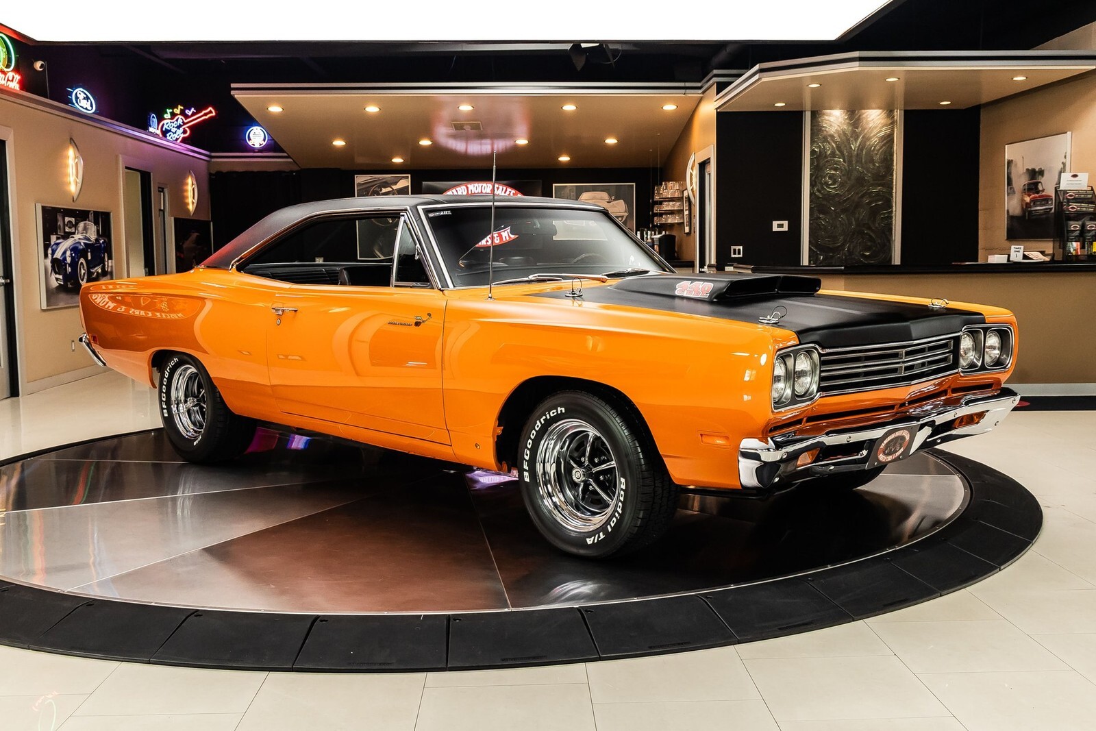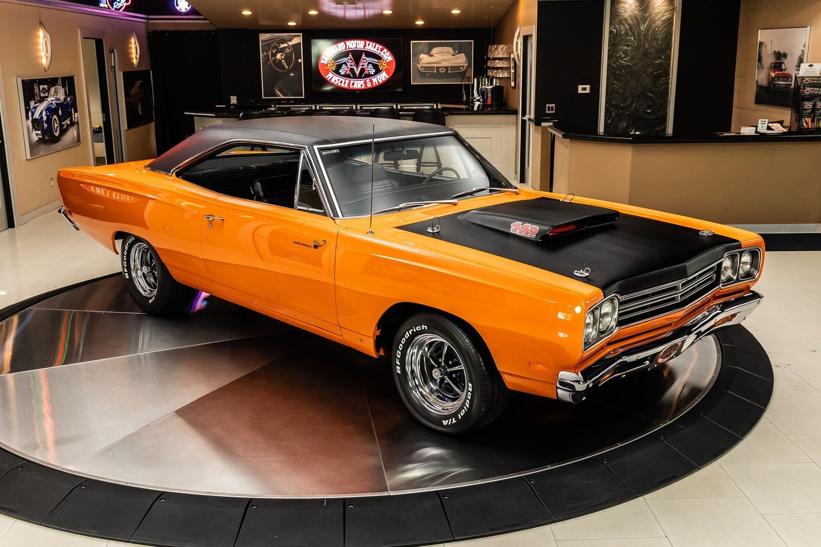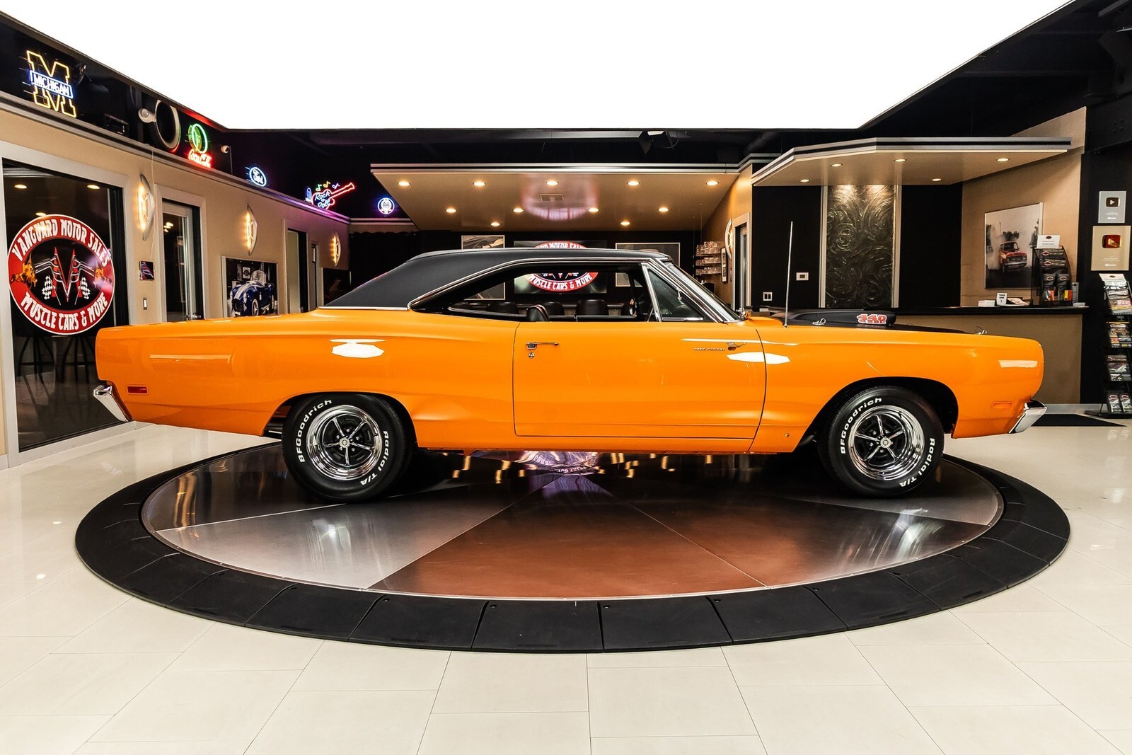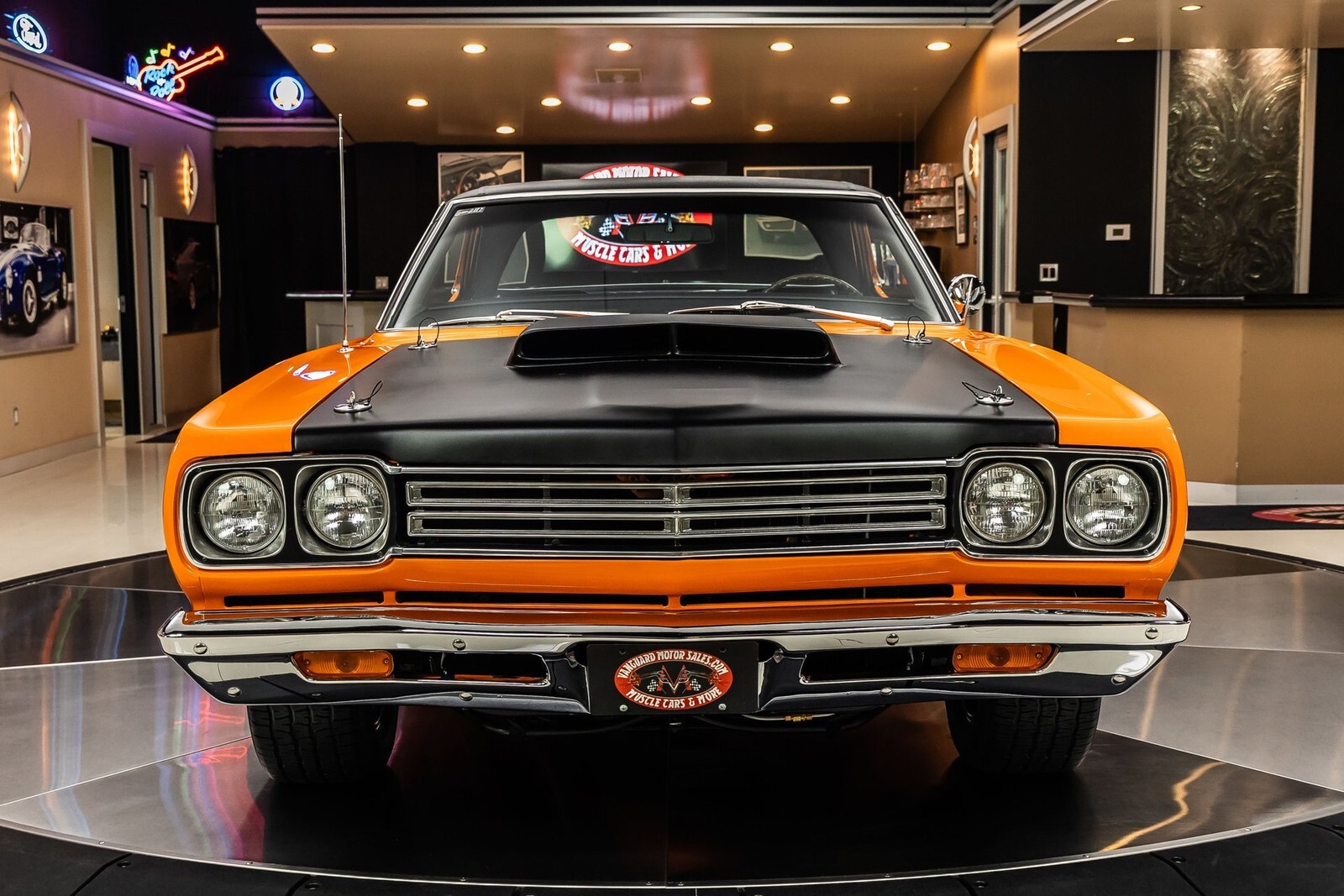Check out this beautiful 1969 Plymouth Roadrunner! This A12 Tribute Car has undergone a complete & meticulous frame-off restoration with no expense spared! This Roadrunner is finished in beautiful Orange Exterior Paint along with Roadrunner Graphics and Magnum 500 Wheels Wrapped In BFGoodrich Radial T/A Tires! Under the hood sits a Mopar 440ci V8 paired with the Six Barrel Carburetors! Power is sent to the rear wheels through a 3-Speed Automatic Transmission, & Factory Style Rear End with a 4.10:1 Gear Ratio. Additional Features Include, Power brakes W/ Front Disc, Factory Style Exhaust, Power Steering, New Hardware, New Brake Lines, New Suspension, New Fuel Lines and a New Gas Tank!