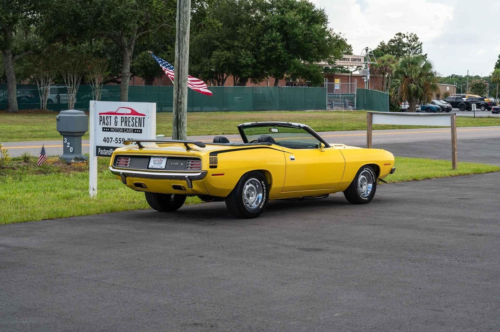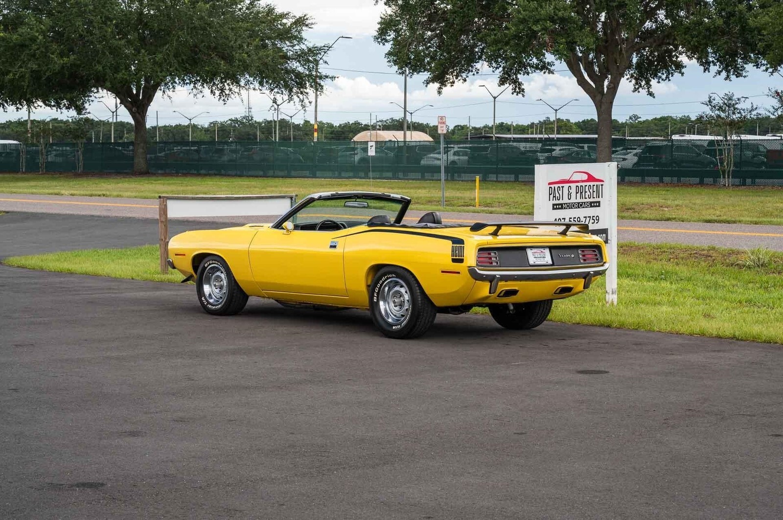 1970 Plymouth Hemi ’Cuda Convertible Tribute, Lemon Twist, 480ci Hemi Stroker, Hemi 4-Speed, Dana 60, this is a freshly restored, rotisserie-level Hemi ’Cuda convertible clone built to drive and show. Only about 380 miles since completion with a stout stroked Hemi, heavy-duty 4-speed, and Dana 60 Sure Grip. Highlights • Model: 1970 Plymouth Barracuda convertible — Hemi ’Cuda tribute • Engine: 426 Hemi stroked to 480 cubic inches; hydraulic lifters; forged internals • Transmission: Hemi HD 4-speed manual (A833 18-spline) with Pistol Grip shifter • Rear axle: Dana 60 with 3.54 Sure Grip • Color/Top: Lemon Twist Yellow with power black soft top • Interior: Black vinyl bucket seats; center console • Steering/Brakes: Power steering; power front disc brakes • Wheels/Tires: 15-inch Mopar Rally wheels; period-correct Goodyear F60-15 tires • Restoration: Recent rotisserie restoration; approx. 380 miles since completion Drivetrain and chassis • 480ci Hemi build focuses on durability and streetable power: hydraulic cam/lifters, forged rotating assembly, and quality machine work. • Hemi-spec A833 HD 4-speed delivers crisp engagement; clutch action and shift feel are consistent with a fresh build. • Dana 60 with 3.54 Sure Grip balances highway usability with strong off-the-line performance. • Power front discs and power steering make this big-power E-body easy to enjoy. Exterior • High-quality Lemon Twist refinish with uniform panel gaps and clean trim/brightwork. • Power black convertible top operates smoothly and presents as new. • Correct Hemi ’Cuda visual cues and stance; overall show-level presentation. Interior • Black vinyl bucket seats and console appear fresh throughout; dash, gauges, carpets, and soft trim show minimal wear. • Pistol Grip shifter, classic Rallye wheel setup, and clean instrument lenses complete the period-correct look. Road manners • Starts readily, idles clean, and pulls hard through the revs; cooling and charging systems behave as expected. • Tight chassis feel with confident braking and straight tracking; tires present with near-new tread depth. Why this car • The look and aura of an original Hemi ’Cuda convertible at a fraction of the cost. • Fresh, blueprint-style build with the right hardware: stroked Hemi, Hemi HD 4-speed, and Dana 60. • Show-stopper cosmetics with the drivability you want for real road use. A meticulously executed Hemi ’Cuda convertible tribute in Lemon Twist with a fresh 480ci Hemi, Hemi 4-speed, and Dana 60 Sure Grip. Extremely clean, dialed-in, and ready to turn heads on the show field and the street. While we do our best to provide the highest quality muscle cars with an honest and reliable description and realize the importance of transparency when selling vehicles. That being said, we have not built, modified, changed or personally owned this vehicle. Whether this vehicle is consigned or owned by Past & Present Motor Cars we do not know the vehicles complete history since new. We want to be clear and try to answer any questions our customers might have prior to purchasing. Additionally, we not only welcome but we encourage 3rd party independent inspections. Please inquire prior to purchase to make sure the advertised vehicle has not already been sold. We list our vehicles on multiple websites and a vehicle can sell at any time. If a customer chooses to purchase sight unseen (many of our customers choose this option) the customer accepts the vehicle AS IS and WHERE IS and understands we cannot address concerns after purchase. For this reason, it's important all concerns are addressed prior to purchase. We make every effort to present accurate and reliable information, but use of this information is voluntary, and should only be deemed reliable after an independent review of its accuracy, completeness, and timeliness. It is the sole responsibility of the customer to verify the existence of options, accessories and the vehicle condition before time of sale. Financing is Available with low rates and Vehicle Shipping is available from our Showroom to your Garage. A Classic Car Warranty is Available for Purchase from a 3rd Party. Please speak to our Sales Associate or Company Representative for more information. Our team is working and available anytime by Phone or Text for your convenience at 407-559-7759. Thank you for your interest!