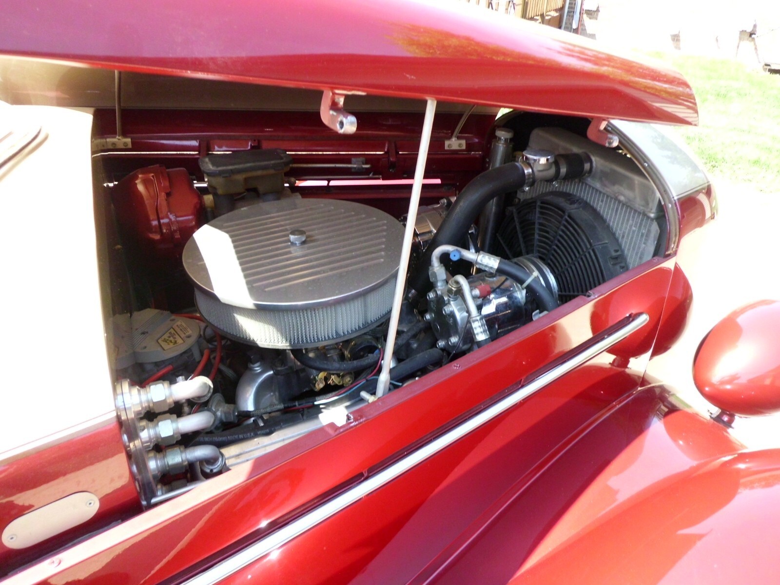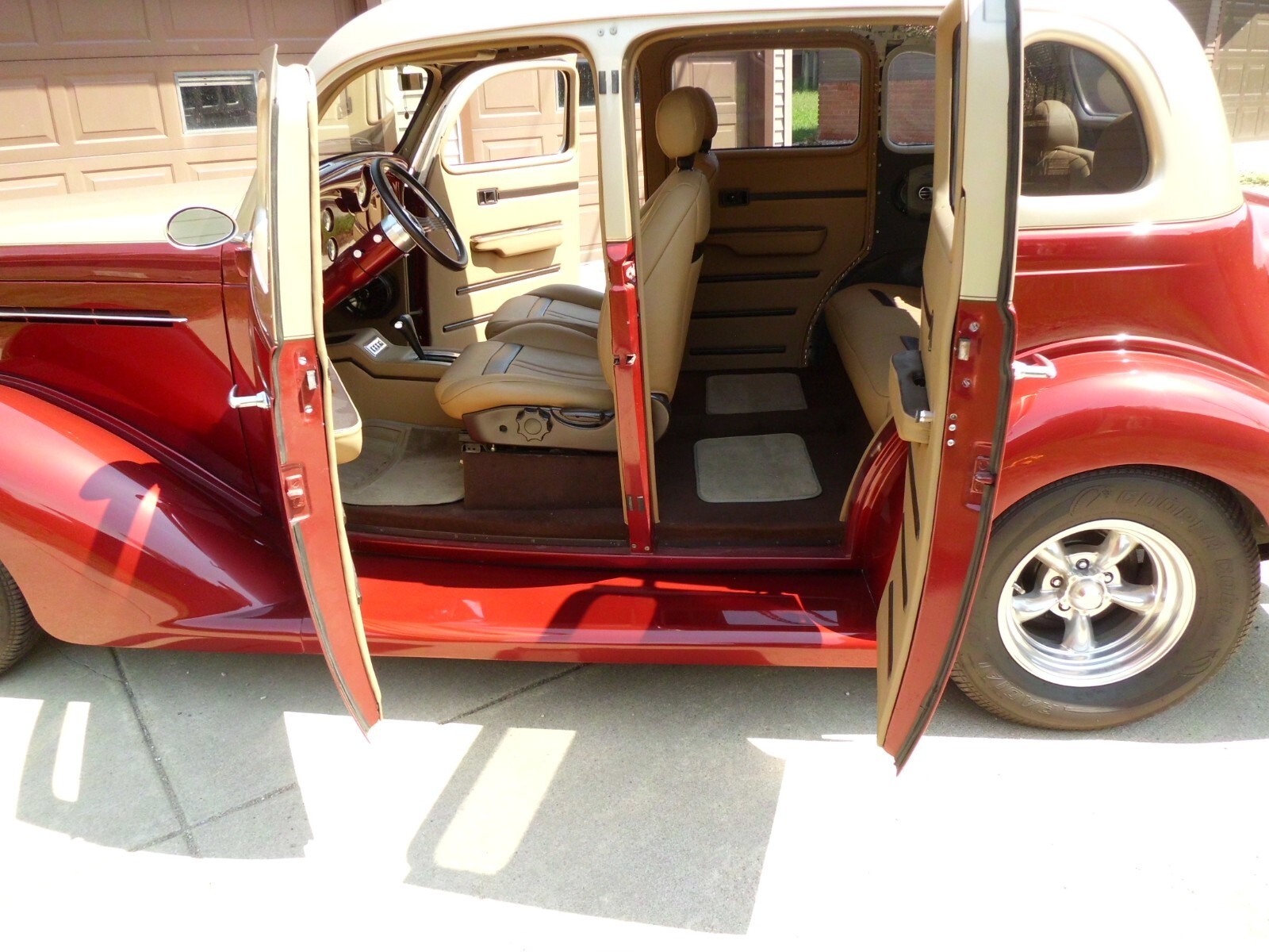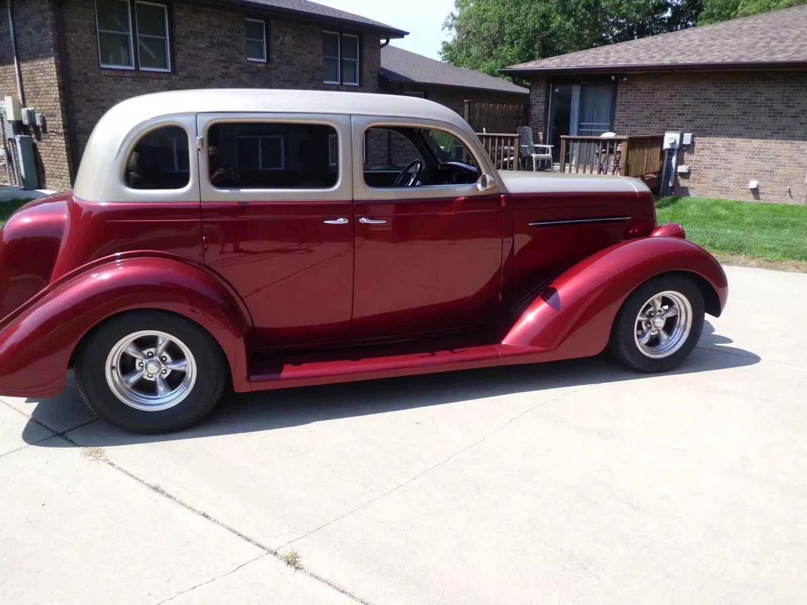 1935 PLYMOUTH SEDAN, SBC 355(NICE CAM, SOUNDS AMAZING). 700R OVERDRIVE, ALL STEEL, VERY NICE INTERIOR(LOTS OF ROOM IN THE REAR SEAT), COLD AC, HEAT AND DEFROST, RUNS DOWN THE ROAD GREAT AT 70 MPH, ALUMINUM RADIATOR WITH ELECTRIC FANS(HAS PUSHER FAN SET UP WITH SWITCH, BUT NEVER USE IT BECAUSE TEMP RUNS AROUND 185 DRIVING AROUND TOWN WITH AC ON), MUSTANG TWO FRONT END, FORD 9IN REAR END, WOULD DRIVE ANYWHERE, BODY AND INTERIOR EXCELLENT SHAPE, NEEDS HEADLINER(HAVE MATERIAL FOR IT), DOLPHIN GAUGES. NEED NO HELP SELLING . HAVE PICTURES OF COMPLETE BUILD.