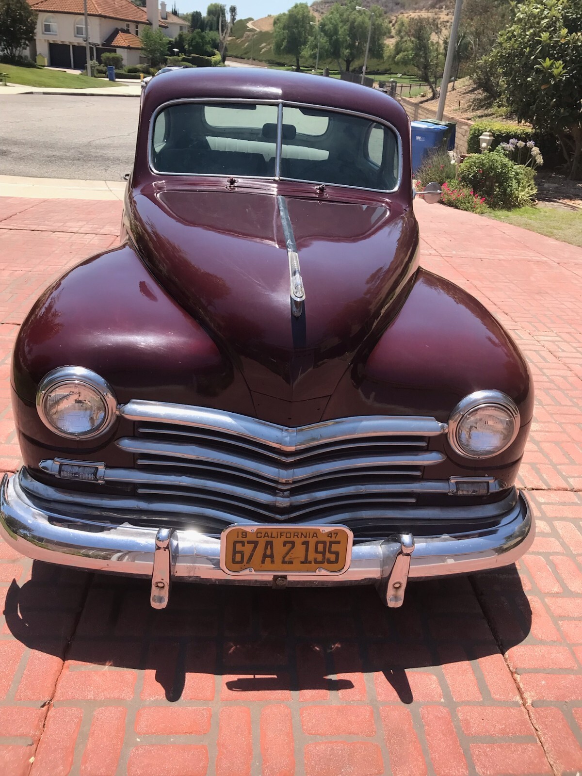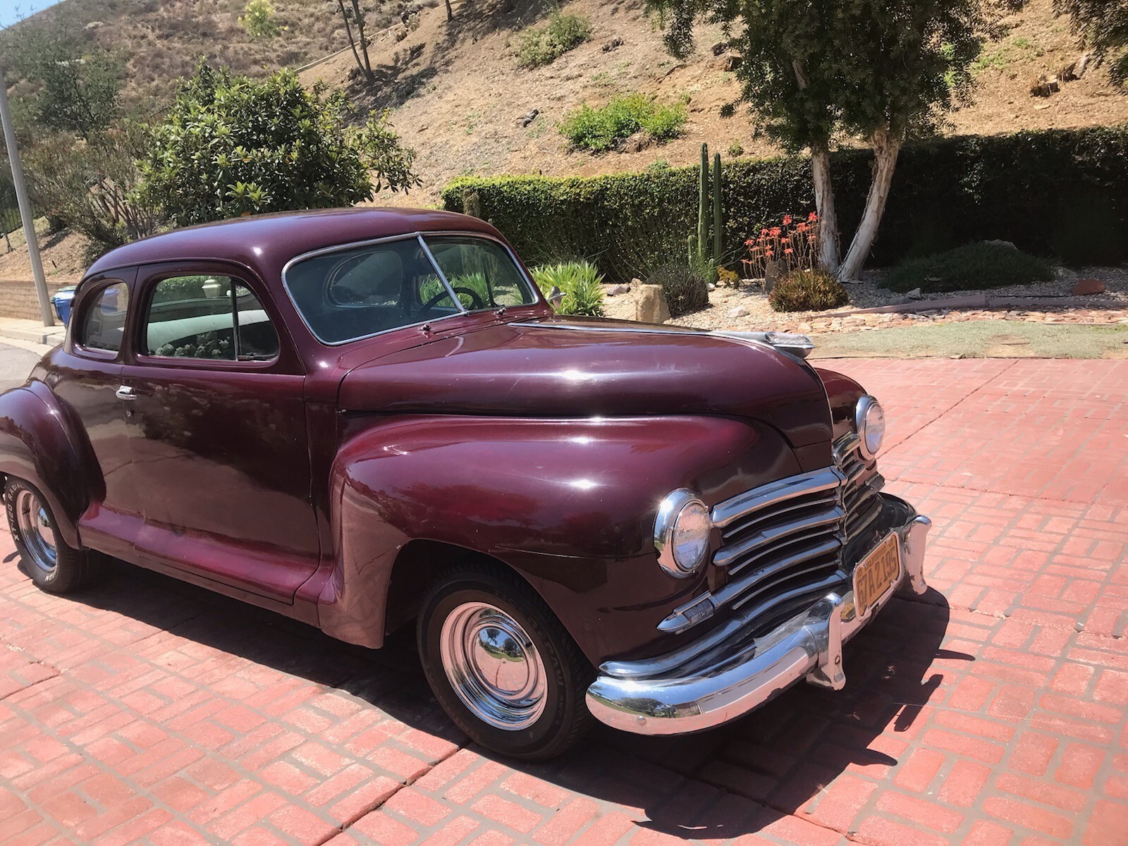 1947 Plymouth P-15C Special Deluxe Coupe "Old School" Hotrod. 1947 Plymouth P-15C Coupe is a very cool piece of automotive history in the "hotrod" classic style. With a burgundy exterior finish and gray cloth interior, featuring a manual 3 speed transmission, 6 cylinders, chrome reverse wheels, and dual exhaust. Sounds cool, drives nice, looks even better. Does not smoke, leak, or knock. Starts easy. Brand new battery. This vintage vehicle was manufactured in the post war United States. With 2 doors and a seating capacity for 6 people, this RWD coupe is a unique and collectible piece of post war history for car enthusiasts and lovers of nostalgia. Clean California Title, Vintage '47 California plates, with current registration. Great investment. "Thumbs up" whenever its driven.