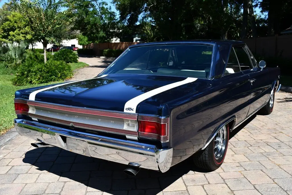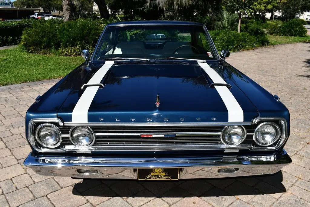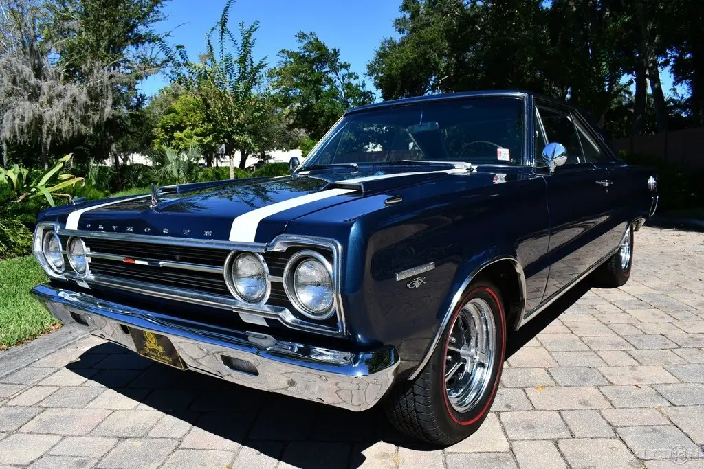 Remarkably Restored 1967 Plymouth GTX Real 440ci from factory V-8 That is nonmatching #s Dated 1969 Automatic Transmission Last Family Owned Since 1996 Miles read exempt on title Amazing Blue Exterior White Parchment Bucket Seats Center Console Newer redline tires