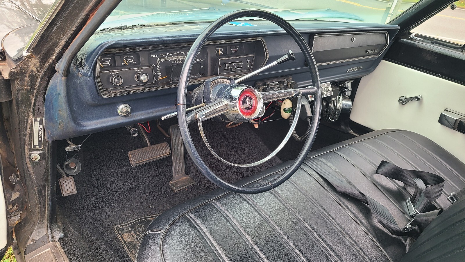 Dog Dish Plymouth Wheel Covers. Gumball Police Light Works as does the Siren. The body is straight,had some patch work done in trunk floor and frame braces, lolly pop brake lights in rear window work,this is a fun car to drive around,it always turns heads.