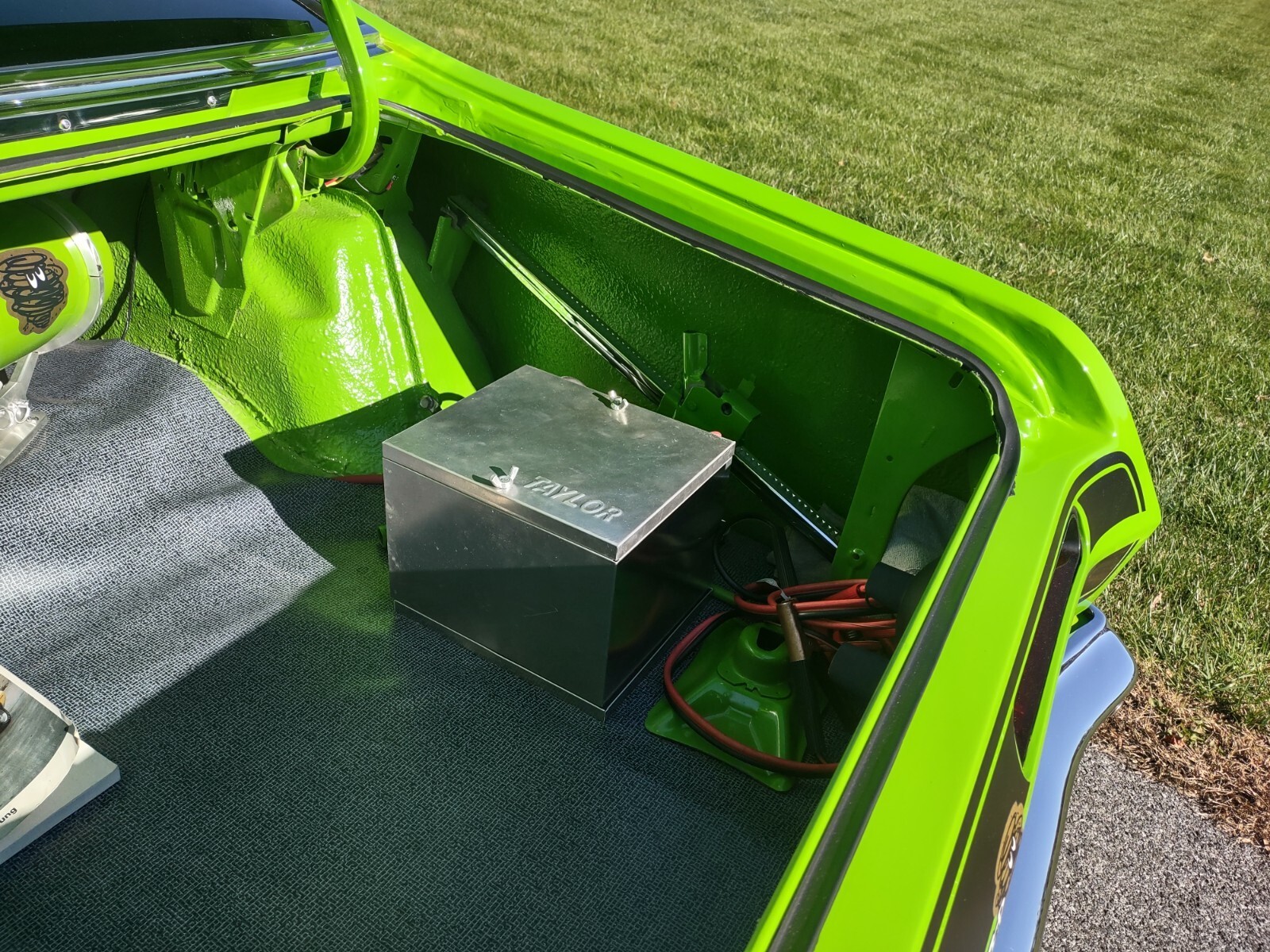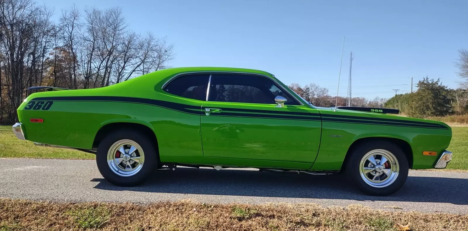 1974 Plymouth Duster 360 Sassy Grass Green. Engine is a 360 Magnum Block, Bored 4.06 with a 4.0 Stroke, internally balanced with Diamond Forged Pistons, I-Beam Rods, Comp Hydraulic Roller Cam and Roller Rockers 10.00 to 1 Compression 415 Cubic Inch, 520 Horsepower, 525 Foot Pounds Torque 500 CFM Dual Edelbrock Carbs. Stainless Steel Fuel and Brake Lines. Moser Axles Installed. MSD Electronic Ignition System. March Performance Billet Aluminum Serpentine System. Griffin Aluminum Radiator with Duel Electric Fans. A833 4-Speed HEMI Transmission by Brewer's Performance. 3" TTI Exhaust System. Wilwood Disk Brakes. CalTracs Traction Bars. 8 3/4" Positraction Rear End Equipped with 3:55 Gears. Mopar Super Stock Leaf Springs. Factory Dual Snorkel Hood Scoop. Restoration Journal with Pics included. Nitrous in trunk has never been used. Bottles are empty and could be used, if buyer chooses. This car has won multiple "Best of Show" awards One cool ride.