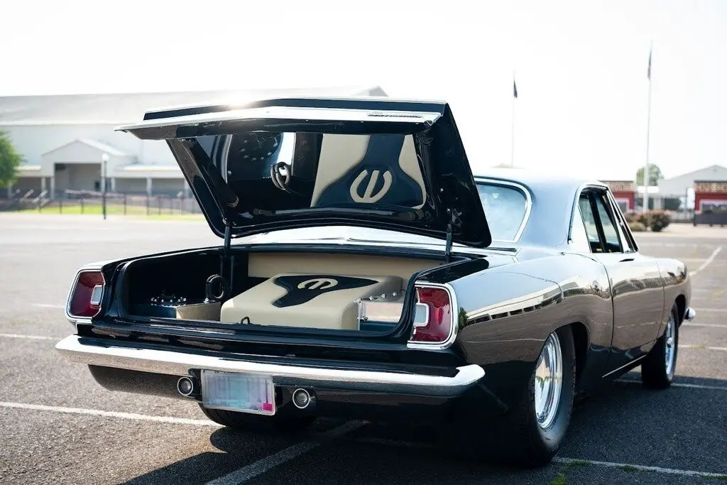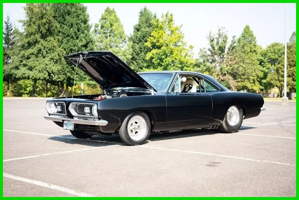 “Up for sale is a 1967 Plymouth Barracuda Notchback, fully custom-built from the ground up. Power comes from a 540 C.I. engine equipped with an F-2 Procharger, paired with a 727 3-speed transmission. The car features Art Morrison frame rails, crossmembers, and a 10-point roll cage for maximum strength and safety. Suspension setup includes a Magnum Force tubular front suspension, ladder bars, and coil-overs in the rear for top-tier handling and traction. Out back, it’s running a Dutchman narrowed 9-inch rear-end housing with a Strange 4:10 spool and 35-spline axles.