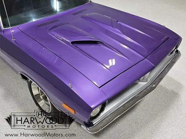 You kind of get the impression that Mopar sat back and watched Ford and Chevy build pony cars before bringing out the ?Cuda. The ?Cuda totally nailed the concept, allowing a myriad of engines big and small in a package that was right-sized for performance, all wrapped in some of the best-looking sheetmetal of the era. It?s no wonder that proper ?Cudas are highly prized with collectors today. This 1972 Plymouth ?Cuda 340 is a lifetime Arizona car, and being from the desert means that it has all its original sheetmetal and remains super clean underneath even though it has never been fully disassembled. The first of two fender tags will tell you this car was originally gold?bleh?but when it was refinished by Haynes Speed Shop in Arizona a few years ago, they made a more exciting choice: In-Violet! Obviously the vivid purple paint looks awesome on the sporting ?Cuda and thanks to that clean desert sheetmetal, the bodywork is laser-straight with an awesome shine. Correct ?hockey stick? decals with ?340? callouts were added to complete the look, making this one of the best-looking E-bodies we?ve seen. Gaps are even, the panels all line up properly, and it has a great feel that only cars that haven?t been blown apart can offer. In short, if you want a clean, straight ?Cuda, this is a great choice.
