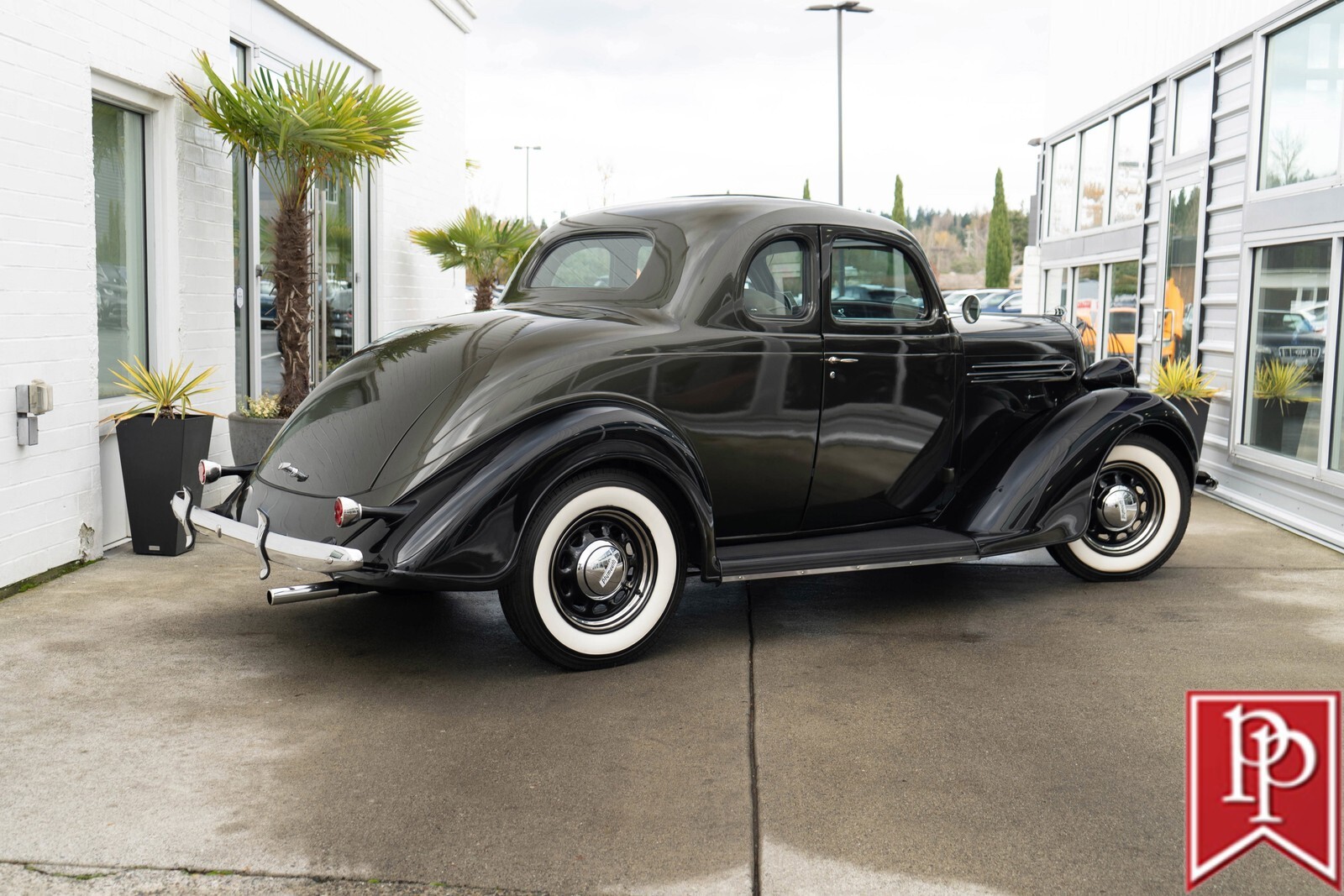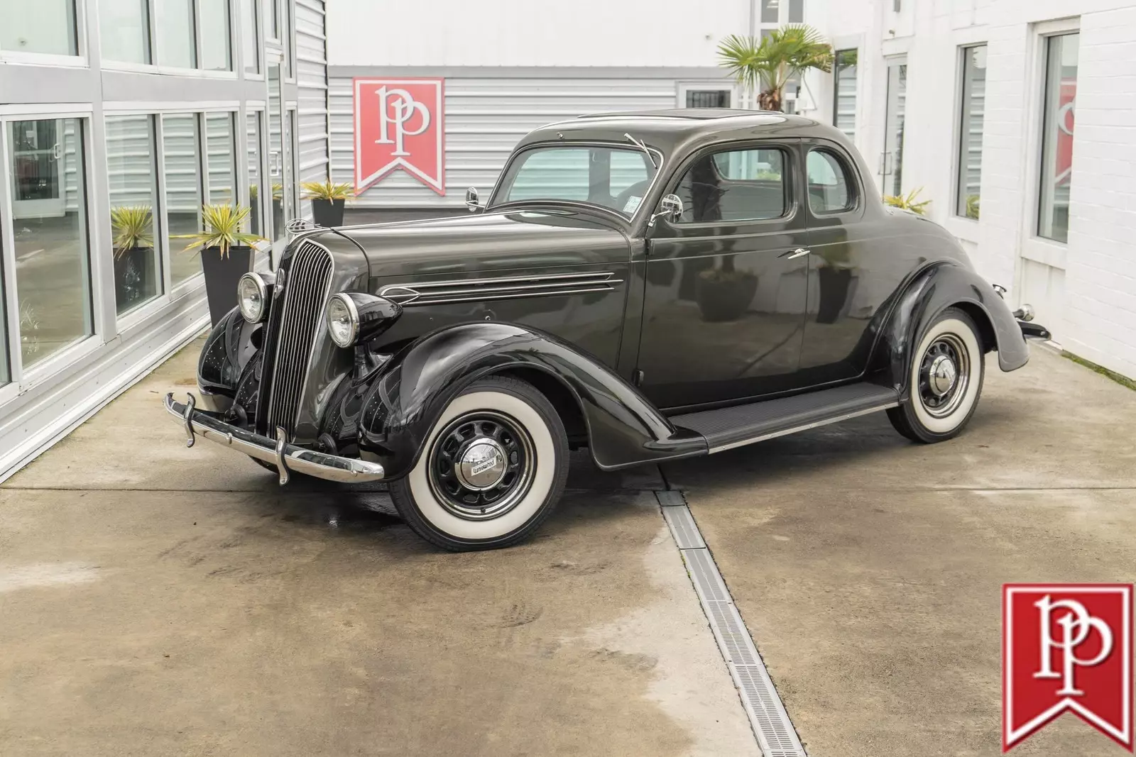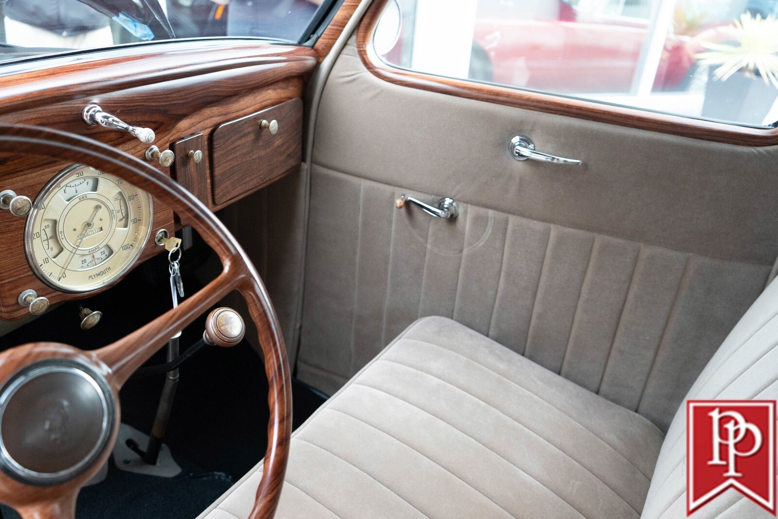 1936 Plymouth P1 5-Window Business Coupe This Plymouth P1 really does a remarkable job of showing how even fairly ordinary cars in the pre-war era, were built to a higher standard. With striking two-tone paint, chrome bumpers and grille, and a watch-like speedometer with integrated auxiliary dials, this Plymouth feels truly special and unique, without having to dish out a ton of money to get behind the wheel. This 1936 5-window Business Coupe was treated to a frame off restoration to stock configuration in the 2010s and remains in excellent condition throughout. Finished in two-tone Dark Olive Metallic with Black fenders, the car looks exceptionally dignified, sitting on a set of 10-spoke wheels with chrome hub caps, beauty rings and wide white wall tires. The tall waterfall grille is complimented by a nice chrome bumper in front, and on the side, textured rubber running boards. The interior features front and rear bench seats wrapped in tan mohair, with door cards finished in the same fabric. Trimming the cabin is painted wood grain on the steering wheel, dashboard, and inner window surrounds which give the interior a uniquely high-quality feel. Sitting in the center of the dashboard sits a large 100 mph speedometer with an integrated oil temperature, water temperature and amp-meter. Under the hood sits a 201 cubic inch inline-6 that breathes through a 1bbl Carter carburetor. With a flathead design, this was a fairly early use of the inline 6 in the Plymouth line, and rated at 82 horsepower and 145 lb-ft of torque. What was unique about this engine was that it offered a smooth, quiet driving experience and that remains today, as it still runs incredibly well. Power is then sent to the rear wheels via a 3-speed manual gearbox. Within the last two years, all of the wiring in the car was gone through to ensure that the car drives well and everything works as intended. If you want a classic that will draw attention everywhere you drive, this Plymouth certainly checks that box. With its fairly recent restoration and excellent mechanical upkeep, this represents a ton of style and uniqueness, for a very reasonable price. Key Features Body-Off Restoration in 2010s 201ci Flathead Inline-6 82 Horsepower/145 Lb-Ft of Torque 3-Speed Manual Gearbox 10-Spoke Wheels w/Chrome Hubcaps and Beauty Rings Pop-Out Windscreen Stunning Two-Tone Paint Dark Olive Metallic/Black Ecru Mohair Interior Wood Grain Interior Trim Heater New Wiring Within Last Two Years For more information on this 1936 Plymouth P1 5-Window Business Coupe or any of our 150+ High-Performance, Exotic, Luxury, and Special Interest Cars always in stock, contact one of our friendly and knowledgeable sales consultants or feel free to drop by our 40,000+ sq ft of Indoor Showrooms in Bellevue, WA - Home of an Exciting Inventory of Luxury, Exotic, High Performance and Collectible Automobiles. With 200+ Always On Site, Nobody Has What We Have!
