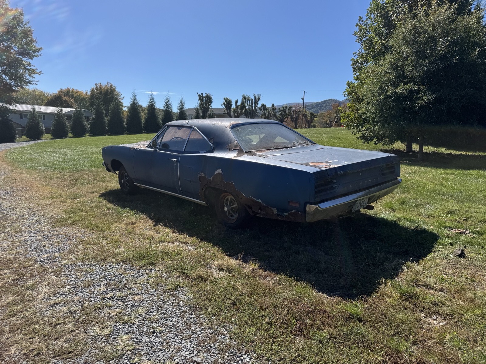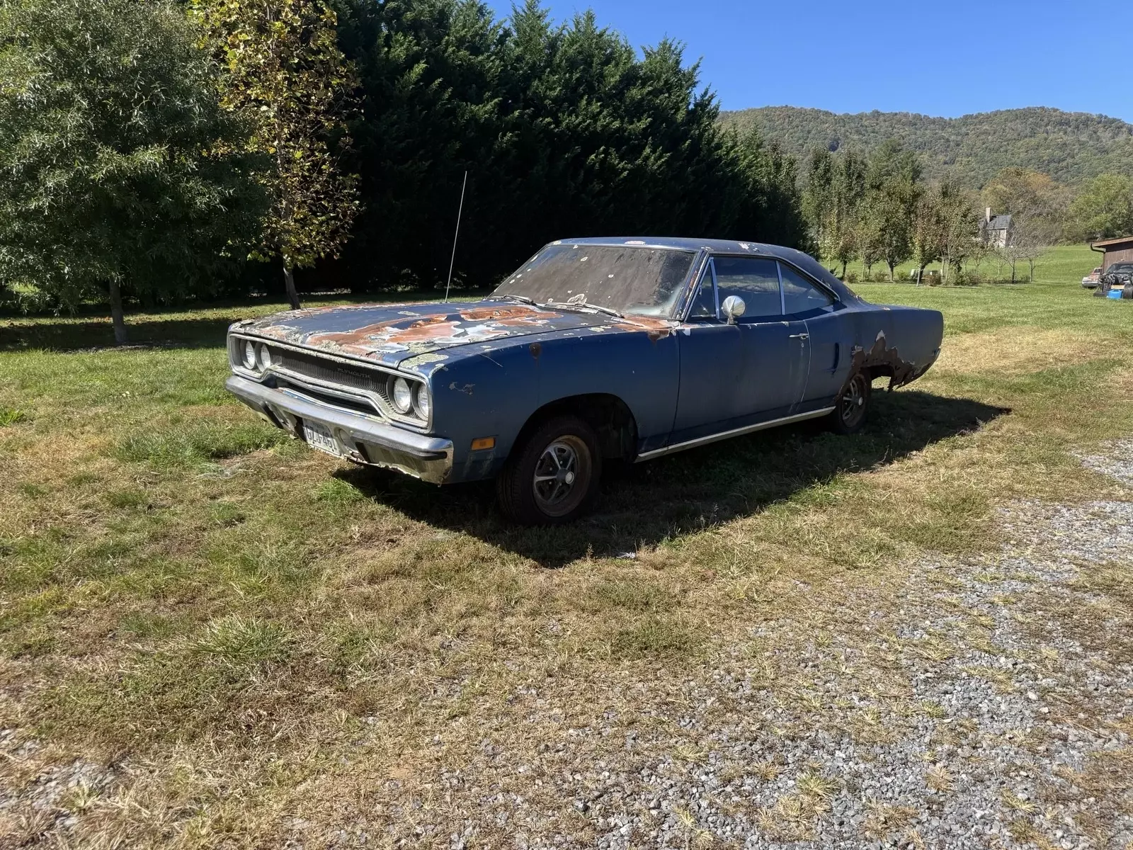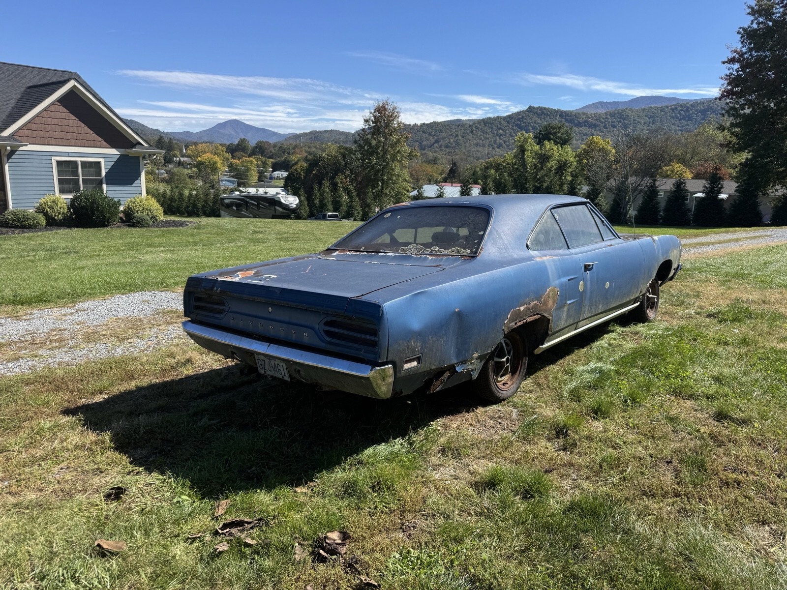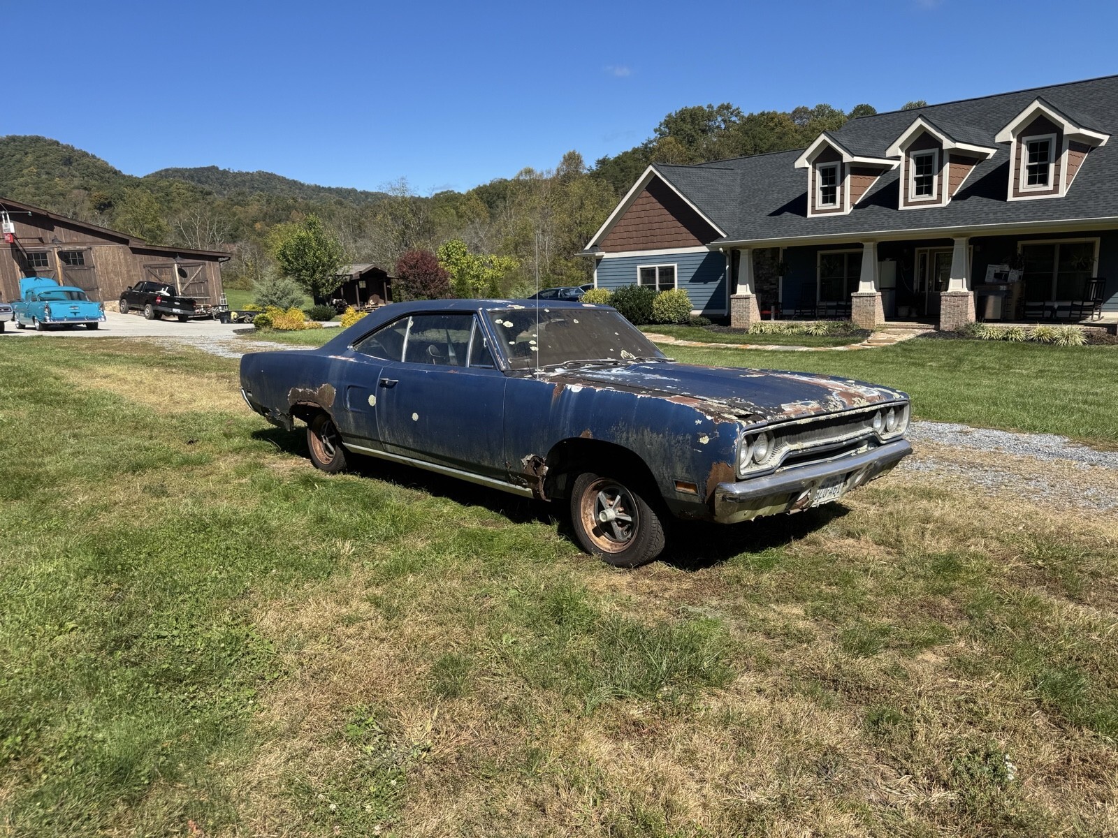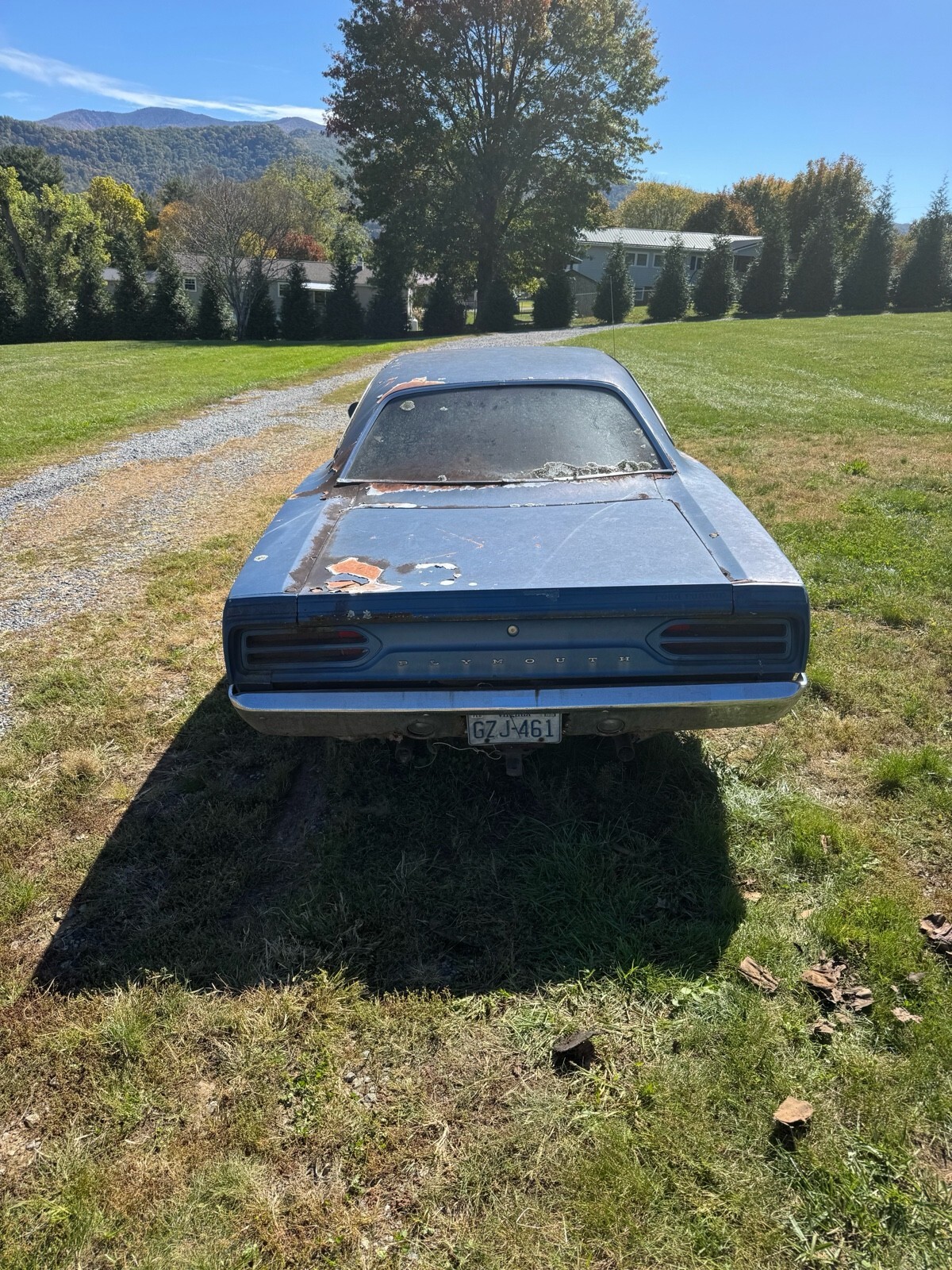 1970 roadrunner one owner untouched all documentation. factory coyote catcher 383HO pistol grip 4 speed. Car is untouched missing nothing Car does not run and drive will need full restoration. Do you have clean clear title. 95% of the rust is in the back half of this vehicle have two rest free original fenders to go with car does have new tires rolls easy. no rust in rockers no rust in firewall no rust indoors no rust in roof two small spots in floor pan. Trunk Quarters wheel wells need to be replaced. No rust in front cradle or front frame rails