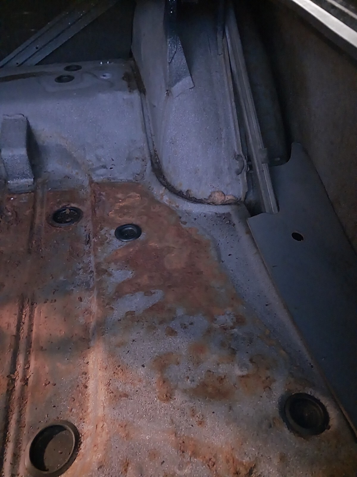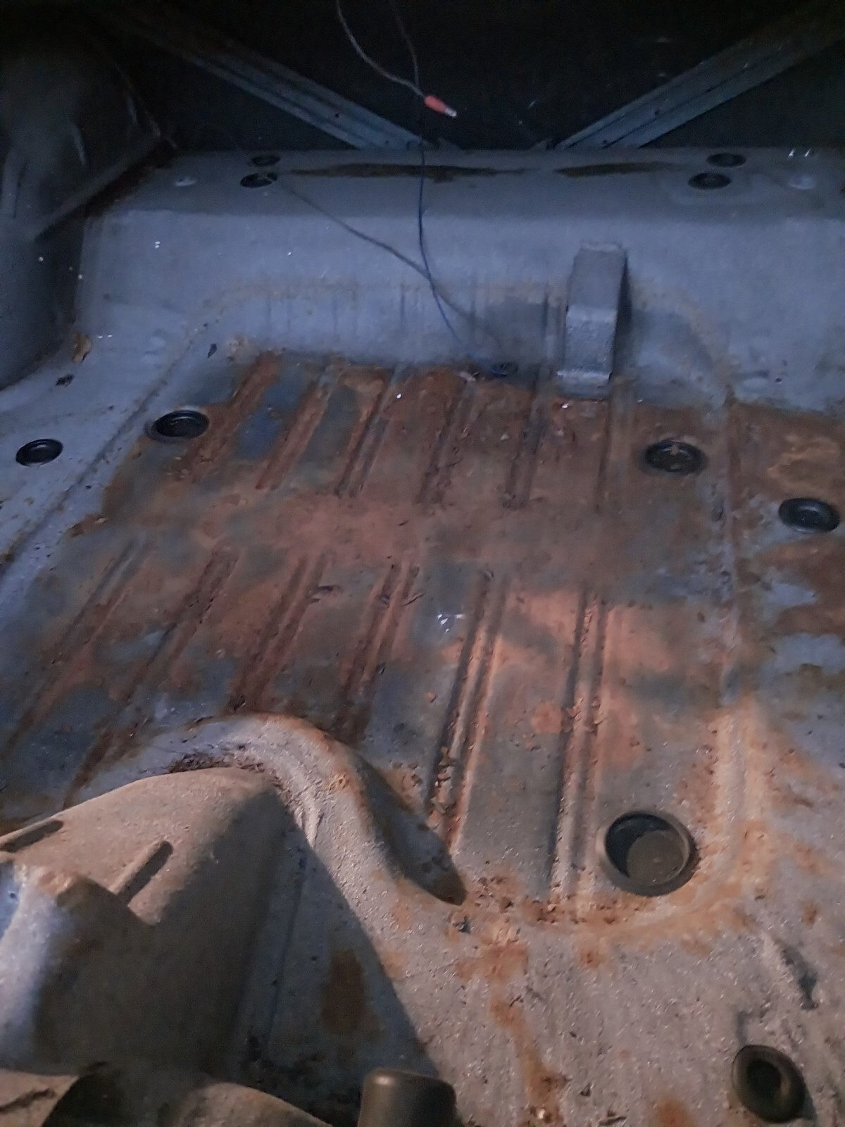 NO body filler, Car was sealed with “undercoating” as brand new new floor pans front, NO RUST on frame rails or floors.