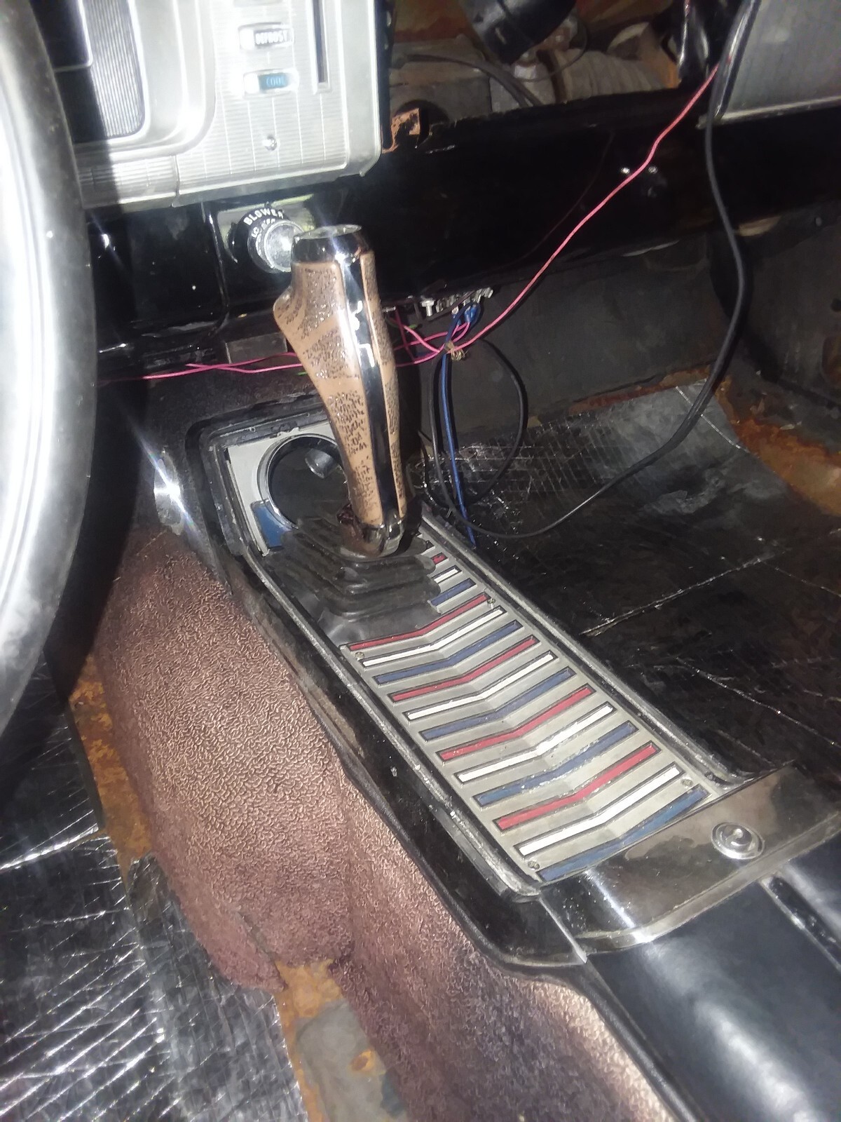 1968 New Process 4 speed in console (rare) Hurst Competition Shifter with new bushings on shift rods, with brand new pistol grip shift handle. Aluminum driveshaft loop. Brand new emergency brake cables. New speedometer gear to match 430 rear end gear set and cable adapter.