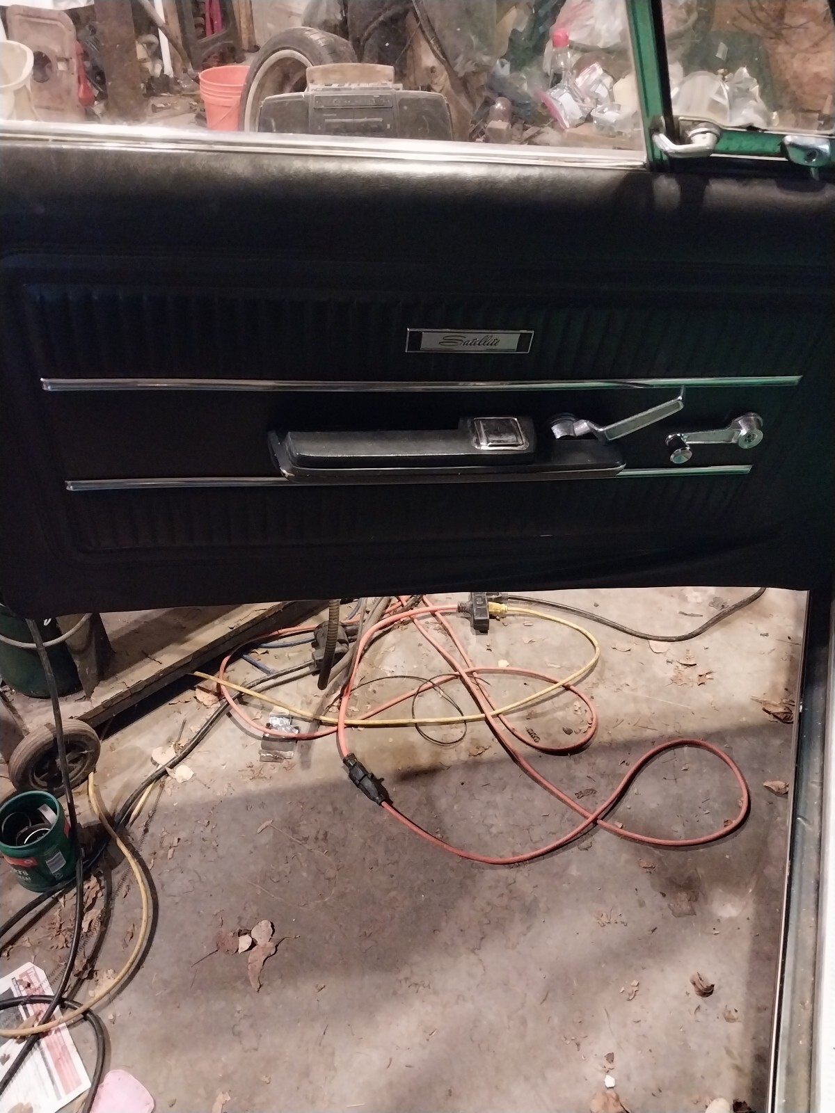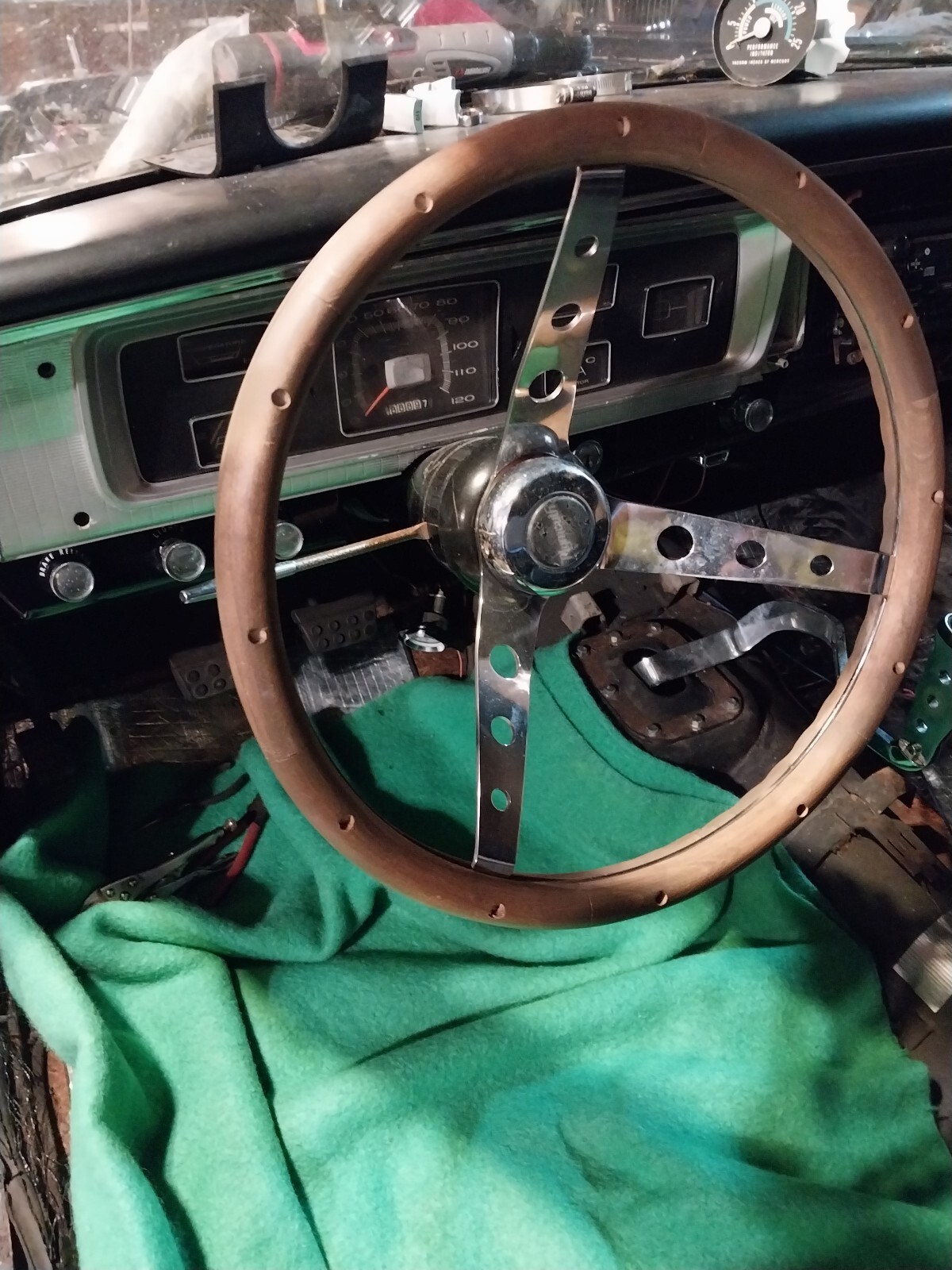 Bucket seats rebuilt, new headliner, new package tray and insulation, new rear seat to trunk divider, new Chrysler double din stereo with cd, and matching 500 watt speakers, front and rear. ( I have the original AM radio and bezel)new door panels, new rear panels. New carpet. Original dash board and instruments. 77k original miles. Original console rebuilt. Black interior, all interior lights work, added a factory dash reverse light, new door switches. New glove box and glove box console lock sets. New headlight switch, dimmer switch, ignition switch w/ key matching door locks. Clutch, and brake pedal pads are new as well as the gas pedal.