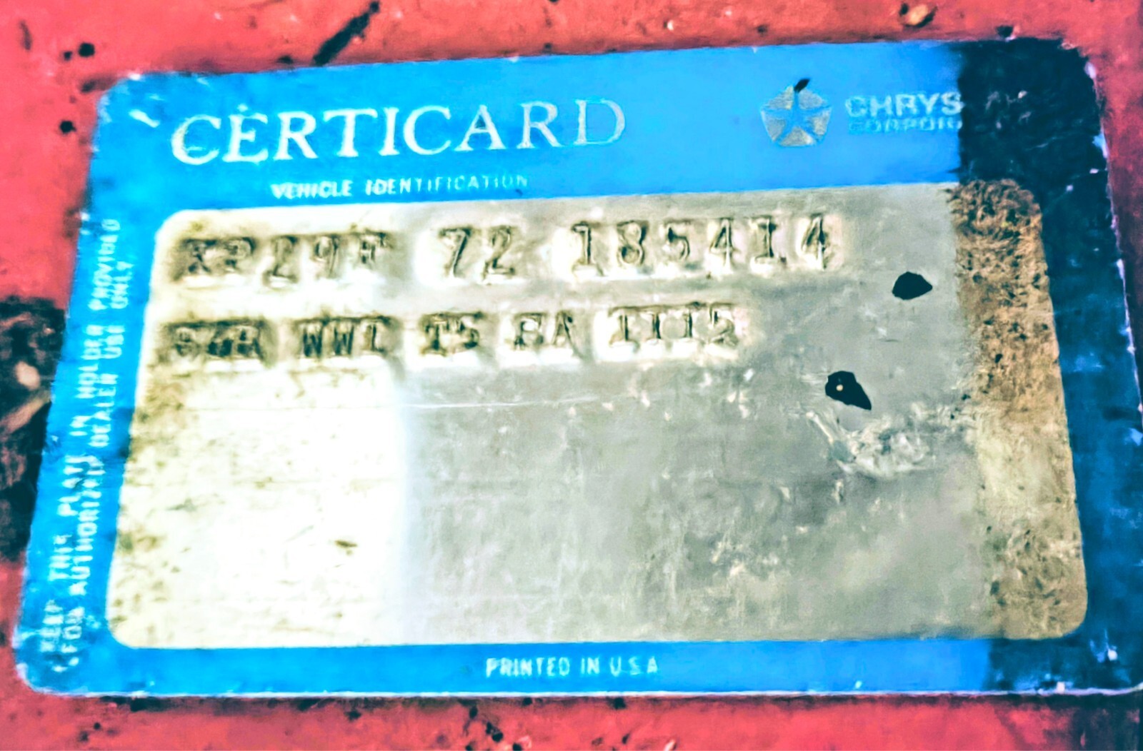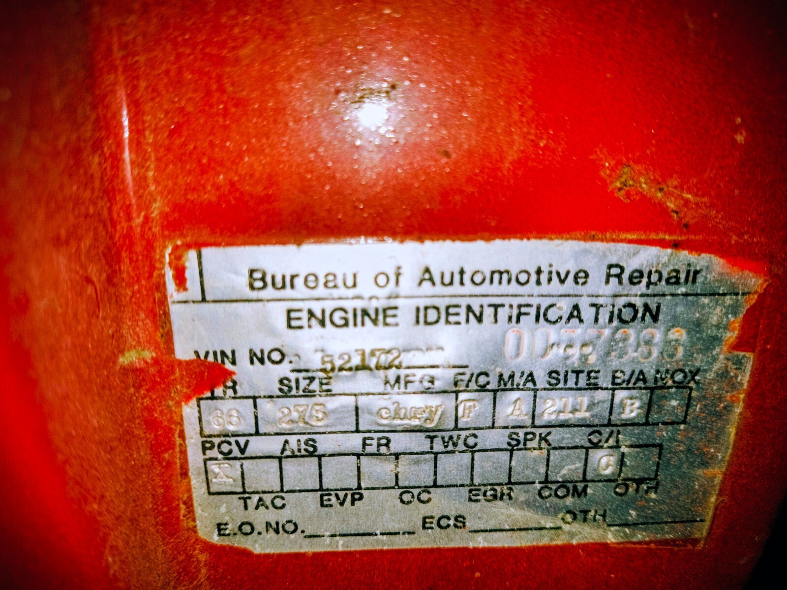 Still has build card in the envelope in the engine Bay and engine tag on door jamb