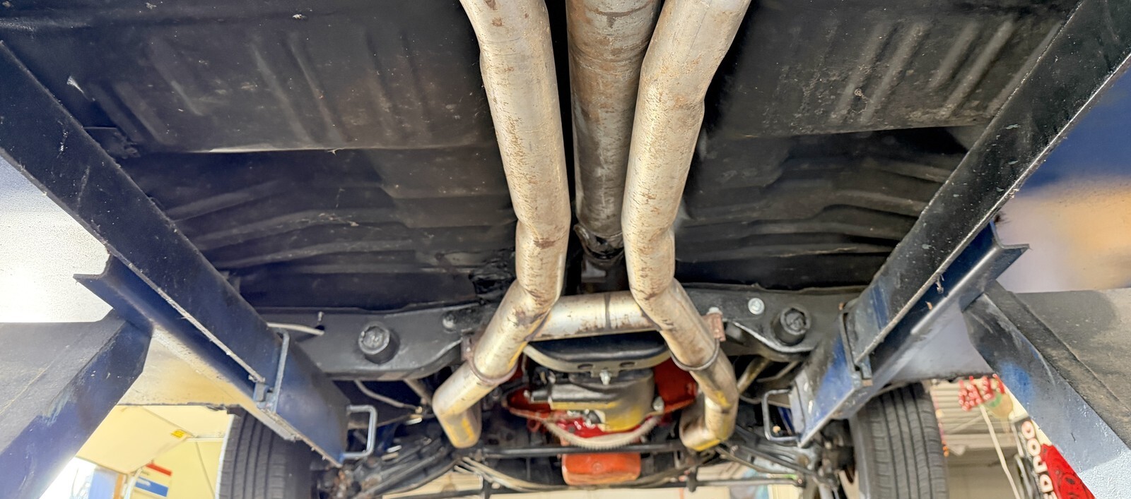 DUAL EXHAUST ALL WAY BACK WITH CORRECT CHROME TIPS…SOUNDS GREAT!!