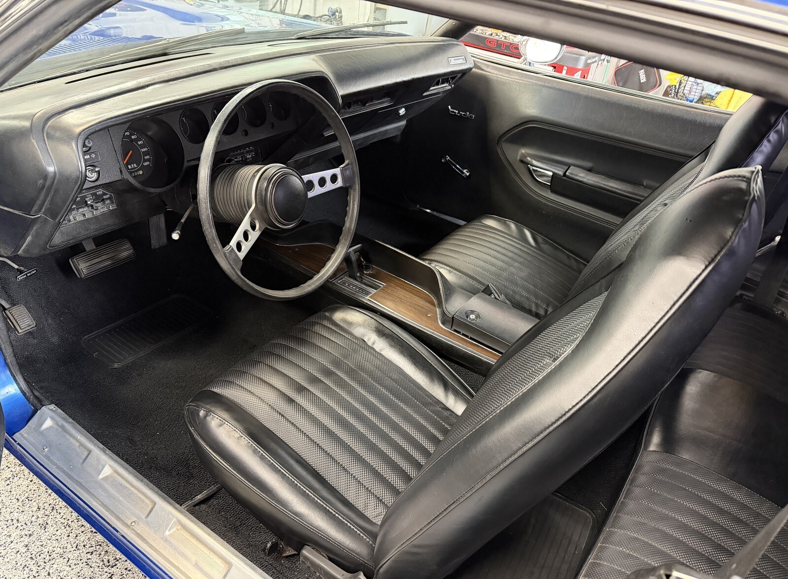 SHARP DESIRABLE 1974 CUDA REAL BS23 FACTORY CUDA HAS (NOM) STRONG 340 ENGINE AUTO PS PDB SUPER SOLID AND STRAIGHT LOOKS TO BE ORIGINAL METAL BEAUTIFUL B5 BRIGHT BLUE METALLIC PAINT AND LIKE NEW BLACK BUCKETS & CONSOLE INTERIOR
