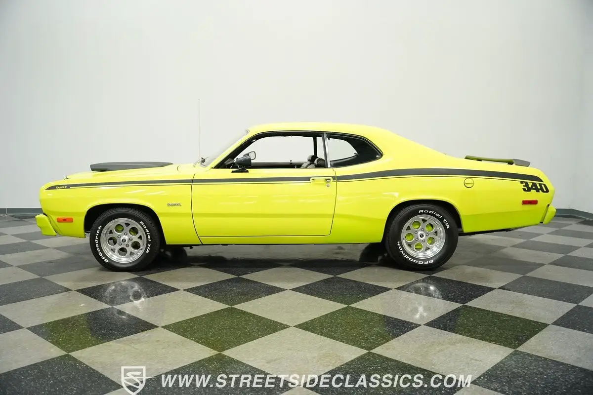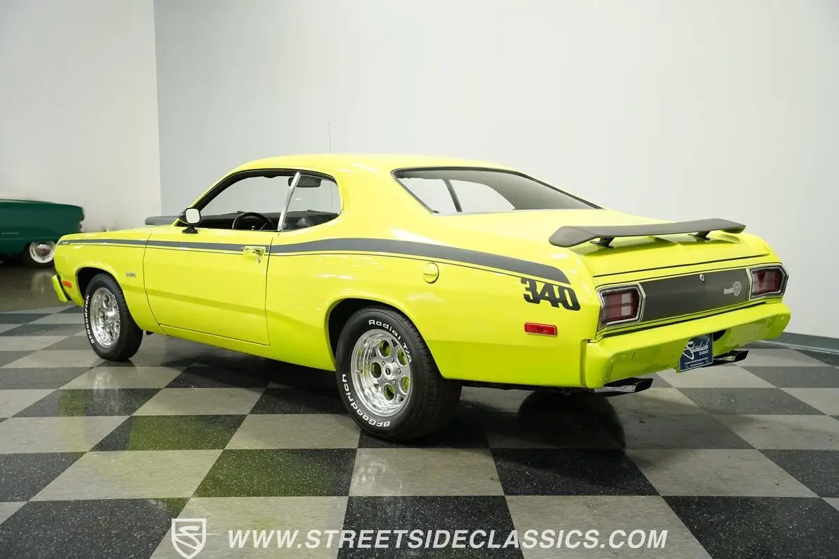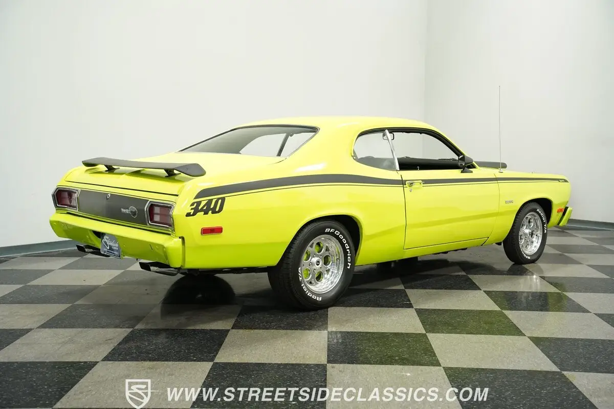 Experience the thrill and nostalgia of American muscle with this vibrant 1973 Plymouth Duster 340 Tribute. This car captures the essence of the early 70s with its bold color scheme and aggressive styling, offering a perfect blend of eye-catching aesthetics and raw power. It's more than just a car; it's a statement, a piece of history that turns heads and sparks conversations wherever it goes. Whether you're cruising the boulevard or showing at a classic car event, this Duster embodies a spirited lifestyle. Don't miss the chance to own this exciting 1973 Plymouth Duster 340 Tribute.