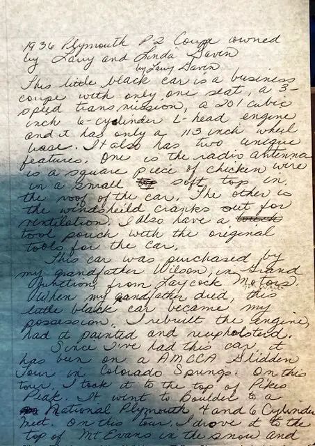 LETTER FROM THE ORIGINAL OWNERS' FAMILYThe letters illustrated in the pictures above was written by the original owners Grandson and was written, most likely, in the late 1980s. It references the original tool bag and tools. These were passed on to me upon purchase and they are also pictured above and will be included with the sale.ORIGINAL TOOL BAG INCLUDED---------------------------ABOUT"DOWNTOWN DESOTO"Jim Raysik has been selling cars and trucks in the small town of Clinton, Missouri for nearly 50 years. First, as a salesperson for Stayton Chevrolet, then as the owner of Jim Raysik Chrysler,Plymouth, Dodge and Jeep. In 1989 the GMC Franchise was added. In the middle 1990s, Jim and Becky had the opportunity to purchase the decades old Chrysler Building, one block South of historic Clinton Square District. This became "Downtown Desoto" and currently has a total of over 100 cars and trucks, some junk yard escapees, some national show winners. At 77 years of age, it's time to sell a few (Becky's words/not mine).