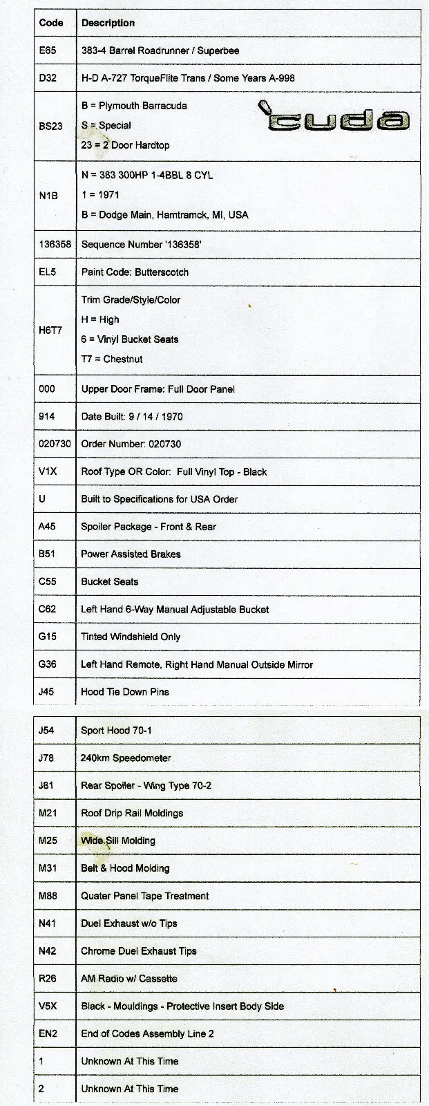 For sale 71 CUDA Its a 383 HP car. I was building a stroker for it and the shop closed down and I lost that motor. I do have the Numbers matching block,heads,and crank. Thats it as far as the original motor.