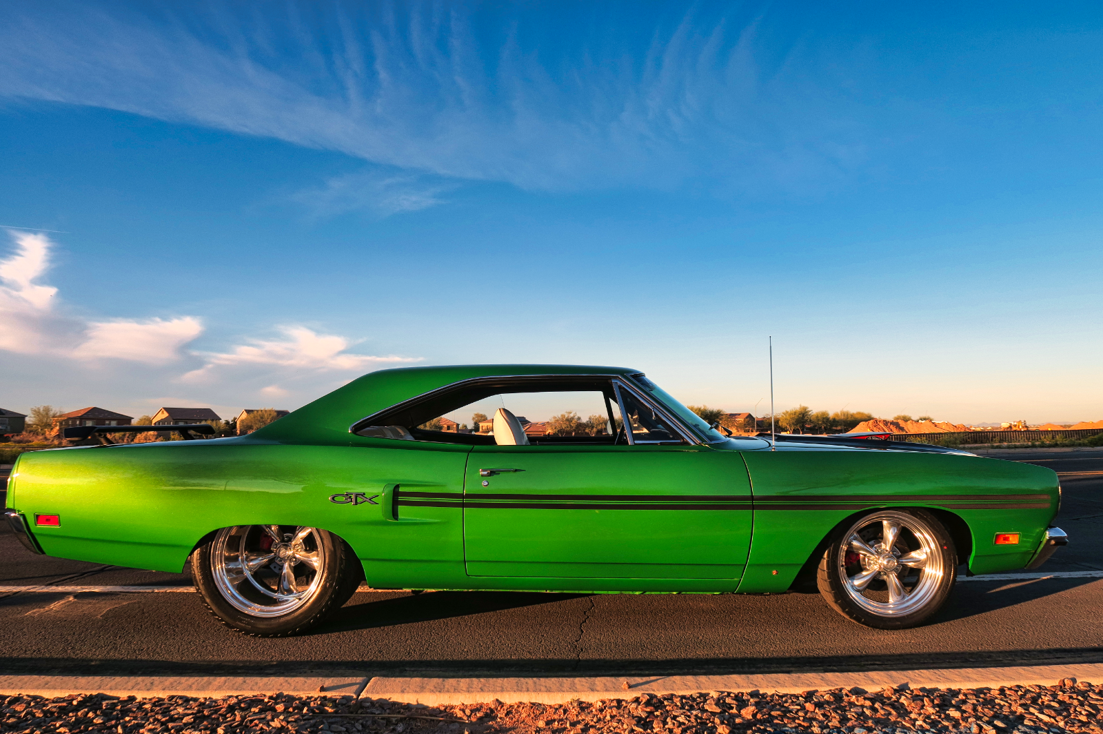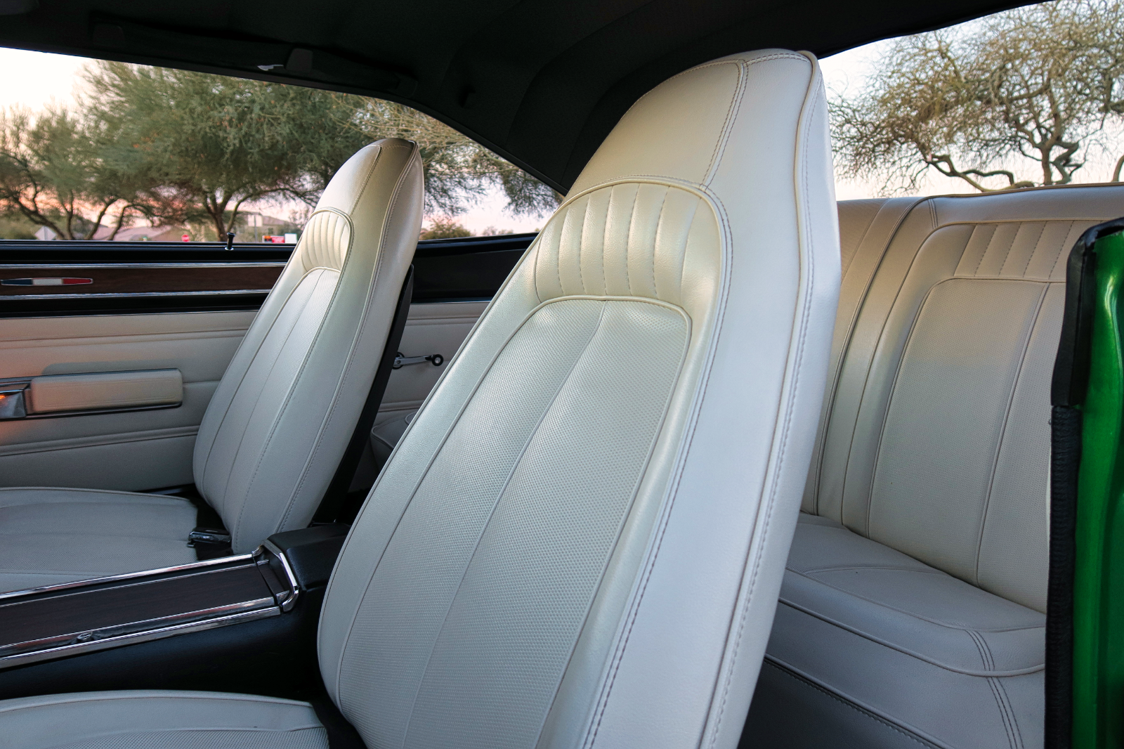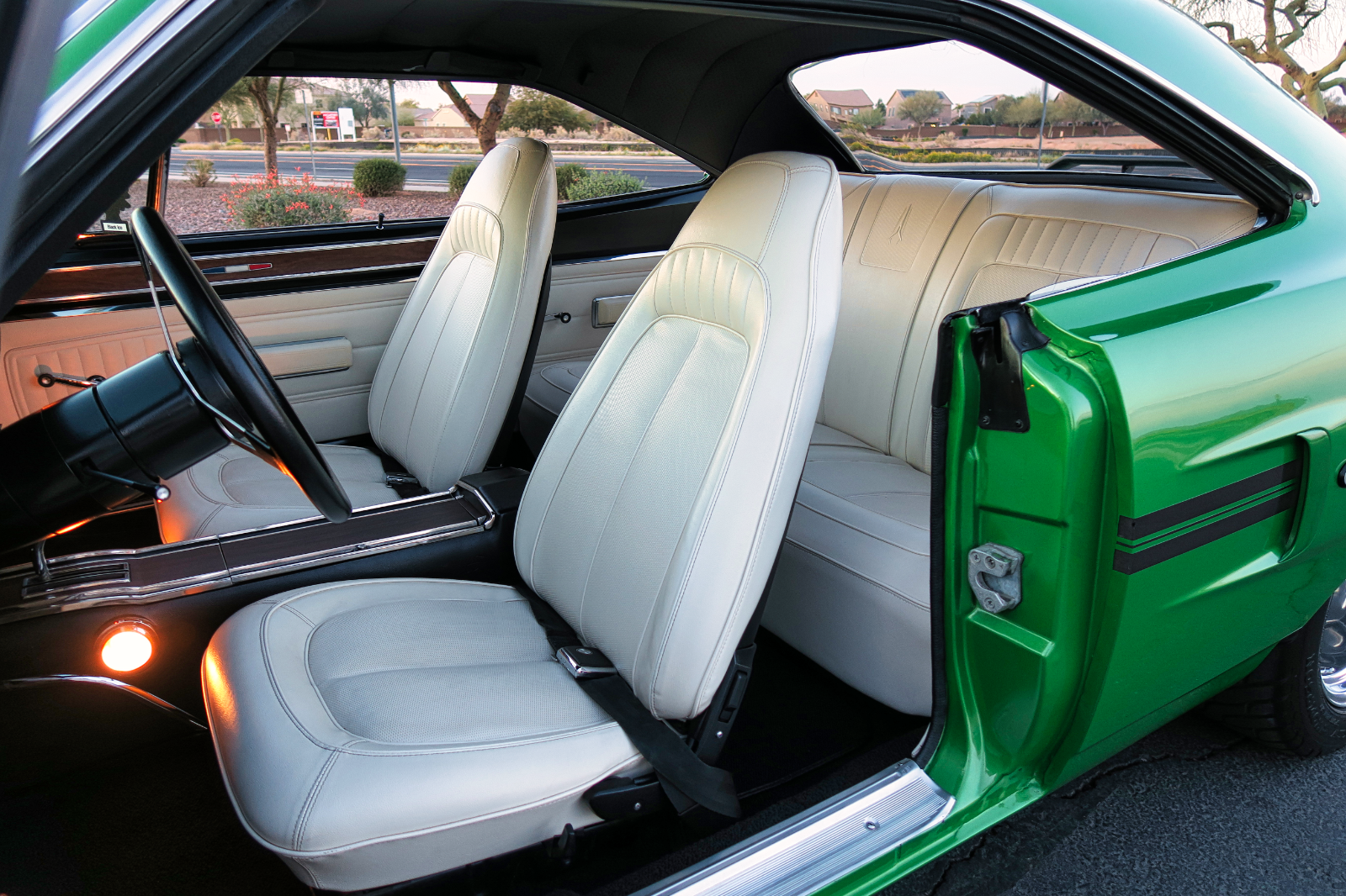The wheels are an eye-catching feature, with 18-inch fronts and 20-inch rears wrapped in Mickey Thompson tires, all mounted on American Racing wheels. The paint job, which looks incredible in the sunlight, is a true standout, ensuring this car gets attention wherever it goes.