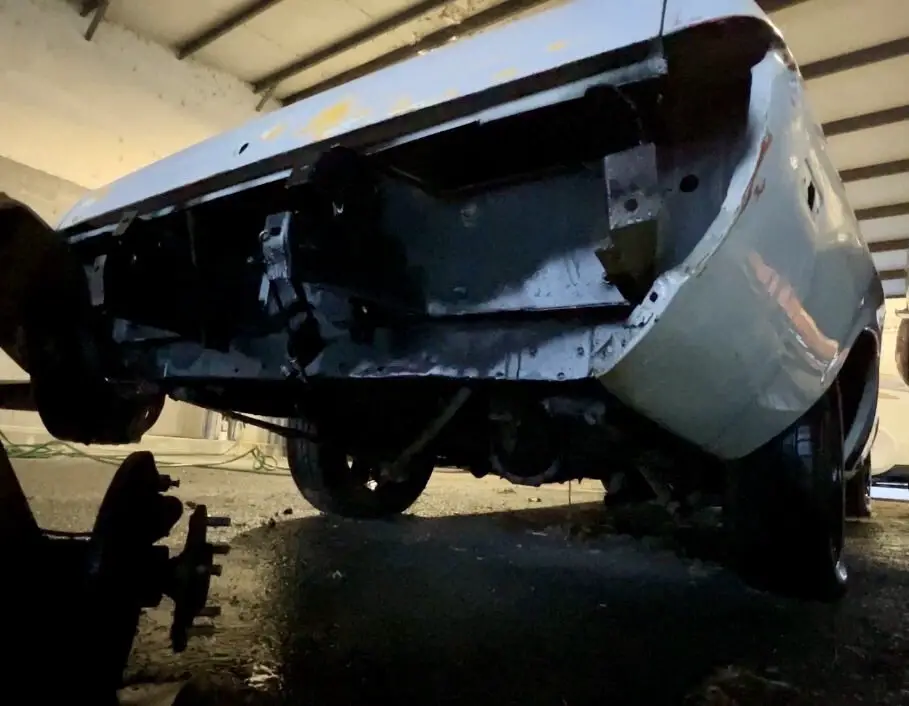 Original tank removed due to rust — typical for B-body Mopars of this age.