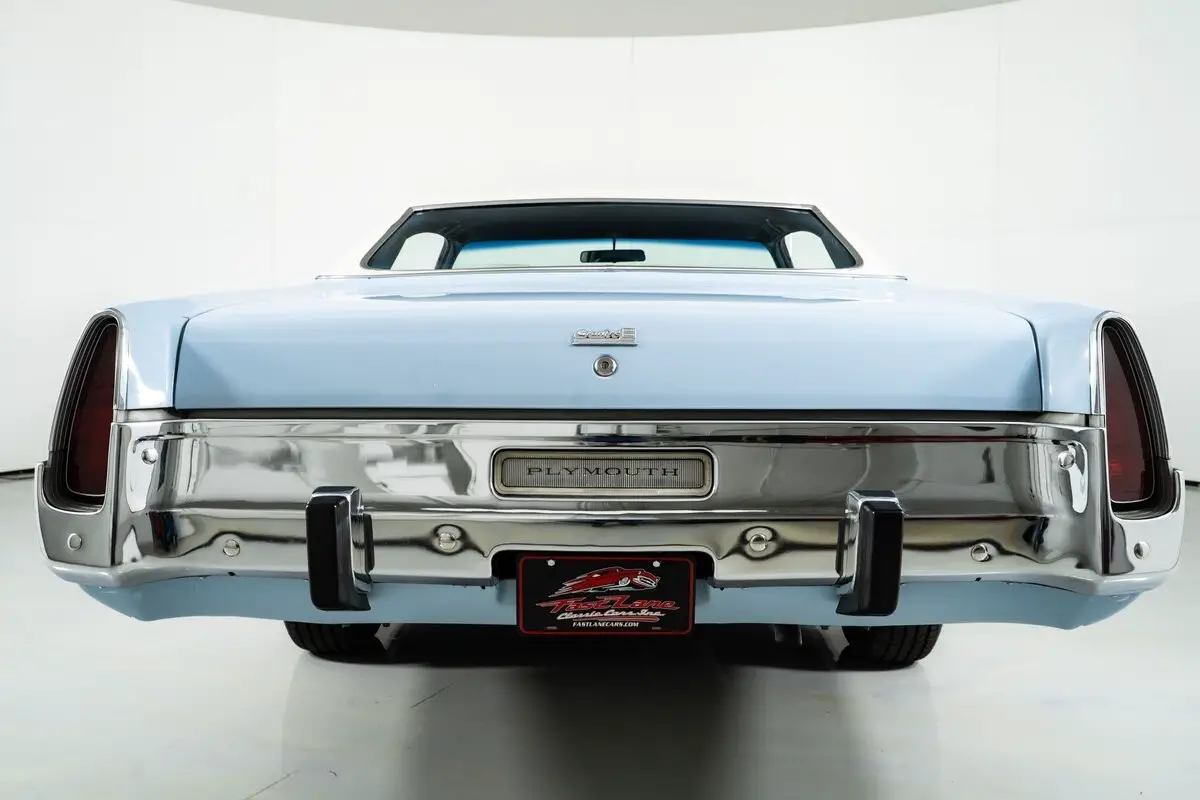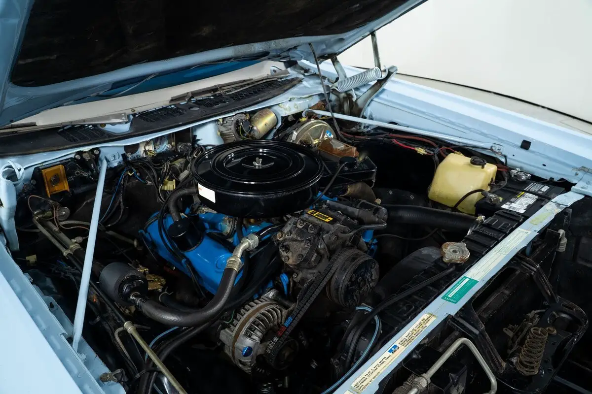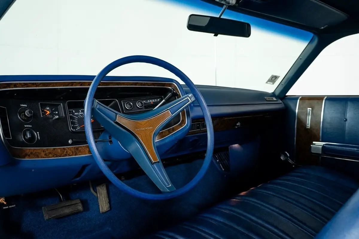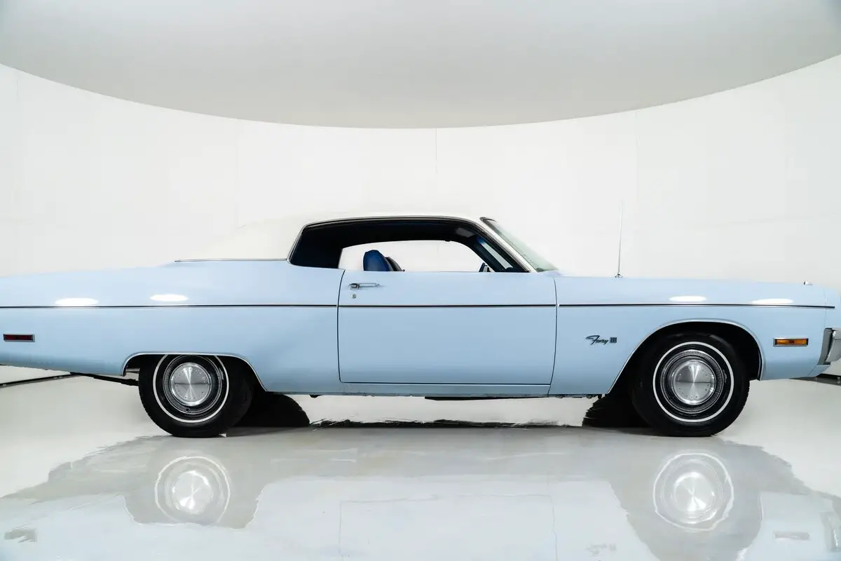 Finished in Blue Sky with a white vinyl top, the exterior still carries the elegant presence that defined the Fury