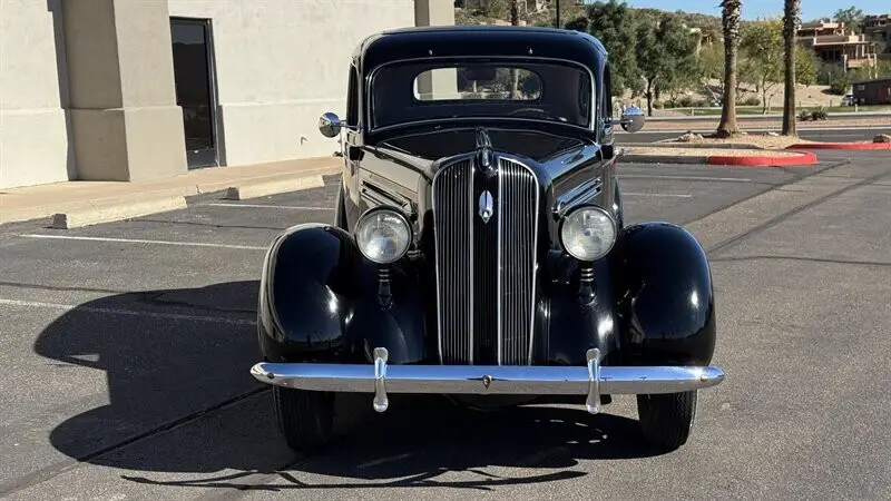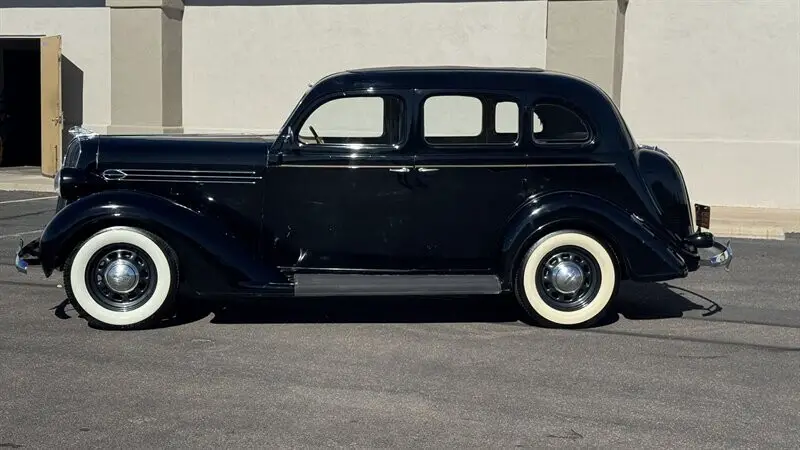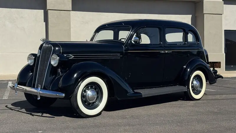 The 1936 Plymouth P2 Sedan stands as a charming monument to pre-war American resilience and Art Deco design. Produced during a period when the automobile industry was finding its footing after the depths of the Depression, the P2 offered a level of style and engineering that punched well above its weight class. With its swept-back radiator grille, bullet-shaped headlamps, and curvaceous fender lines, it captures the aesthetic optimism of the mid-1930s. It was a machine built for the American family--sturdy, reliable, and possessed of a dignified presence that has only improved with the passage of time. The cocktail only gets more potent when you lift the butterfly hood to reveal the mechanical simplicity that made Plymouth a household name. Power is provided by the numbers-matching 201-cubic-inch L-head inline-six engine. Known for its durability and smooth operation, this powerplant has recently benefited from a comprehensive rebuild, ensuring it is ready for the next chapter of its life. It sends power to the rear wheels via a floor-mounted three-speed manual transmission, offering a tactile and engaging driving experience that transports the operator directly back to a bygone era of motoring. The example offered here is a four-door Touring Sedan finished in a classic Black enamel. The exterior presentation is described as a "sympathetic" preservation; while the paint retains a deep gloss and the chrome brightwork is in good order, it proudly displays the fine patina of history, rated as an 8 out of 10. This honest character is further evidenced by the running board rubber, which appears original to the car and shows the cracking expected of unrestored vintage materials. In stark contrast, the interior has been completely redone in a high-quality tan simulated mohair. Rated at a 9.5 out of 10, the cabin presents virtually as new, offering passengers a comfortable and immaculate vantage point from which to watch the world go by. However, the true value of this Plymouth lies not in its mechanics or its mohair, but in its extraordinary provenance. This vehicle has been owned by the same family since it rolled off the assembly line in 1936, having been originally purchased by the current owner's wife's great-grandfather. It is an unbroken chain of custody rarely seen in the collector car world. With just 97,000 original miles and accompanied by a file of receipts and vintage ownership documents, this P2 is a fully sorted runner that starts immediately and drives well. Whether serving as a distinguished carriage for weddings or a conversation piece at local car shows, it offers a tangible connection to family history that money simply cannot buy.