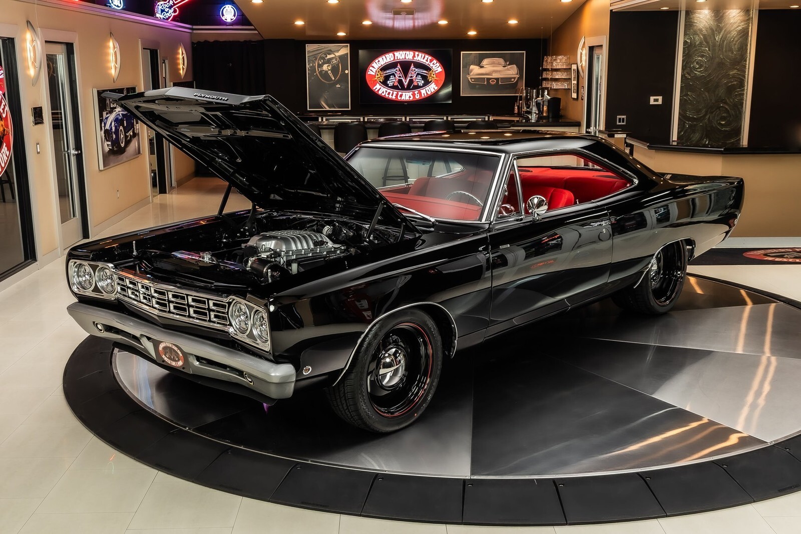 Check out this beautiful 1968 Plymouth Roadrunner! This Roadrunner has undergone a complete & meticulous frame-off restoration and received many tasteful upgrades along the way! This Roadrunner has been finished in Glossy Black Exterior Paint and features US Steel Wheels giving it a period correct Mopar Look! Under the hood sits a Supercharged Hellcat Redeye 6.2l V8 Engine making 797hp! Power is sent to the Rear Wheels through a Tremec 5 Speed Manual Transmission, & Dana 60 Sure Grip Rear End with a 3.73:1 Gear Ratio. Additional Features Include, Aftermarket Disc Brakes, QA1 Front Suspension, Coilovers, Power Steering, New Hardware, New Brake Lines, New Upgraded Suspension, New Fuel Lines and a New Gas Tank!