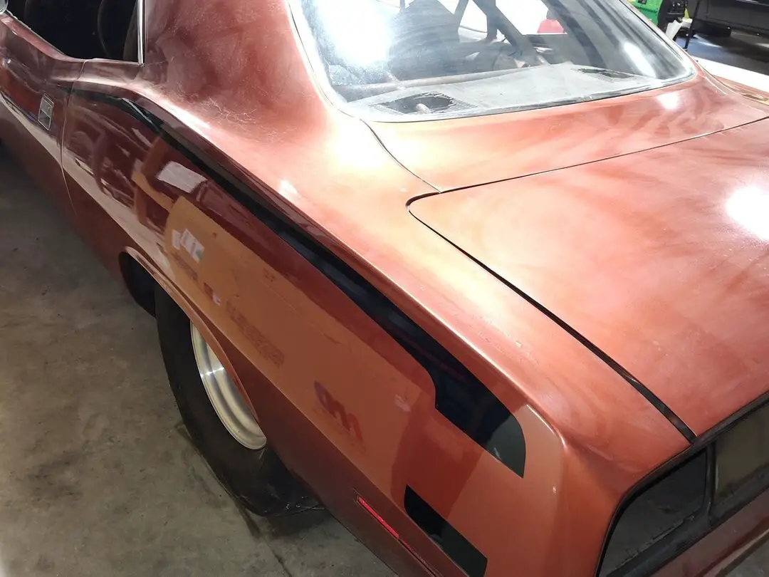 Texas title in my name. 1970 barracuda rolling project. was converting to pro street. dana 60 no guts, exhaust, has a motor plate set up for BBC, comes with stock power steering front suspension, aluminum radiator, spal fans, car was professionally back halved by mean street performance, chromoly tube, Tig welded. NHRA cert to 8.50, needs rear floor finished, and transmission hump done. has rust hole in driver's door, comes with new amd skins, I purchased amd quarter, fender patches if needed. comes with amd upper, and lower radiator supports. no rear coil overs, and no fuel tank, no brake master. no rear brakes, stock front brakes on both manual steer, and power steering front suspensions, Moser axles. money needs to clear before car is released. photos available upon request. contact me with questions, car is for sale locally I reserve the right to end auction early