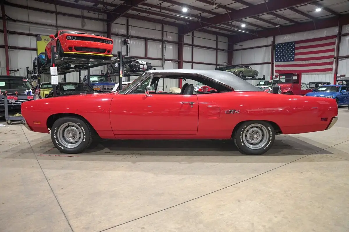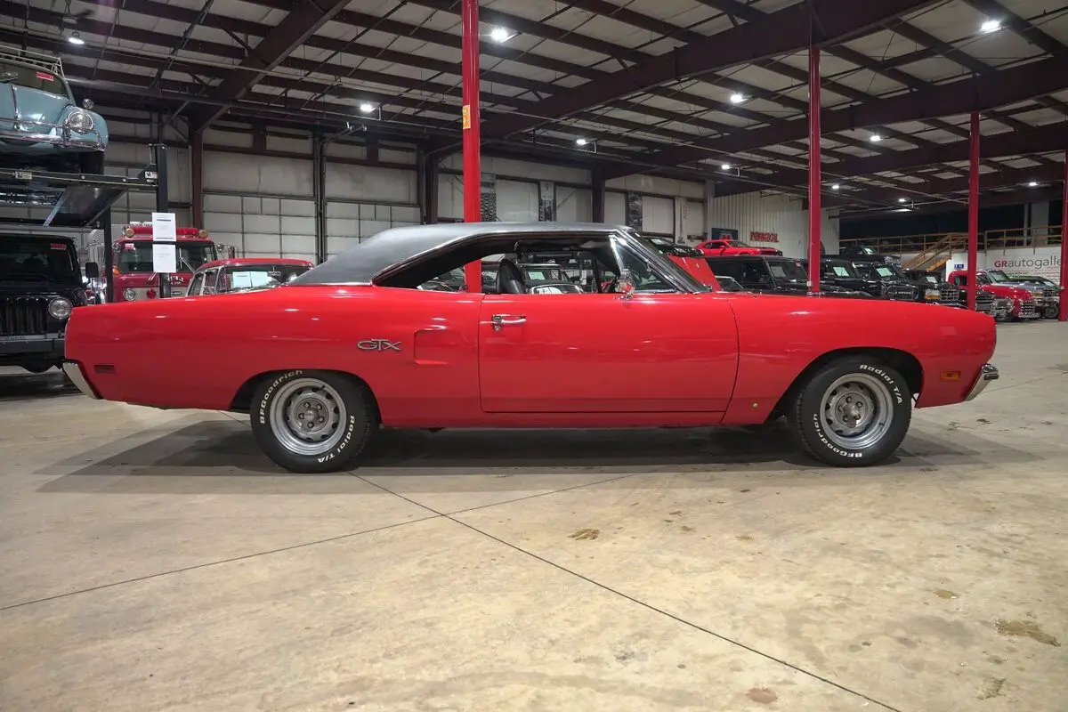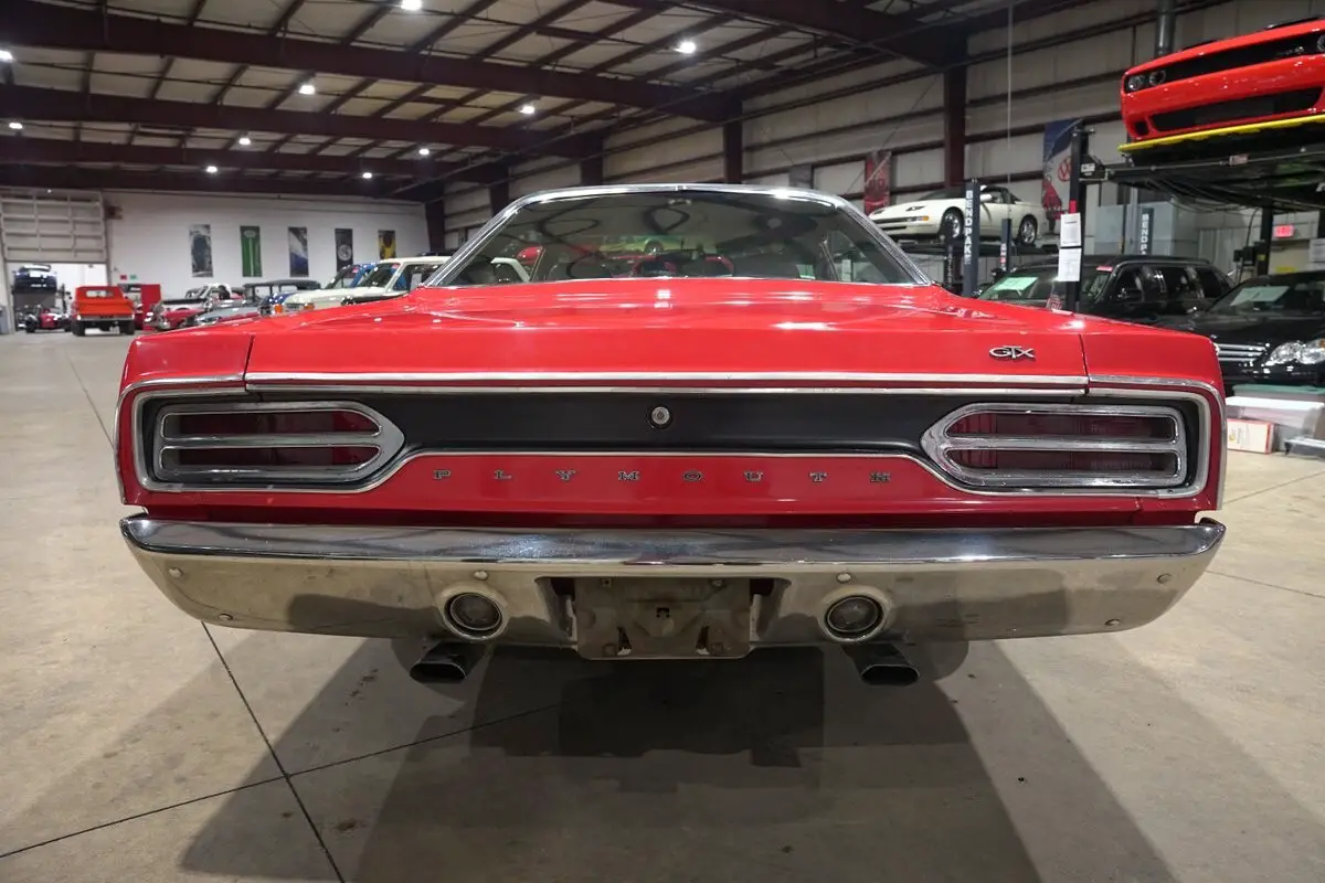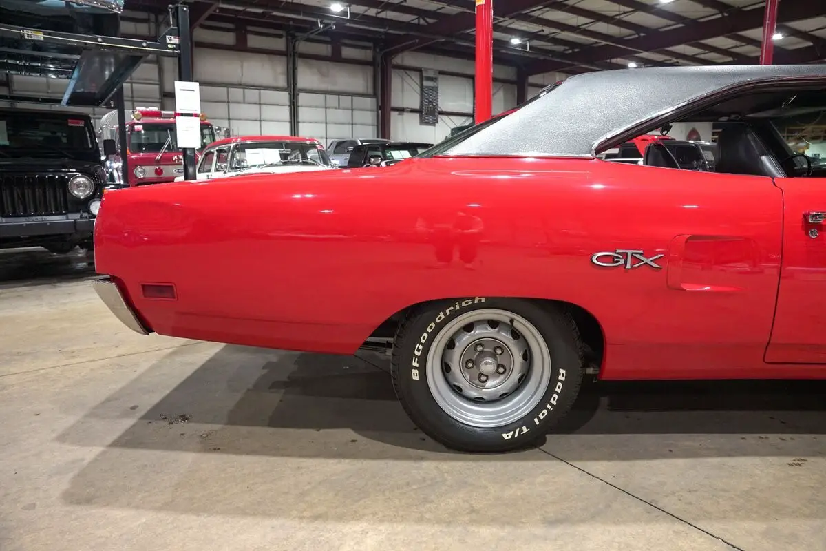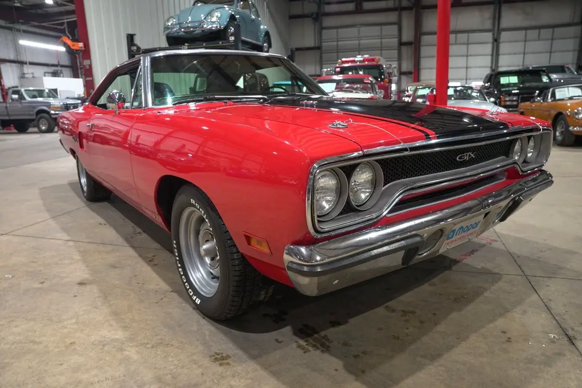 GR Auto Gallery is excited to present this 1970 Plymouth GTX finished in Rallye Red with a bold black stripe over a Black leather interior. Known as "the gentleman's muscle car," the GTX took the aggressive performance of the Road Runner and paired it with a more refined and upscale presentation. This example carries that identity perfectly, with its deep red paint, clean body lines, and subtle but unmistakable muscle car attitude. Details like the headlight covers and Mopar Performance front plate add to its presence, while the overall look stays true to its factory inspired roots.