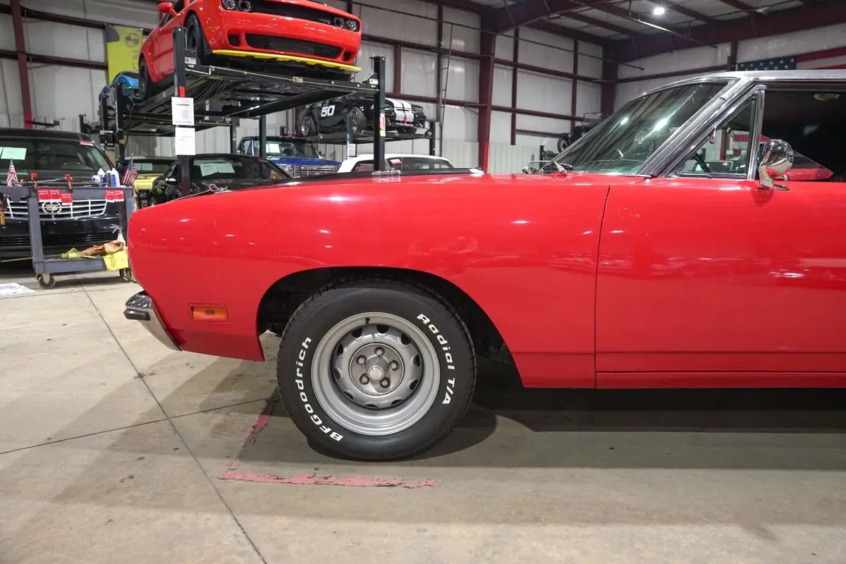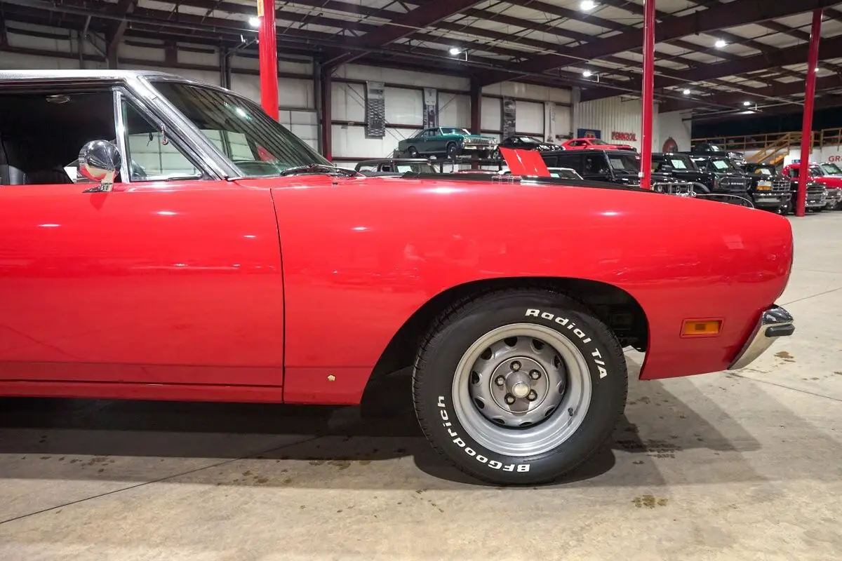 Inside, the cabin blends performance and comfort with Black leather seating, wood panel dash accents, and matching wood trim on the doors. The interior maintains that classic muscle car feel while offering a slightly more upscale environment compared to its Road Runner sibling. GTX branded carpet mats add a nice finishing touch, and the overall layout keeps the focus on the driver with a clean and purposeful design.