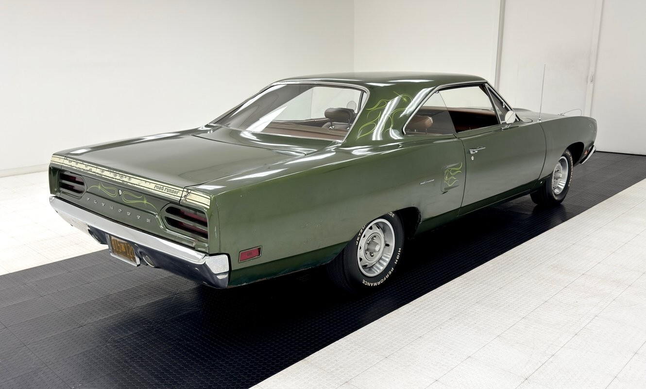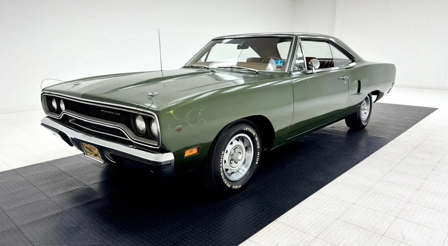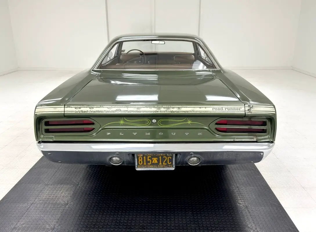 For consignment, a 1970 Plymouth Road Runner hardtop with a title verified 21,864 actual miles. It has a date correct engine, a numbers matching transmission, an inspection sticker from the Bicentennial year, and a well documented and heartfelt history.