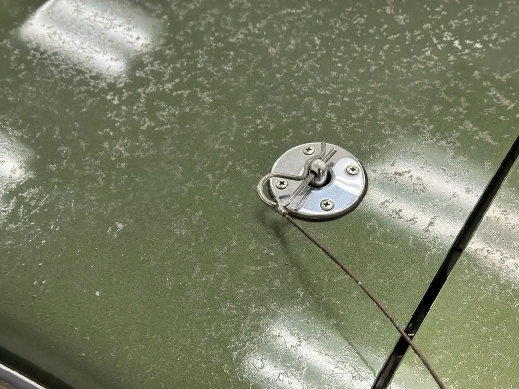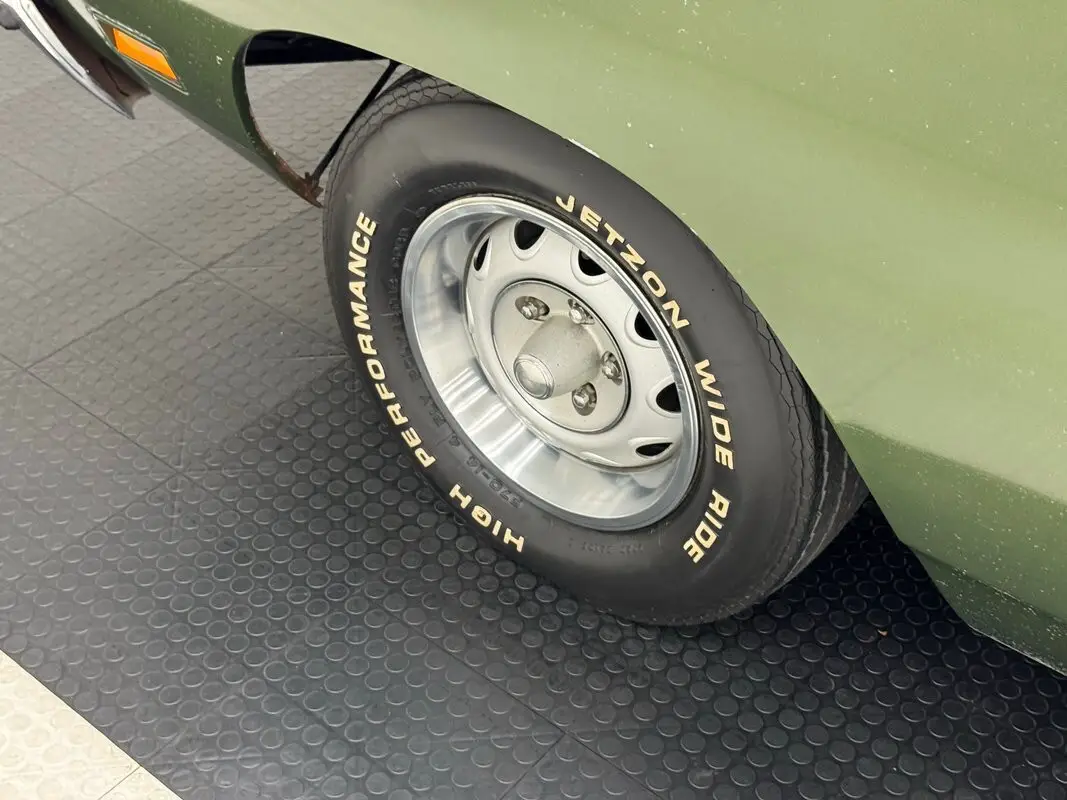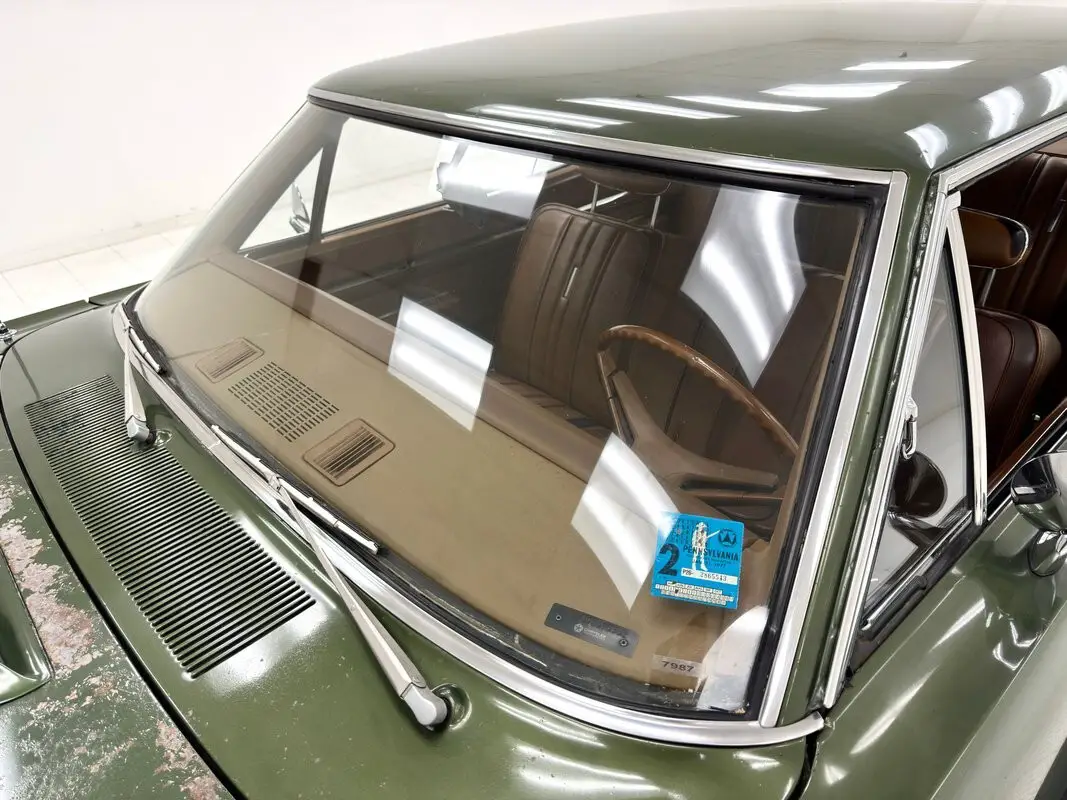 The exterior is full of patina, but the panels are straight with areas of some deep surface rust but no swiss cheese! Here we have Ivy Green Metallic with some faded Road Runner stripes in white and lime green pinstripe flame accenting that was documented as being applied in 1971 for the princely sum of five dollars. It doesn't take long to imagine this car with a repaint, looking sharp, and leading with that menacing front fascia, a three dimensional expression muscle car heightened by the stylish tail lights. A power bulge reveals engine displacement and turn signal indicators, all close to the louvered cowl and the hood itself is dappled with surface rust deposits not quite into the metal. Other places where surface rust is present includes the rear window trim, rear panel, along the rocker panels, and over wheel openings.