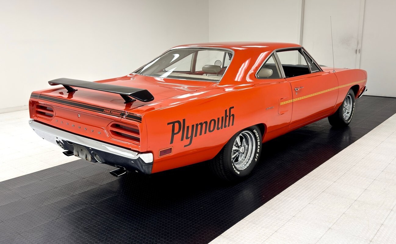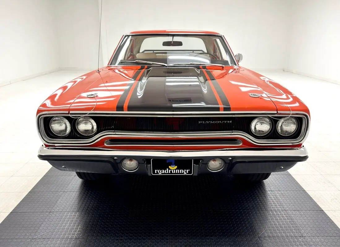 For consignment, a 1970 Plymouth Road Runner hardtop showing 68,755 miles, but the true miles are unknown. This one is covered in TorRed and the big B-body defines the progression of muscle cars into the 70's. It has a numbers matching transmission.