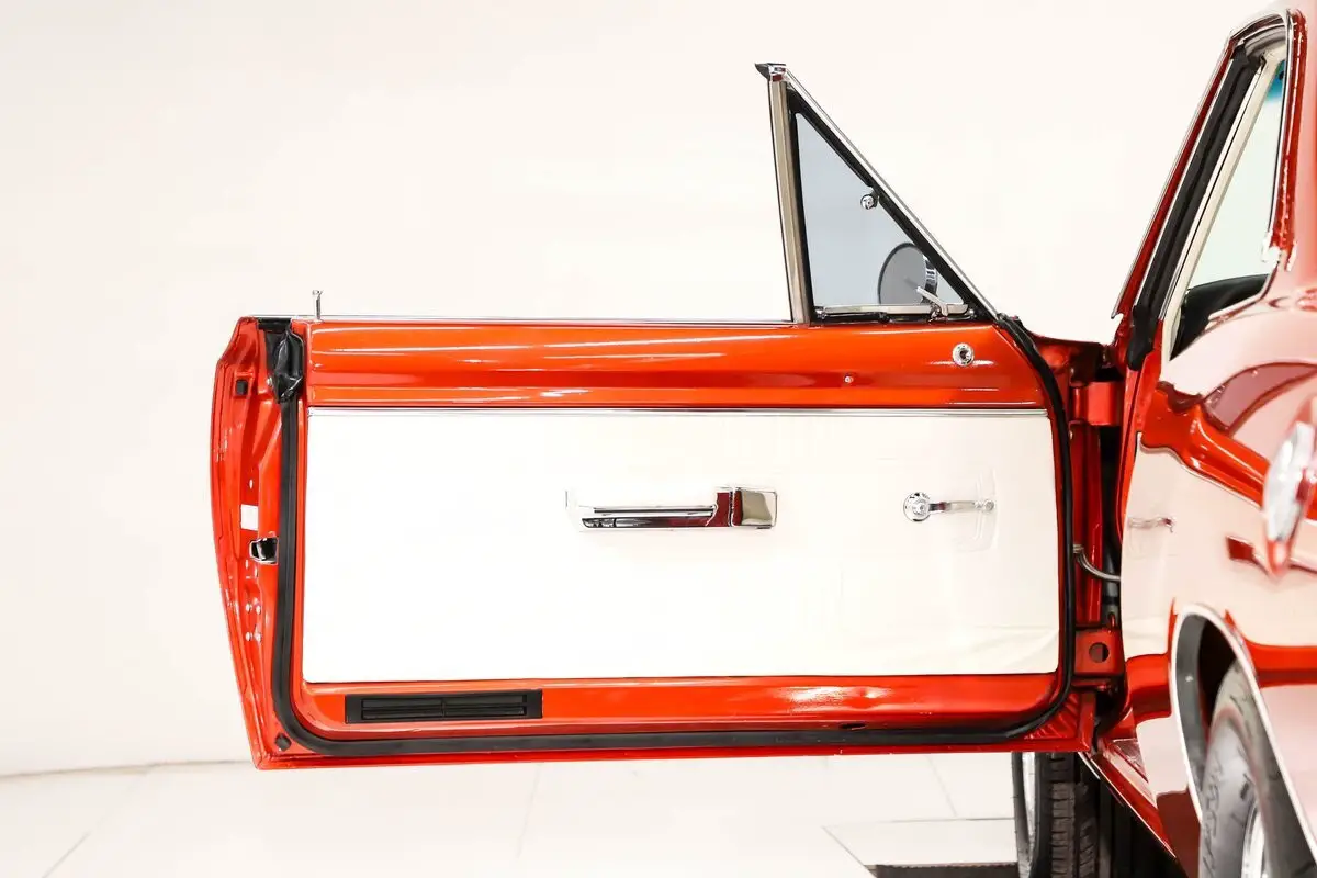 UNDERSIDE: It was flipped on a rotisserie and restored just as pretty underneath! All clean metal floors painted body color. Frame rails were welded in, it looks like they were put there at the factory. The front suspension and steering were completely rebuilt. In back the springs, bushings and shocks were replaced. Tubular traction bars were added. A great sounding custom dual exhaust has an x-pipe and the factory style chrome tips. The brakes were redone, lines were replaced, e-brake assembly is hooked up and it was upgraded with disc in the front. Looking up at the motor it has an extra capacity oil pan and a high torque starter. It's hooked up to a performance built 727 Torqueflite automatic trans with manual valve body, shift kit and external oil cooler. In back is an 8 3/4 rear end with 3.55 Sure Grip gears.
