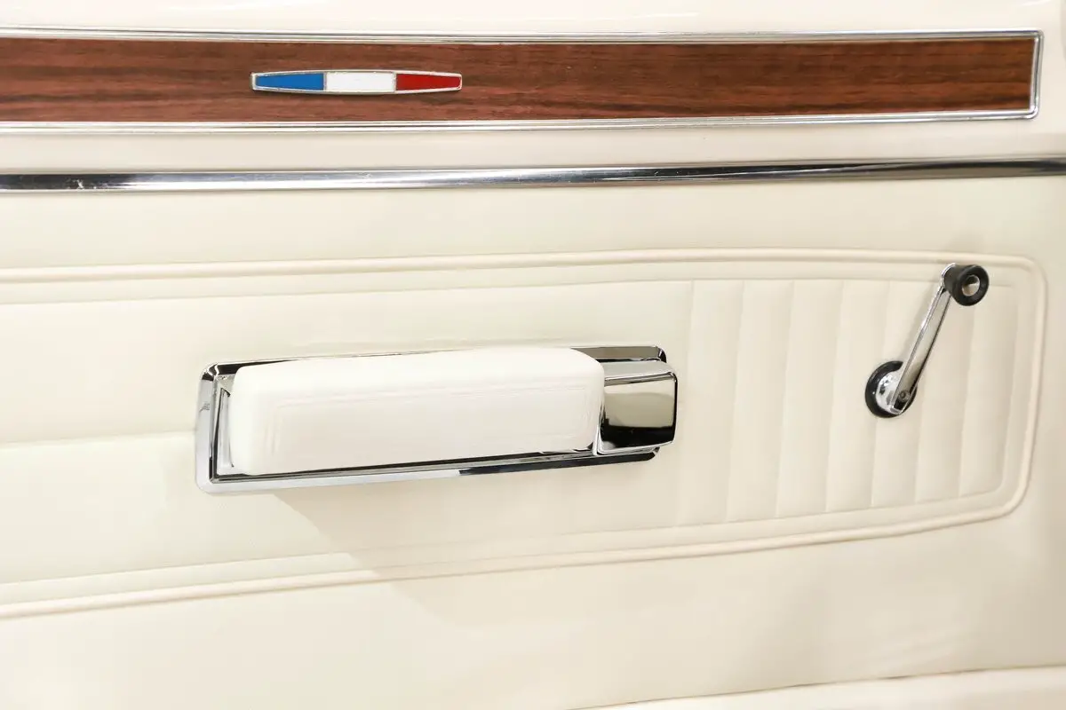 INTERIOR: The door jambs are painted up real nice and the weatherstrips were replaced. The door panels, armrests and handles all look like new. Very clean dash with the wood grain and original gauges. The dash pad appears to be replaced. The climate control and radio are both in great condition. Nice glove box with a working light. And the factory vents are also in nice shape. The kick panels and carpeting were both replaced. The center console is a great original and has functional lights too. It also has the coolest shifter ever made, the Hurst long throw pistol grip, and that is original from the factory. The front bucket seats were both restuffed and recovered and are very comfortable. The rear seat was also recovered and has seatbelts too. The headliner is nice and tight with no wrinkles and has a working dome light. The sun visors and rear view mirror look new. A very nice original steering wheel nicely completes the interior.
