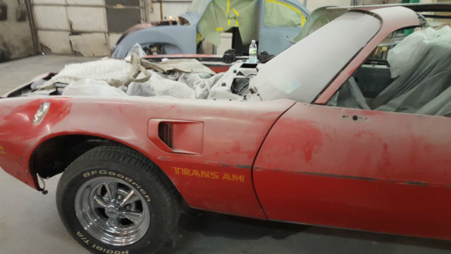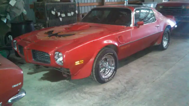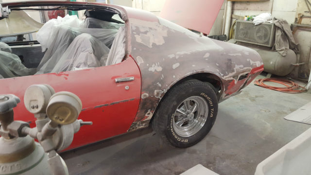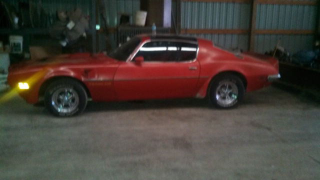 1970 PONTIAC FIREBIRD TRANS AM CLONED TO A 73 T/A RED EXTERIOR.NEW BLACK INTERIOR,T-TOP ADDED.400 ENGINE/ 350 TRANSMISSION WERE REBUILT. IT HAS 200 MILES ON ENGINE. IT WAS A 4-SPEED CAR ORIGINALLY..STILL HAVE THE PEDALS FOR 4-SPEED.NEW TIRE'S ...OLD CRAGAR WHEELS SOME PITTING. NEW EXHAUST FRONT TO REAR 700.00 COST JUST FOR THE EXHAUST. TOO MUCH TO LIST..I PUT IT IN THE BODY SHOP A YEAR AGO AND IT WAS HARDLY WORKED ON, SO I AM GOING TO SELL IT..