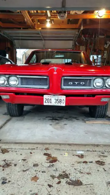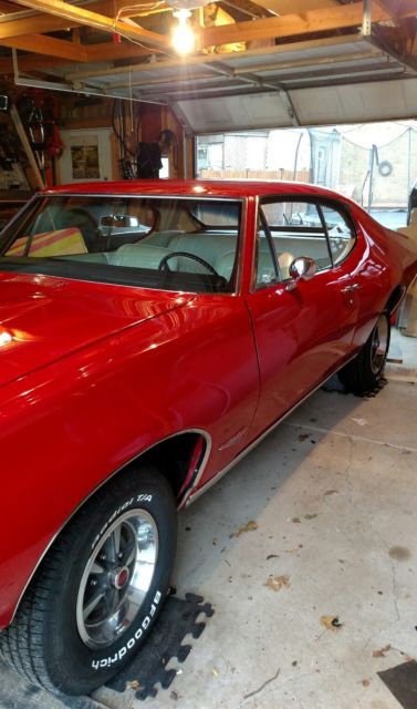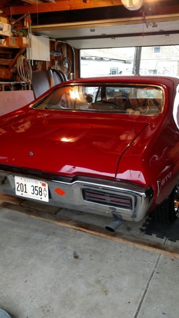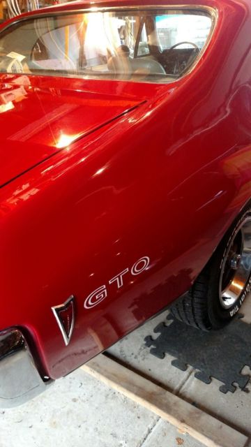 1968 GTO Rebuilt 400 H.O in 9/2012, 3 speed manual trans with all new heavy duty clutch, linkage, and Hurst shifter done on 7/2016, 3:55 posi rear end, all drum power brakes, power steering. Runs and drives very good. Rally gauges. Brake lights, head lights, turn signals, dome light and heaterwork. The gas gauge, horn, radio, windshield wipersdo not work. Body has excellentstraight panels, gaps are very good, Driver door needs some minor alignment.Original newer paintedsolar red exteriorpaint is beautiful and has a smooth shine. Has a few almost unnoticeablesmall paintnicks here and there. Hasreplaced quarter panels. Trim and chromeis very good to better then fair condition. Floor pans have patch panels and solid. Trunk has a quarter size hole but very solid elsewhere. Glass is verygood.Tires are like new, 15'' rally 11 rims in the rear and 14'' in the front. Complete new beautiful white parchmentinterior, Headliner, sail panels, alldoor and rearpanels, all seats,carpet,dash pad and glove box. All new rubber seals on doors,window channeland trunk. New battery, hoses, belt, plugs and wires. Rally11 rim and tirespare with original restoredjack in trunk. Comes withPHS documentation andall receipts for work done on engine, trans, and all new interior parts. This is an original400H.OThree speed GTO. Inspection of car can be arranged at any time.
