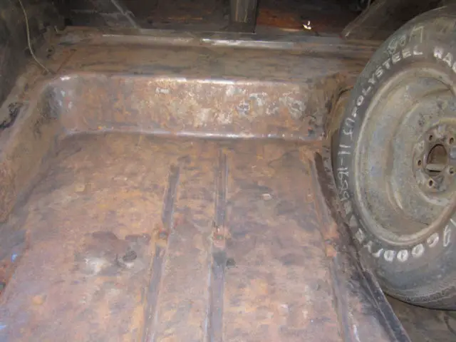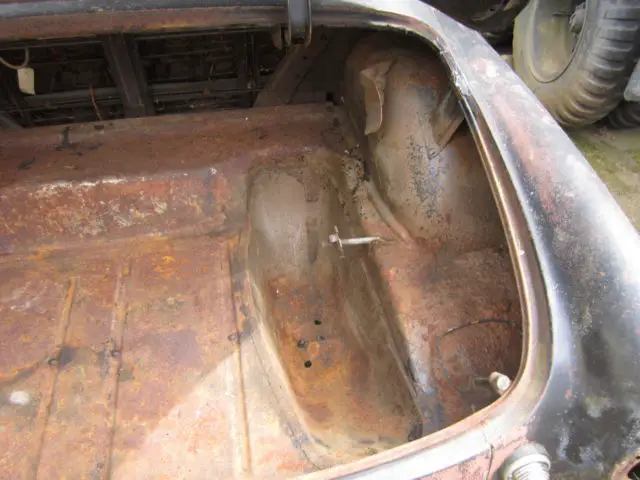 The front end is very solid with only surface rust that includes both fenders and hood. The trunk only has surface rust with some pitting but very solid and not flimsy. The trunk itself has no rust and the lip around the trunk has no rust through and is solid. I have not looked under the car but the front floor boards need replacing and I would assume the back also. Rust through on the rear doors bottom and some in front of the drivers side rear wheel well.