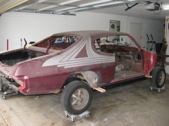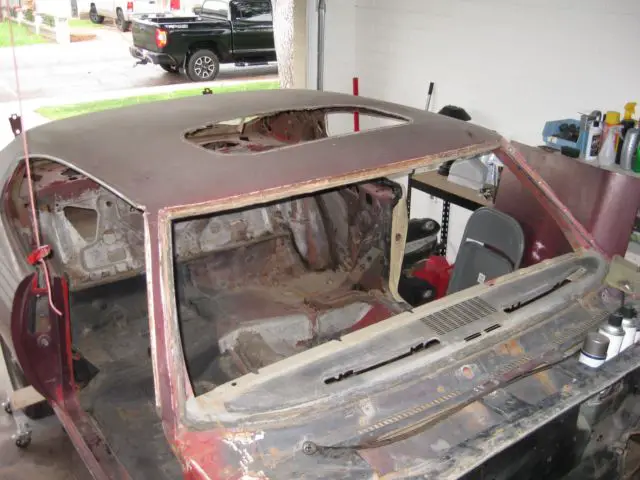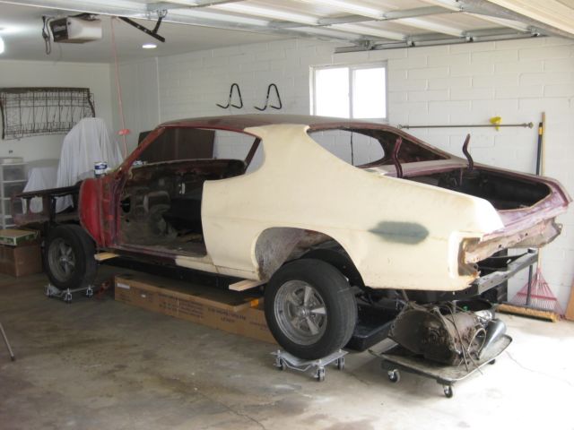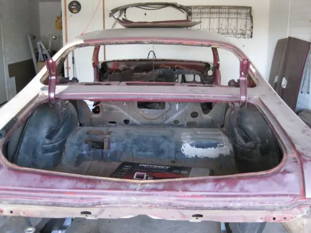It currently has a TH400 (71-PA) and a disassembled Pontiac 350 (1970 block, was running whendissasembled. It's a very solid car and pretty rust free but it does need some body work. Small rust holes are in the toe board on the driver's driver side and the passenger side quarter has a little bit of rust in the lip. Has had a new driver side quarter panel installed at some point in the past and has a few dings that would need to be pulled otherwise, solid, no rust. It had a sunroof which I have removed and it will need a new roof skin to close it up. The passenger fender is in excellent condition and the driver side needs a patch at the lower section near firewall and wheel opening (patch panels for driver fender are includedin sale). Hood is straight though it has minor rust near the vents towards the windshield (common on these hoods). The endura bumper is in great shape (no gouges) and has been sanded down. The front and rear valence panels are rough but could possible be reused. The core support could be reused if you fixed the mounting holes at the bottom, otherwise it's in great shape.Comes with two sets of front wheel wells. No front windshield and rear glass but do have all other glass and in good condition.