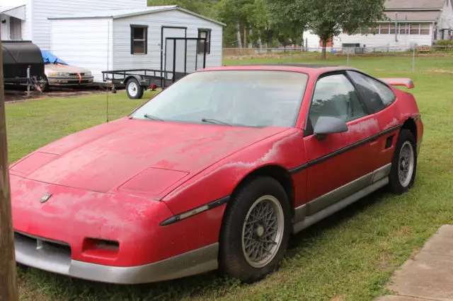 For your consideration is a low mileage 1986 Pontiac Fiero GT. This car was part of a package deal that I got with a couple of vehicles and I just don't have the time or inner drive to bring this one back to life. The car has been sitting for several years in a backyard lot and the paint is suffering from the effects of exposure. The trees must have provided some degree of shade because other than the headliner, the interior is really nice. The dash corners are solid, seats are not torn, and the GT steering wheel is in really great shape- it is very solid feeling and not oozing the brown slime that many of these cars seem to leak out of the steering wheel. Since buying the Fiero, all I have done is wash the years of dirt off. The mechanical operating condition of the car is unknown- it might start right up with a hot battery and fresh gas, or it might need a bit of work to get it running. The car has the 2.8 v6, automatic transmission, tilt, cruise, power windows, power door locks, A/C, sunroof, rally gauges, and performance sound. The trunk corners appear to be solid and rust free. Since the car is not in operable condition, it will have to be trailered by the buyer to its new home. I will be available to help load the car onto your preferred method of transportation. The car could be made nice again with the right owner and a little TLC. It is being sold in non-running 'as-is' condition with no warranty expressed or implied. Thanks for looking and happy bidding!