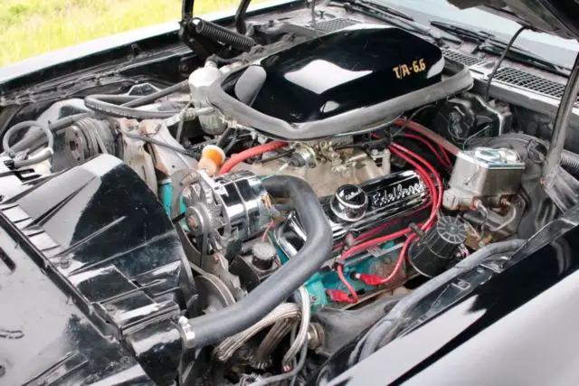 - The engine is a 400 Pontiac but is not numbers matching to the car. The suffix code on the front of the block is XC. It has 6X heads, an aluminum Edelbrock Performer 4 barrel intake manifold, a 650cfm electric choke Edelbrock carburetor, a new Summit Racing mini starter,ceramic coated long tube headers running through dual exhaust to a pair of Flowmaster mufflers and tail pipes out the back of the car. It runs great, starts right up and has good power.