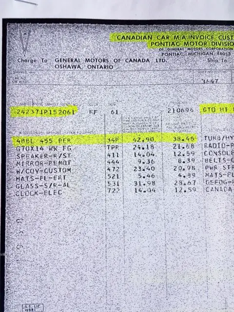 UP FOR SALE IS A SUPER CLEAN 1971 455 GTO. PHS DOCUMENTED WITH A TH 400 AUTO TRANSMISSION.CAR SPENT ALL IT'S LIFE IN ST CATHERINES ONTARIO CANADA & WAS NEVER WINTER DRIVEN. 3 OWNERS LAST BEING 20 YEARS ALSO ONLY HAS 43K MILES BELIEVED TO BE TRUE. INTERIOR IS VERY NICE & PAINT WAS DONE 20 YEARS AGO & IS A 7 TO 8 OUT OF 10. CAR IS BEING SOLD AS IS WHERE IS WITH NO EXPRESSED WARRANTY & BUYER IS RESPONSIBLE FOR ALL SHIPPING & CUSTOMS COST BUT SELLER WILL HELP WITH PAPER WORK & GETTING TRANSPORT COMPANY COST FOR BUYER. SHIPPING WILL BE APROX 1200 TO 1800 ACROSS MOST OF THE USA. PLENTY OF PICTURES ON DEMAND.NO BODY FILLER TO BE SEEN ALL PANELS & INTERIOR ARE BEAUTIFUL. UNDER CARRIAGE & UNDER THE HOOD ALL NICE & CLEAN. ENGINE ALSO RUNS STRONG.