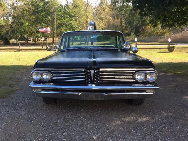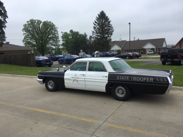 This is a 1962 Pontiac State Trooper car. It has the original drive train389 with a Roto Hydramatic, actual 46,000 miles. Was a Texas car till last year. Tires, shocks, fuel tank and lines, radiator, brakes and lines were replaced. Generator rebuilt and is charging. Interior has been cleaned up with new carpet, headliner, seats recovered. Could use some door panels. Trunk is clean and presentable. Bubble on top restored, spotlight works. Car is in driving condition. Paint has patina with a few dings and some scratches, but no rust. Underside is clean with no patches. This car sat for a long time. Purchased car with no history. Was sold from a estate sale. I am calling it a clone but the engine code does come up police or taxi. Did a few shows this summer. Drove 100 miles round trip. Ready to be inspected. Willing to ship at your expense. Balance due in 7 days.